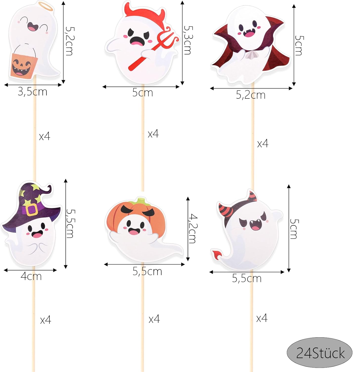 Decorazione torta di Halloween: il kit contiene 6 diversi tipi di decorazioni fantasma. Ci sono 4 pezzi per ogni stile, 24 pezzi in totale. Design raffinato: questo topper per torta di Halloween è splendidamente progettato ed è molto piccolo e carino. Non solo si adattano al tema di Halloween, ma contengono anche elementi divertenti e giocosi. Topper per cupcake di Halloween: il nostro topper per cupcake di Halloween è realizzato in carta di alta qualità, finemente stampata, spessa e resistente. Queste decorazioni sono perfette per le feste di Halloween. Puoi anche usarli per decorazioni per feste horror e altre feste a tema simili. Torta decorativa di Halloween: questa decorazione per torta di Halloween è splendidamente progettata e nella confezione includiamo nastro biadesivo e spiedini di bambù. Puoi decidere come utilizzare questo prodotto, il che è molto conveniente. Promemoria caldo: questo prodotto ha un design su un solo lato con retro bianco. Questo prodotto non è commestibile e infiammabile. Tenere lontano da fonti di fuoco.