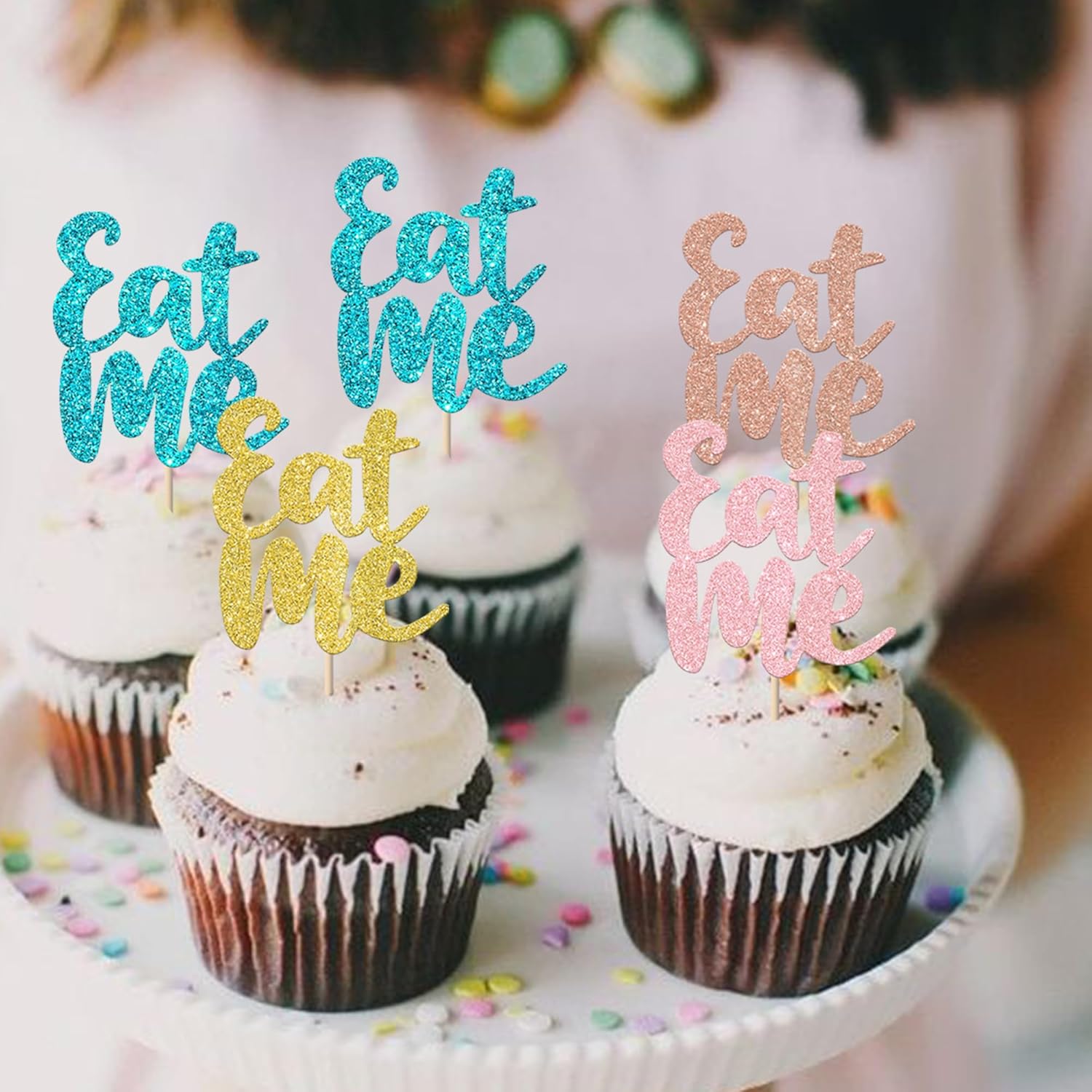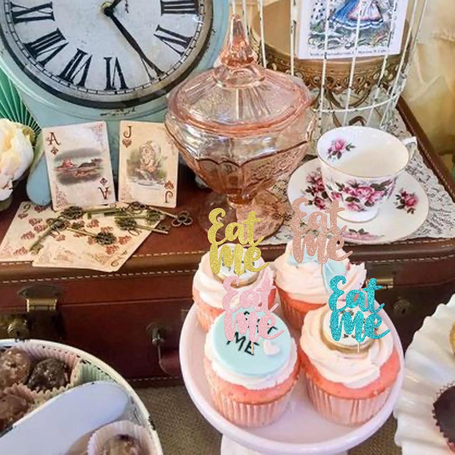 Confezione e dimensioni: include 24 confezioni di toppers per cupcake del Paese delle Meraviglie. Questi nuovi e graziosi plettri per cupcake aggiungono più divertimento. La dimensione è (compreso il bastone). Ampie applicazioni: questi toppers per cupcake sono così carini e perfetti per feste a tema del paese delle meraviglie, feste a tema Alice, feste a tema tea party, feste a tema Eat Me, decorazioni per cupcake per feste di compleanno per bambini. Sono una buona decorazione e rendono il tuo cupcake più attraente e interessante. Puoi usarli anche per gelati, frutta, biscotti e altri dolci. Materiale premium: questi toppers per cupcake sono realizzati in cartoncino glitterato di alta qualità da 300 grammi. Sono molto sicuri per cupcake, biscotti, torte, frutta, biscotti, gelati e altri dessert. NON fai da te: questi toppers per cupcake sono preassemblati, quindi puoi inserirli nel tuo cupcake immediatamente dopo averli ricevuti, il che può farti risparmiare tempo. Memoria! Questi toppers per cupcake sono scintillanti su un lato e il retro è bianco semplice. Solo a scopo decorativo, non commestibile e NON utilizzare nel forno o nel microonde.
