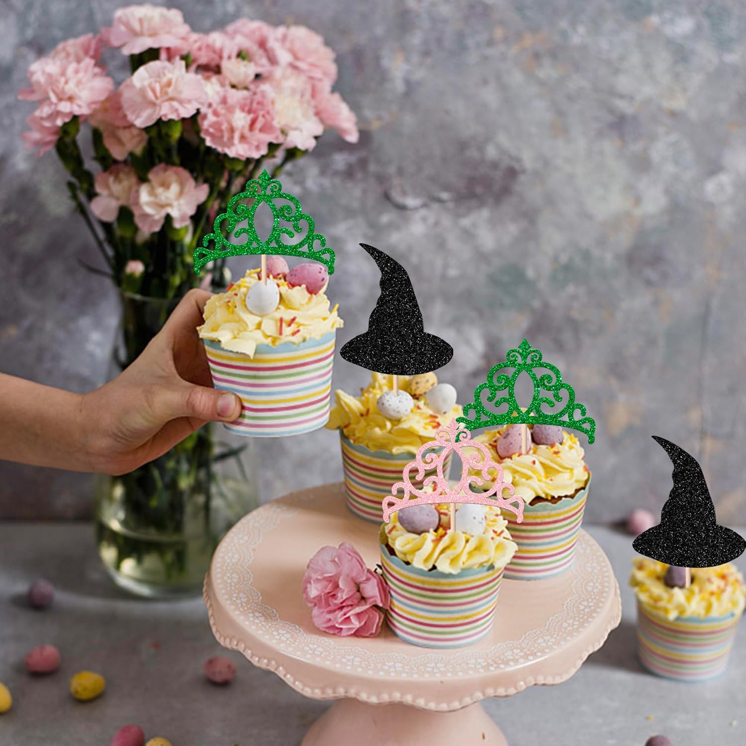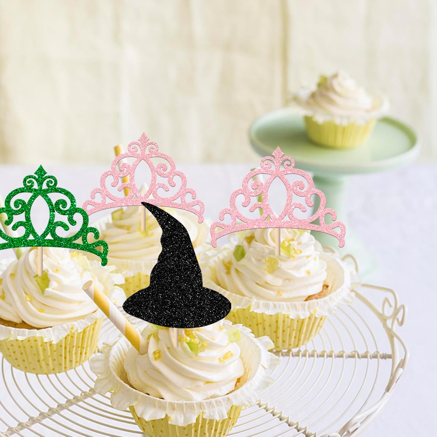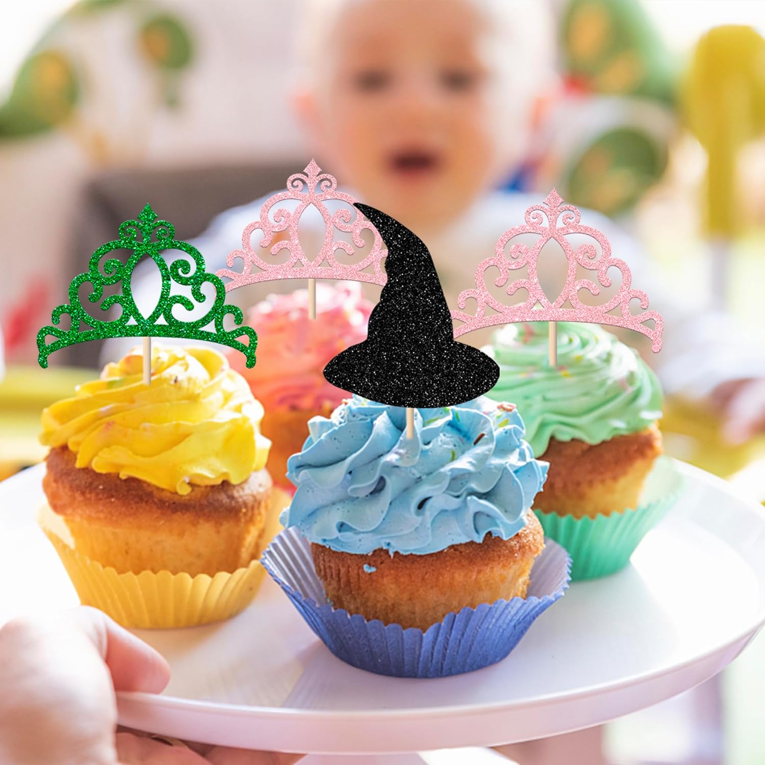 Confezione e dimensioni: include una confezione da 24 toppers per cupcake con strega malvagia. Questi nuovi e graziosi plettri per cupcake aggiungono più divertimento. Ampie applicazioni: questi toppers per cupcake sono così carini e perfetti per feste a tema streghe malvagie, feste a tema streghe magiche, feste a tema anniversario, decorazioni per cupcake per feste di compleanno. Sono una buona decorazione e rendono il tuo cupcake più attraente e interessante. Puoi usarli anche per gelati, frutta, biscotti e altri dolci. Materiale premium: questi toppers per cupcake sono realizzati in cartoncino glitterato di alta qualità da 300 grammi. Sono molto sicuri per cupcake, biscotti, torte, frutta, biscotti, gelati e altri dessert. NON fai da te: questi toppers per cupcake sono preassemblati, quindi puoi inserirli nel tuo cupcake immediatamente dopo averli ricevuti, il che può farti risparmiare tempo. Memoria! Questi toppers per cupcake sono scintillanti su un lato e il retro è bianco semplice. Solo a scopo decorativo, non commestibile e NON utilizzare nel forno o nel microonde.