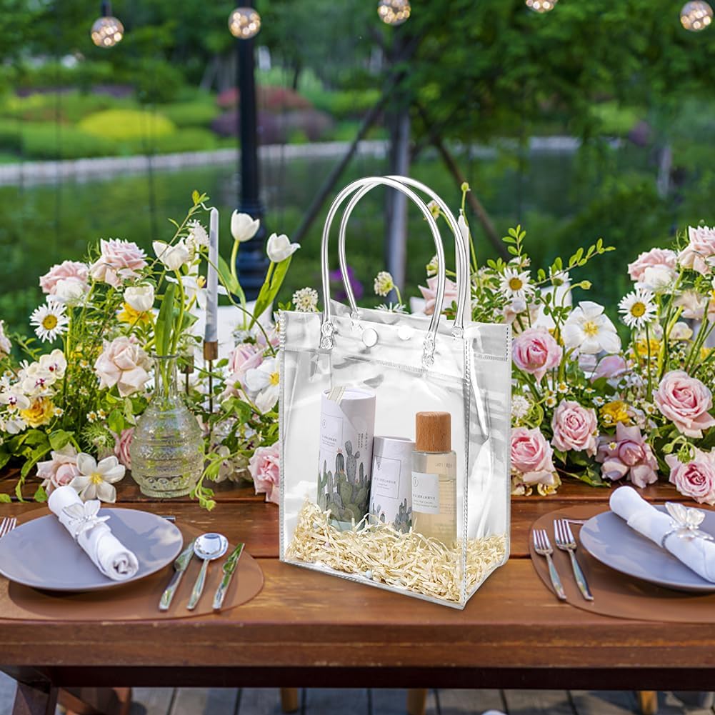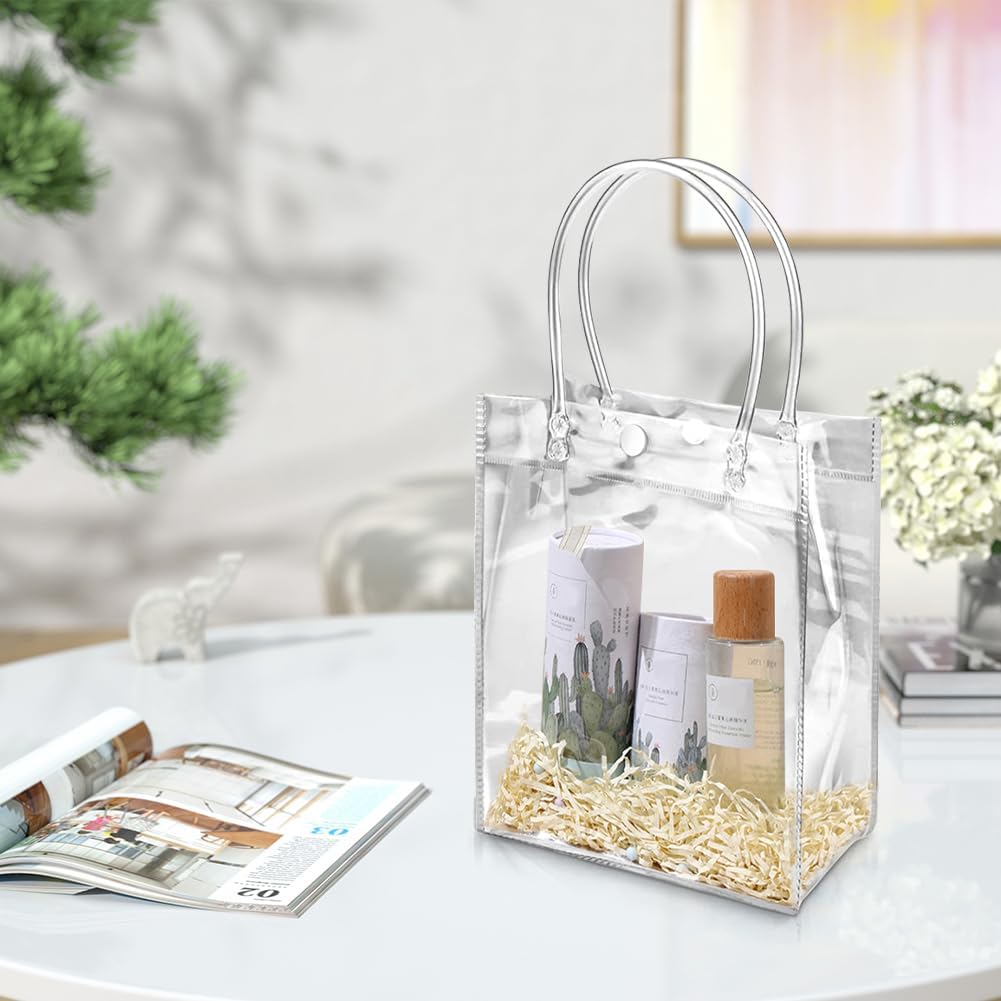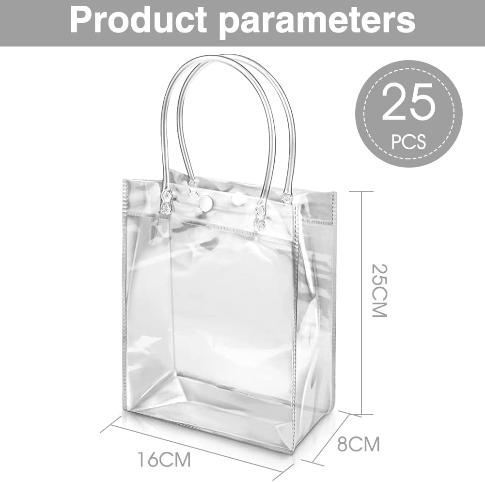 🎁【Eccellente qualità dei materiali】Realizzati in PVC impermeabile di alta qualità, i nostri sacchetti regalo sono caratterizzati da eccezionale robustezza e capacità di carico. I bordi rinforzati forniscono ulteriore stabilità e li rendono resistenti alla deformazione e alle crepe. Questi sacchetti regalo sono riutilizzabili e durevoli. 🎁【Design Trasparente】I nostri sacchetti regalo presentano un design completamente trasparente, che consente di presentare oggetti personali delicati o regali in tutta chiarezza. Ogni borsa è dotata di una robusta maniglia e di una sicura chiusura a scatto per garantire un facile trasporto. 🎁【Facile da usare】La parte superiore del sacchetto regalo è dotata di bottoni che impediscono la fuoriuscita di oggetti indesiderati. Il fondo piegato 3D consente alle borse di stare stabilmente in posizione verticale ed espandere il loro volume per fornire più spazio. e sono facili da trasportare perché hanno le maniglie. 🎁【Dimensione Ottimale】I nostri sacchetti regalo hanno le dimensioni perfette di 25 cm x 16 cm x 8 cm, ideali per bomboniere e regali per varie occasioni. Il set contiene un totale di 25 sacchetti regalo trasparenti, sufficienti per coprire le tue necessità quotidiane e la confezione regalo. 🎁【Applicabilità versatile】Questi sacchetti regalo sono ideali per feste di compleanno, matrimoni, baby shower, feste di Natale, spesa e molto altro. Possono essere utilizzati in molti modi come sacchetti regalo, sacchetti per la spesa, sacchetti regalo o sacchetti per bricolage.