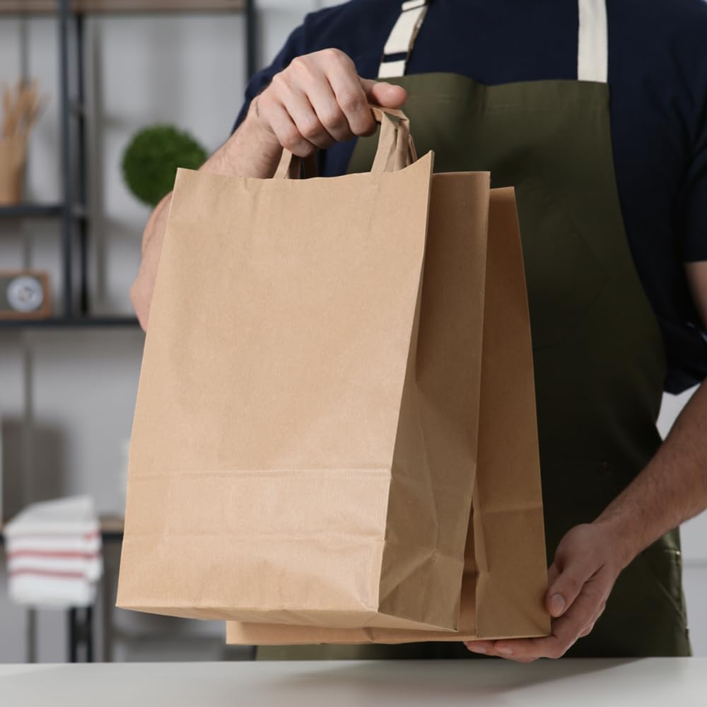 REALIZZATA IN CARTA KRAFT RISPETTOSA DELL'AMBIENTE: la borsa della spesa è realizzata in carta kraft robusta ed ecologica, che offre un'alternativa sostenibile alla plastica e protegge l'ambiente. CON MANICI PIATTI ALL'INTERNO: La borsa è dotata di pratici manici piatti che assicurano una presa sicura e confortevole senza affaticare inutili i palmi. CAPACITÀ DI CARICO FINO A 3 KG: questa borsa ha un'elevata capacità di carico fino a 3 kg, che la rende ideale per l'uso quotidiano e per il trasporto di contenuti da leggeri a medi. COMPLETAMENTE COMPOSTABILE: la borsa è completamente compostabile e può essere degradata naturalmente dopo l'uso, senza lasciare residui nocivi. MOLTO ROBUSTO: Nonostante il materiale ecologico, la borsa è particolarmente stabile e offre un'elevata resilienza, adatta per una varietà di applicazioni.