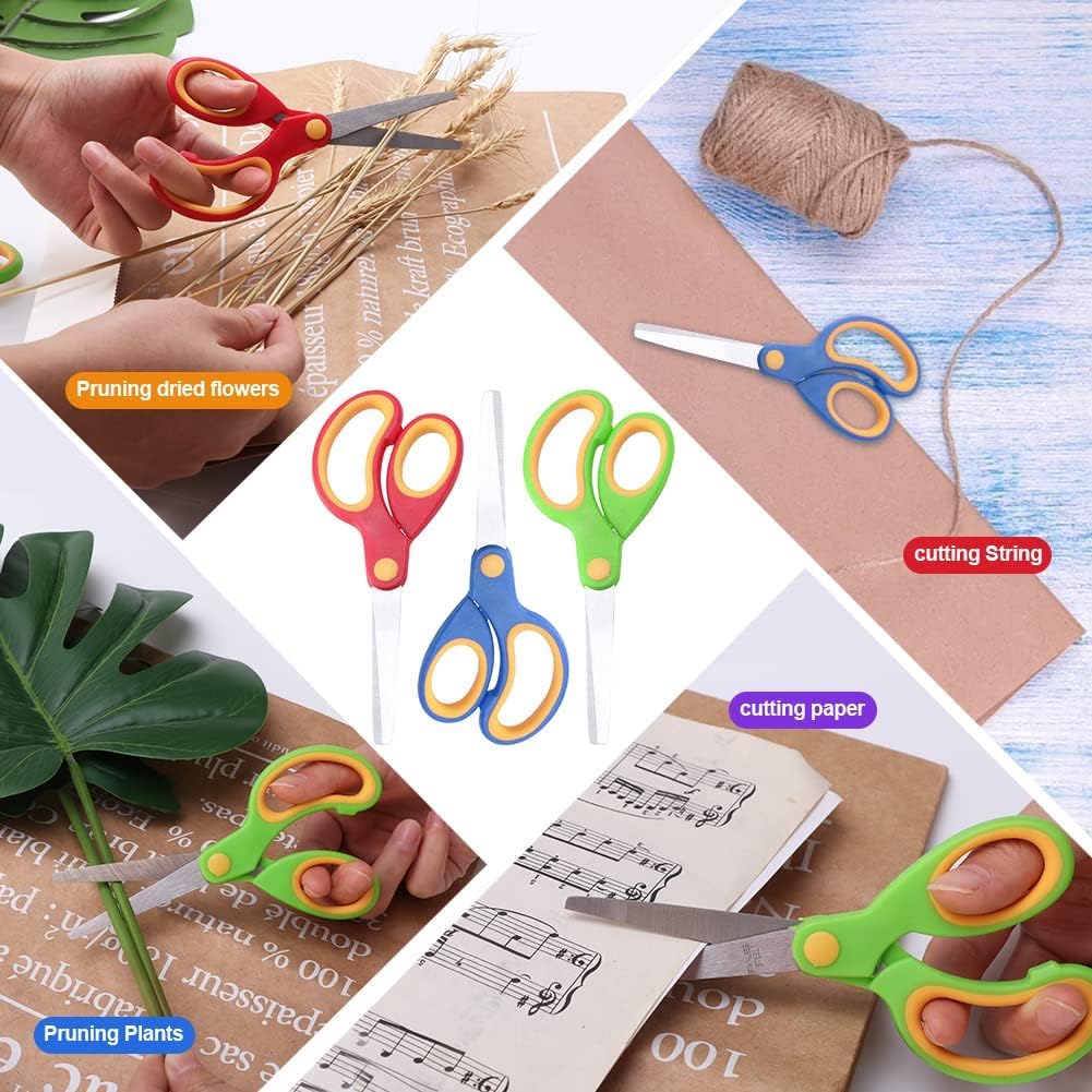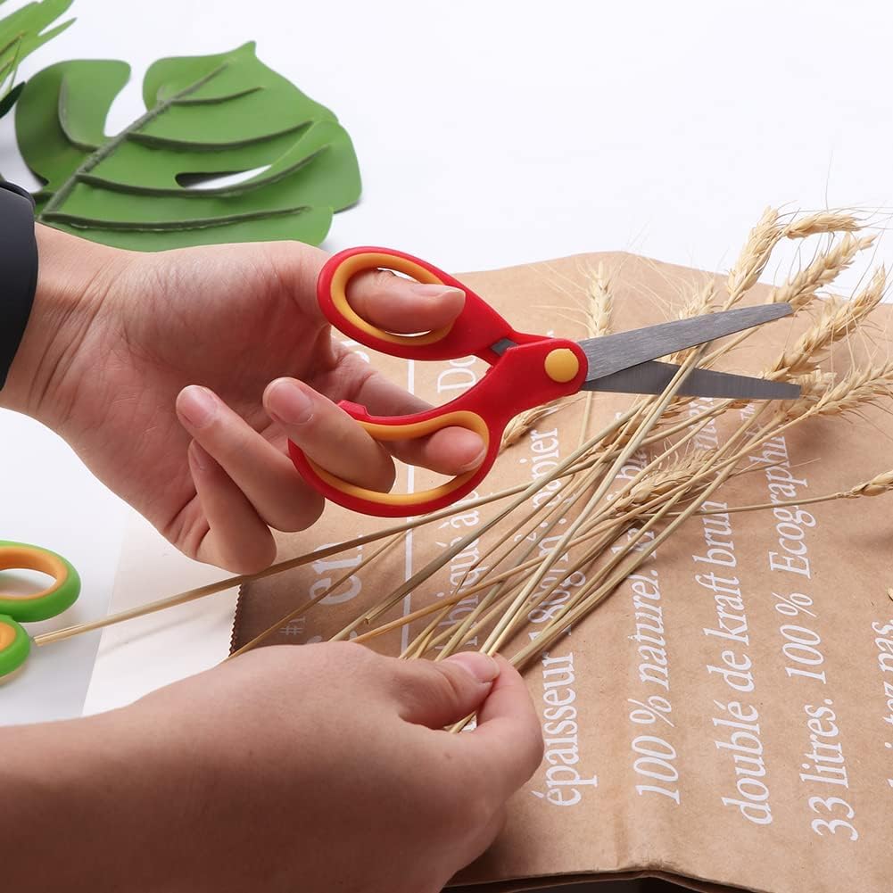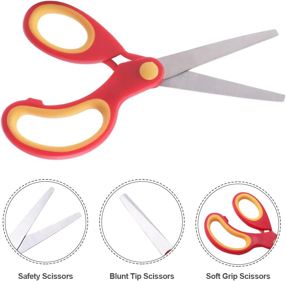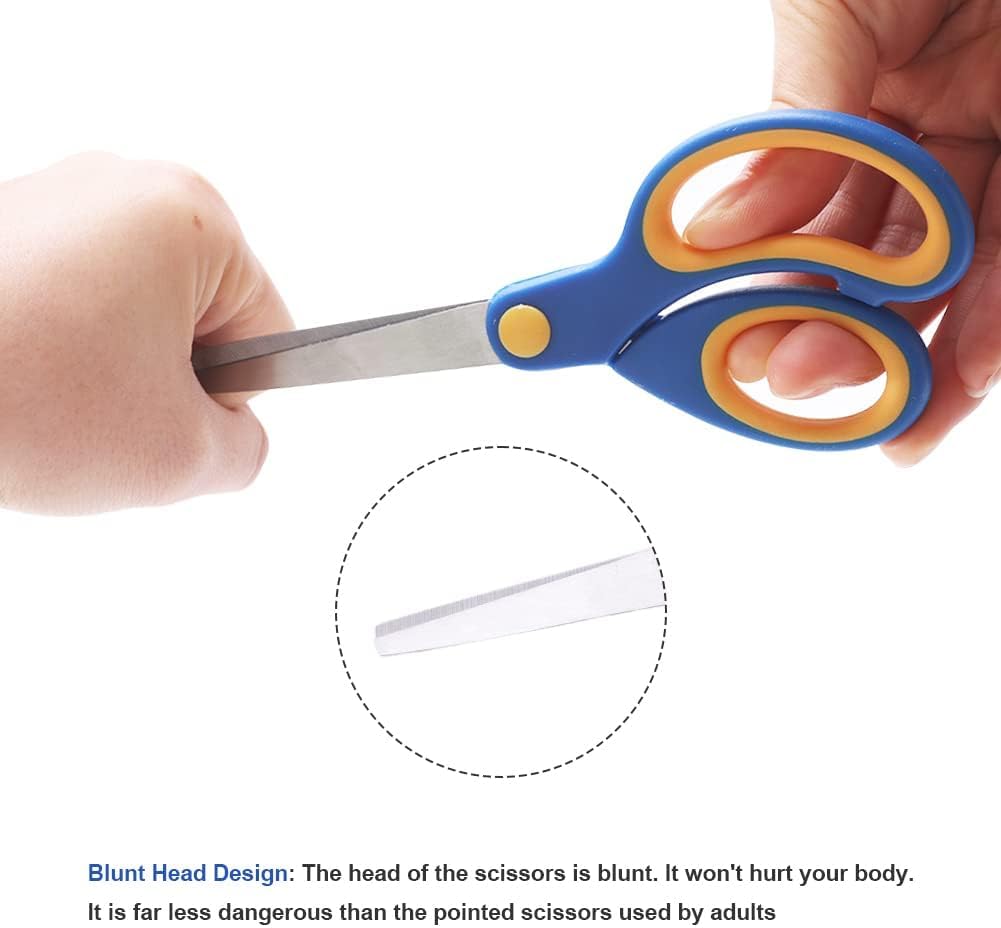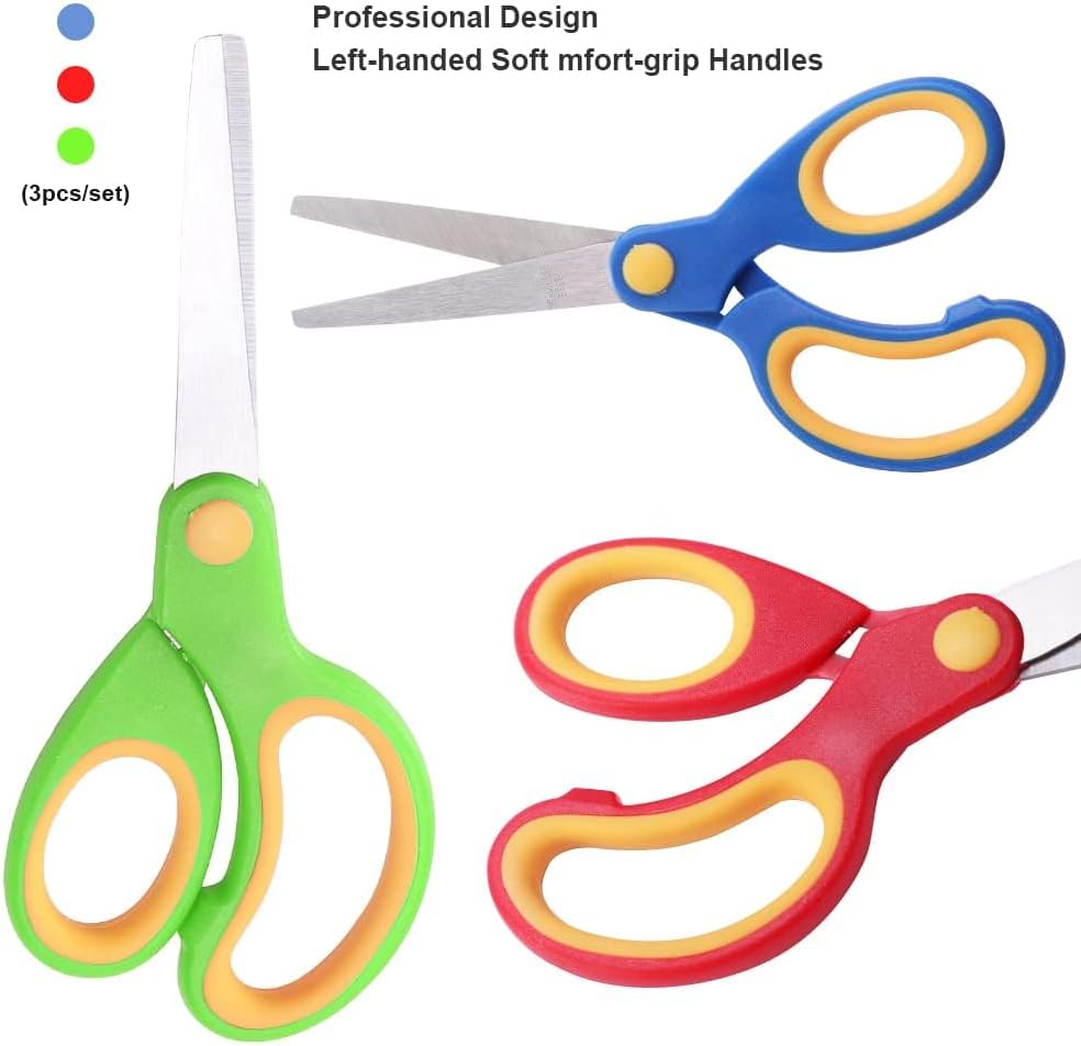 【Materiale durevole】 Le nostre forbici prescolari sono realizzate con lame in acciaio inossidabile rettificate e piatte resistenti all'usura, il materiale robusto rende le forbici durevoli, le lame lisce offrono buone prestazioni per il taglio della carta. 【Design professionale】 La punta smussata e l'angolo sicuro della lama impediscono il taglio delle dita dei bambini. Design ergonomico, rende il taglio facile ed efficace per i mancini. 【Impugnatura morbida e confortevole】 Le impugnature morbide in PP con impugnatura in plastica hanno una superficie strutturata e antiscivolo sui passanti per le dita, che fornisce un uso più confortevole e riduce l'affaticamento delle dita. Molteplici usi: funziona alla grande per un bambino dell'asilo nei progetti scolastici e divertente per l'artigianato a casa. Perfetto per tagliare carta comune, cartoncino, schiuma e cartone. Sono ottimi anche per rifinire il tuo animale domestico che si innervosisce con le forbici appuntite o lunghe. 【Dimensioni e colore】 Forbici per bambini da 5,6 x 2,36 pollici, tre diversi colori vivaci da abbinare, come rosso, blu, verde, adatte a bambini dai 4 anni in su.