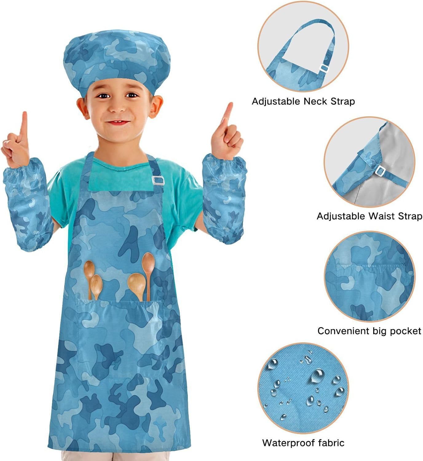 Confezione da 3 grembiuli da chef per bambini, comodi, blu scuro, mimetici, con tasche, per bambini dai 3 ai 12 anni