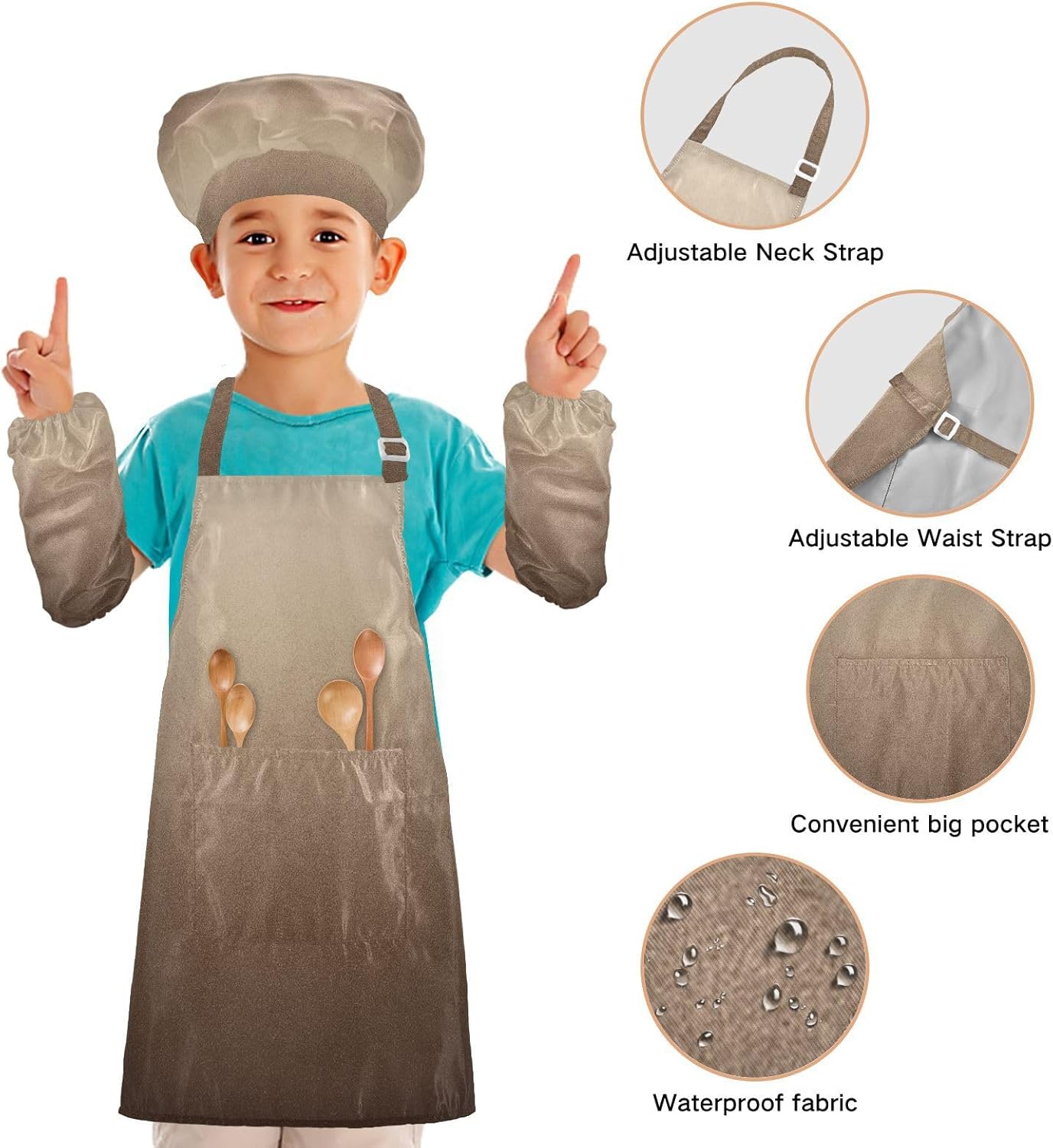 Dimensioni e articolo include: S: 18,9 x 20,5 L per bambini dai 3 ai 6 anni. M: 19,7 W x 23,5 L per età 7-12 anni. Il grembiule Kid Paint include 1 grembiule leggero, 1 cappello da chef e 2 maniche. Il set da chef per bambini può dare ai bambini una buona esperienza di utilizzo per cucinare o dipingere come fornelli o pittori professionisti. Materiale ecologico: il tessuto è impermeabile, leggero, accogliente, stampa adorabile alla moda, ecologico per la pelle dei bambini. Cinghia regolabile: il set di grembiuli per bambini con collo regolabile e cinturino in vita può fornire ai bambini una buona esperienza di utilizzo. Non devi preoccuparti se il grembiule per bambini si adatta a loro o meno. Scenario applicabile: ideale per asilo, asilo, cucina, sala pittura, giardino, Halloween, Natale, abbigliamento del Ringraziamento, artigianato e attività di pittura artistica, festa di compleanno per incoraggiare i bambini a sviluppare la loro cucina, pittura, cottura, giardinaggio o altre abilità. Facile da pulire: il nostro prodotto è impermeabile e a prova di fuoriuscite. Basta strofinare, lavare in lavatrice e lavare a mano.