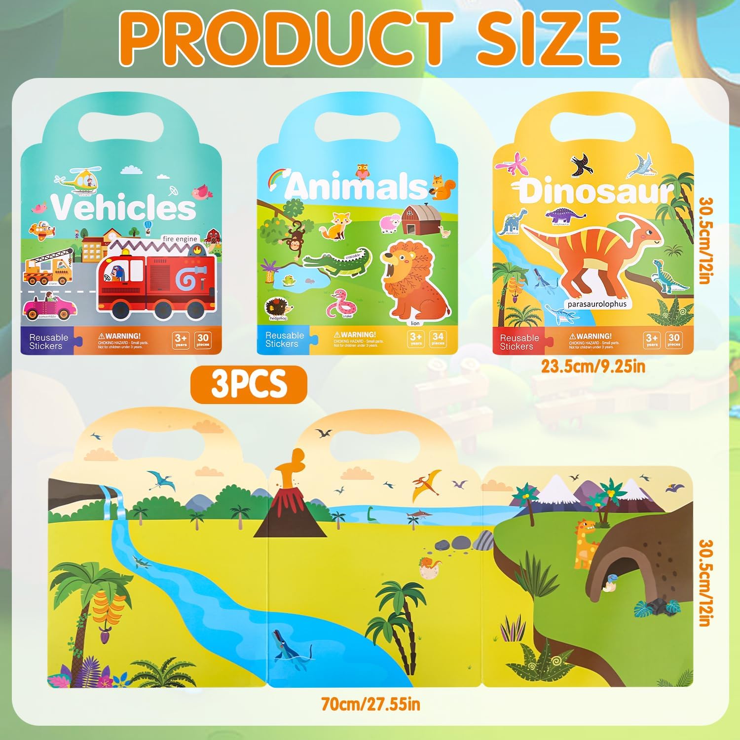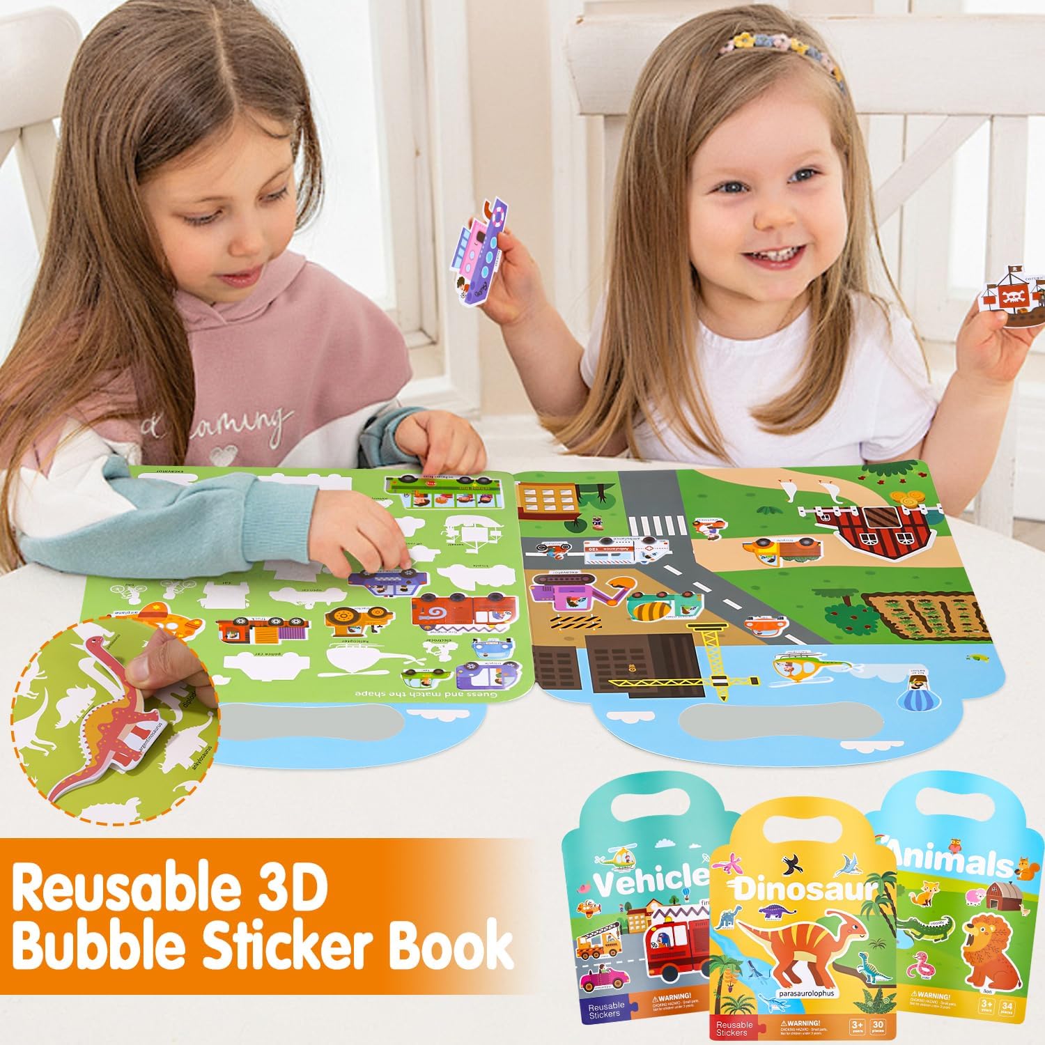 【Libro di adesivi per bambini,】 Libro di adesivi 3D riutilizzabile, adesivo per bambini, ideale per incoraggiare l'immaginazione dei bambini, imparare le parole ed esercitarsi nei movimenti fini delle dita mentre creano giochi di adesivi e creano scene e storie. gli adesivi per bambini sono realizzati con materiali TPE di alta qualità, sono giocattoli di libri di adesivi atossici, impermeabili e riutilizzabili, senza lasciare residui. 【Lista di imballaggio】Riceverai 3 confezioni di libri di adesivi con veicoli, dinosauri e animali. I nostri libri di adesivi sono dotati di maniglie e sono quindi perfetti per l'asilo, i viaggi e le uscite. 【Gioco senza schermo】 I giochi di adesivi sono molto divertenti. Chiedi ai bambini di ridurre il tempo trascorso davanti al computer per proteggere gli occhi e il collo.
