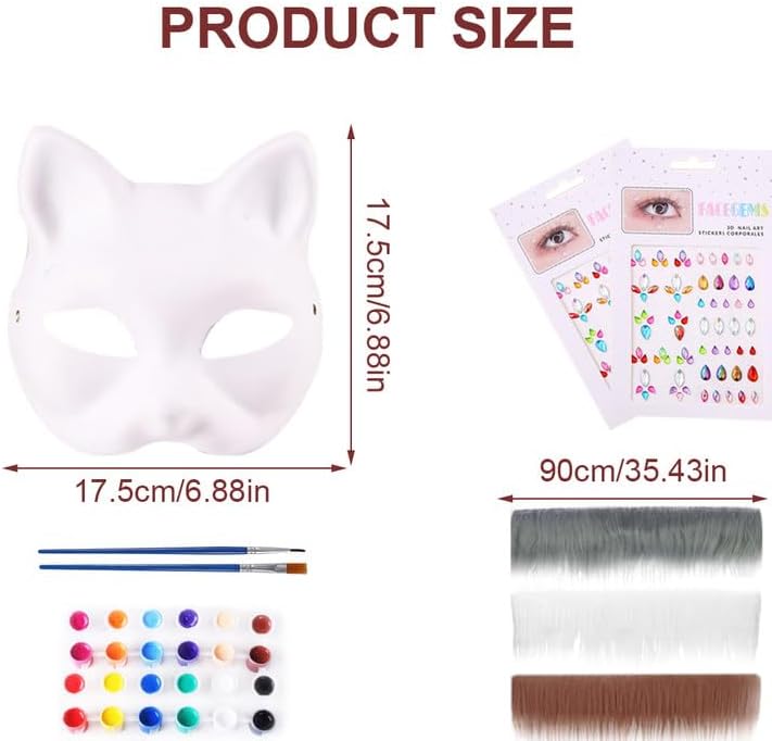 Descrizione del prodotto Caratteristiche: 1. La maschera per gatti è realizzata principalmente in cartone di cellulosa di alta qualità, leggero e resistente, non facilmente deformabile e può essere riutilizzato. 2. La superficie in pasta di carta della maschera per gatti è facile da colorare, facile da applicare, ma non facile da sbiadire, permettendoti di creare la tua maschera unica. 3. La maschera per gatti è un regalo perfetto per bambini, amici o colleghi, può essere utilizzata per feste, feste in costume, cosplay o come supporto fotografico e decorazione domestica. Descrizione: Materiale: carta Colore: bianco Dimensioni: 17 x 18 cm. Peso: 25 g. Contenuto: 3 maschere per gatti fai da te 3 colori di capelli. 2 spazzole. Vernice acrilica a 12 colori. Avviso di sicurezza Nessun avviso di sicurezza