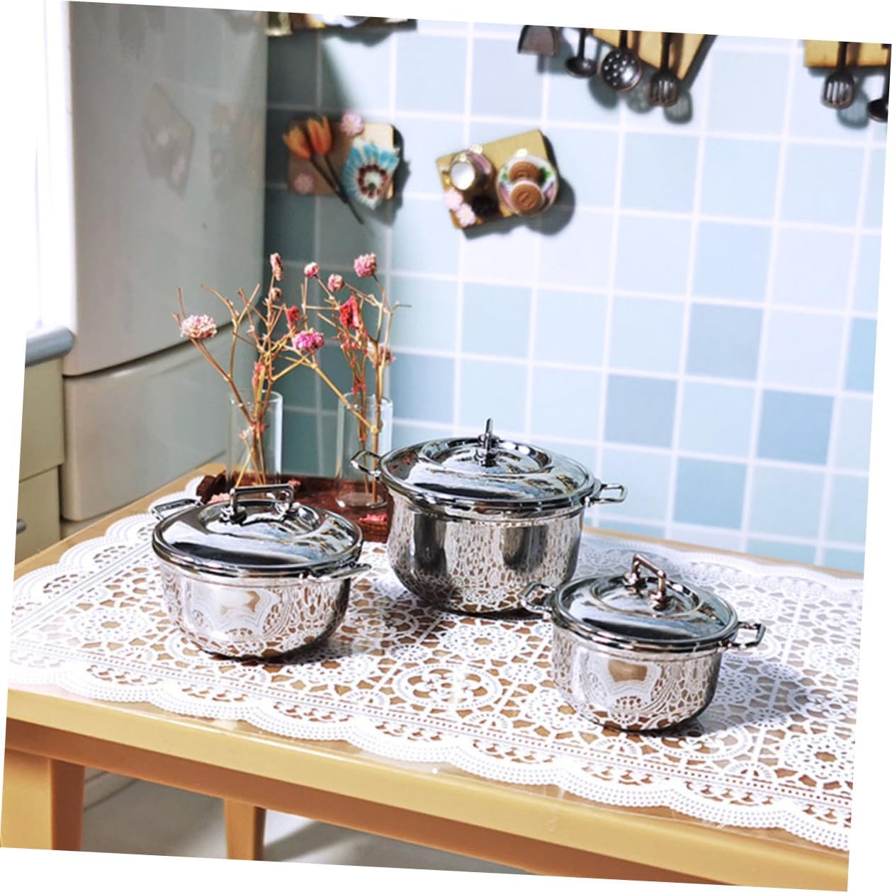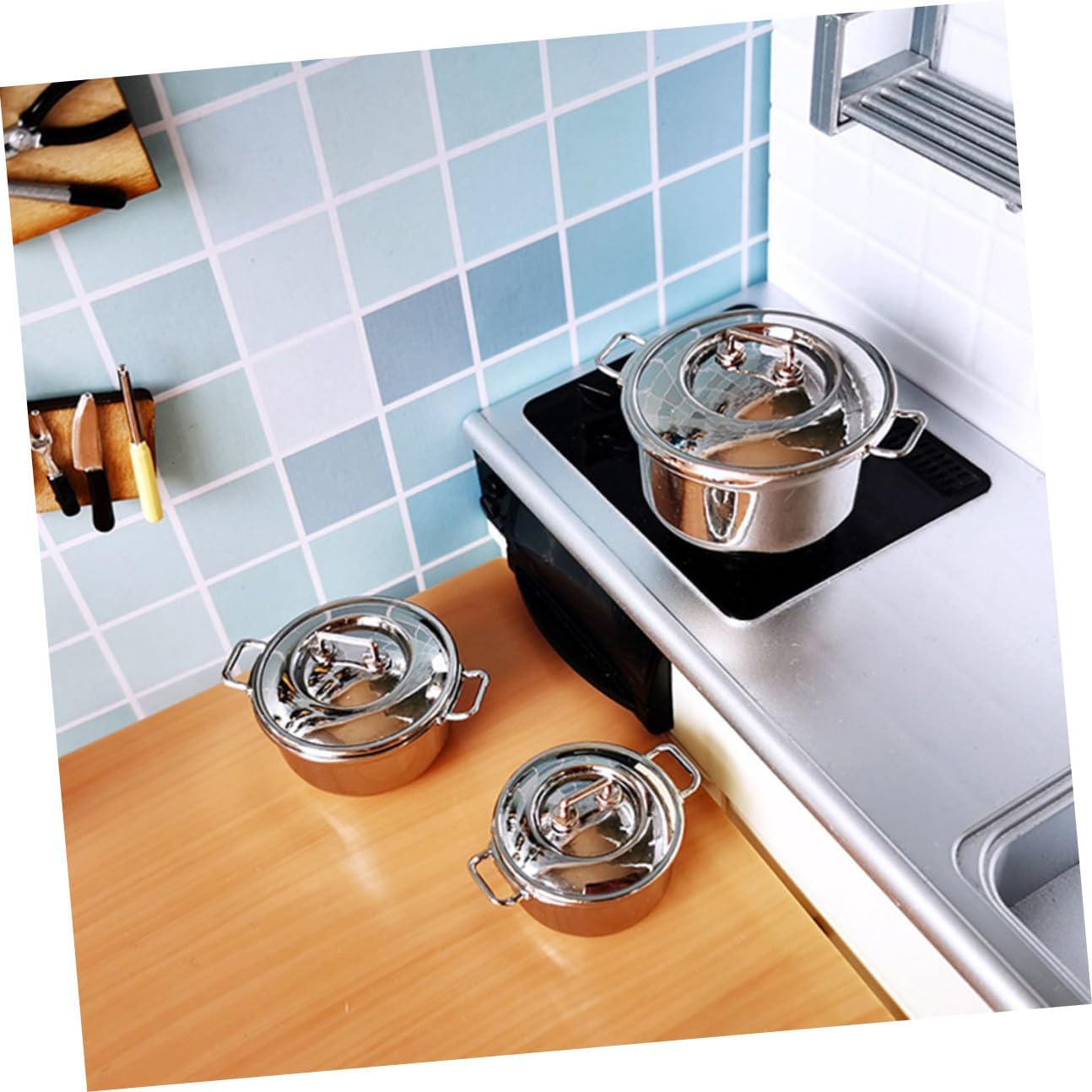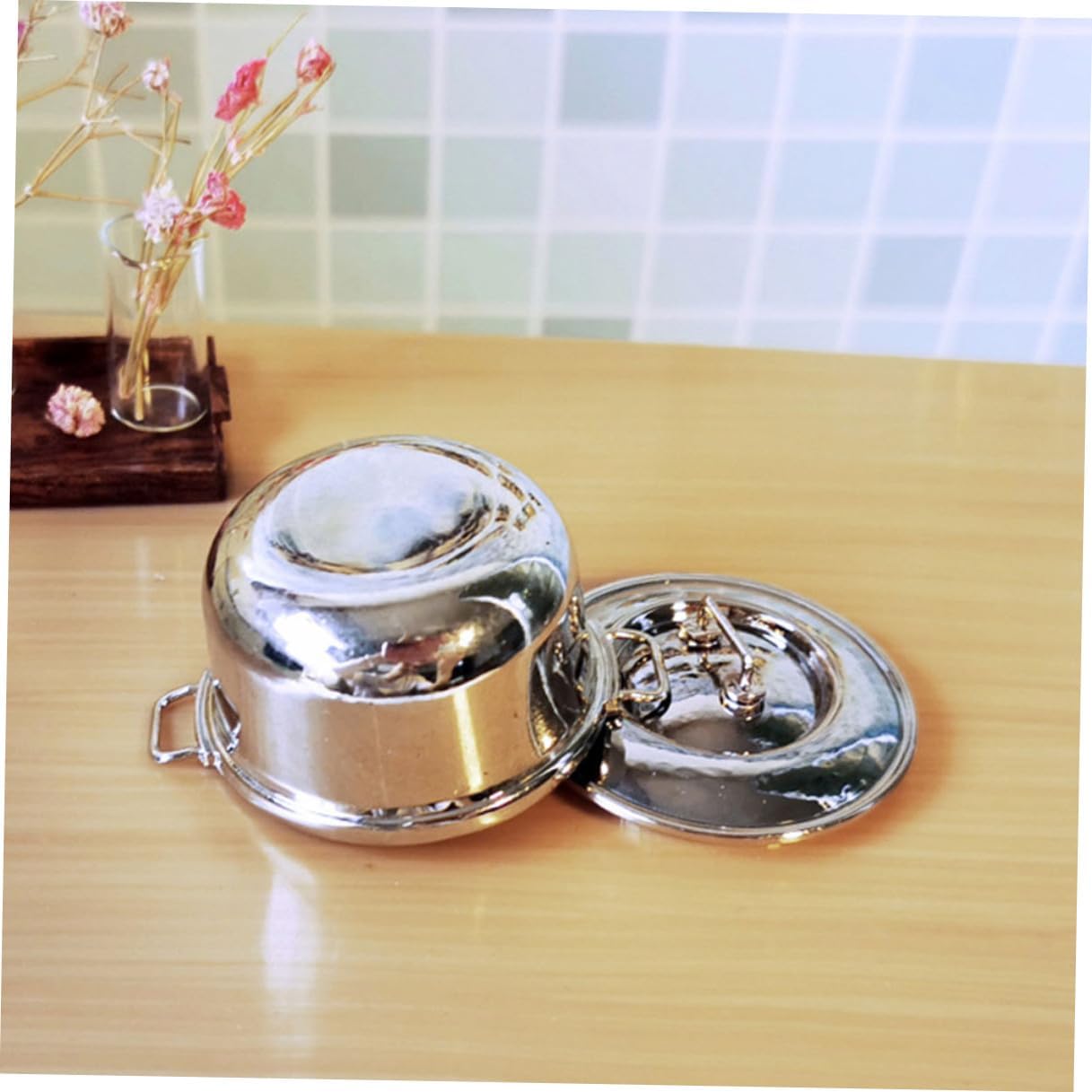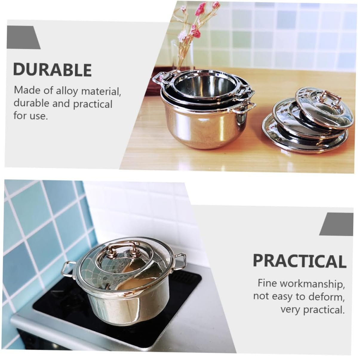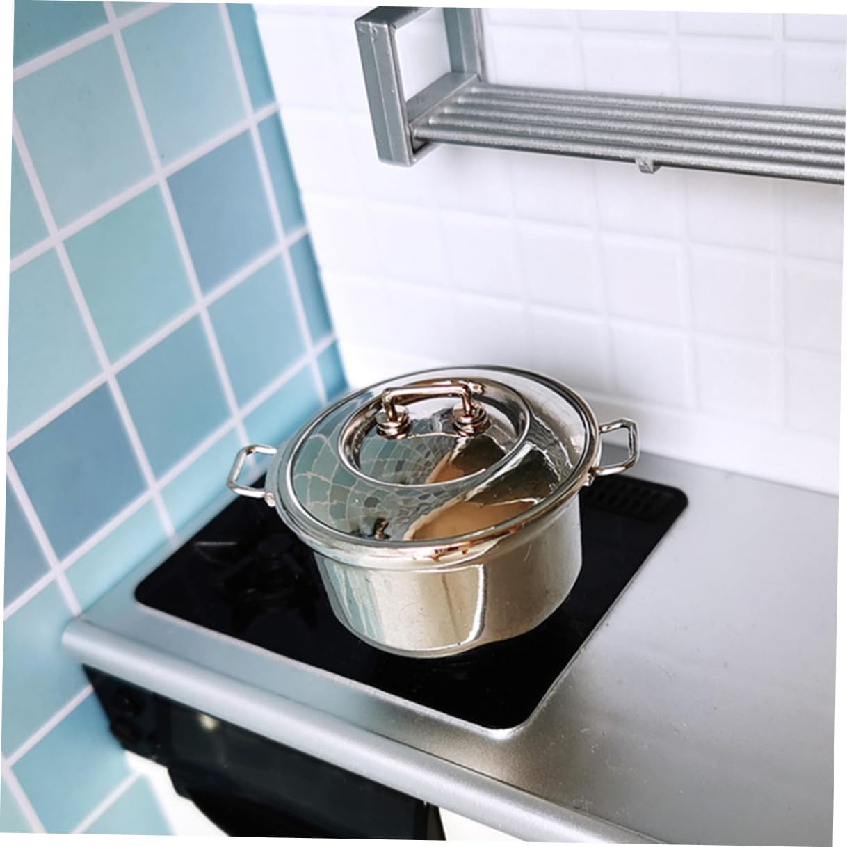 Pentola per zuppa: e produzione realistica, alta riduzione realistica, lasciala posare con amore, utensili da cucina per giochi di ruolo per: un fantastico mini accessorio decorativo per collezionisti di mini oggetti, per la cucina giocattolo Stoviglie da gioco: pregevole fattura, piccola superficie, dimensioni ridotte, facile da pulire, pentola per bambini Pentola piccola per zuppa: possono essere usate come oggetti fotografici per scattare bellissime foto, che sono molto decorative e belle, fingi di avere una pentola o una padella Pentola per alimenti: realizzata in materiale in lega e pratica da usare, gioca a giocattoli da cucina