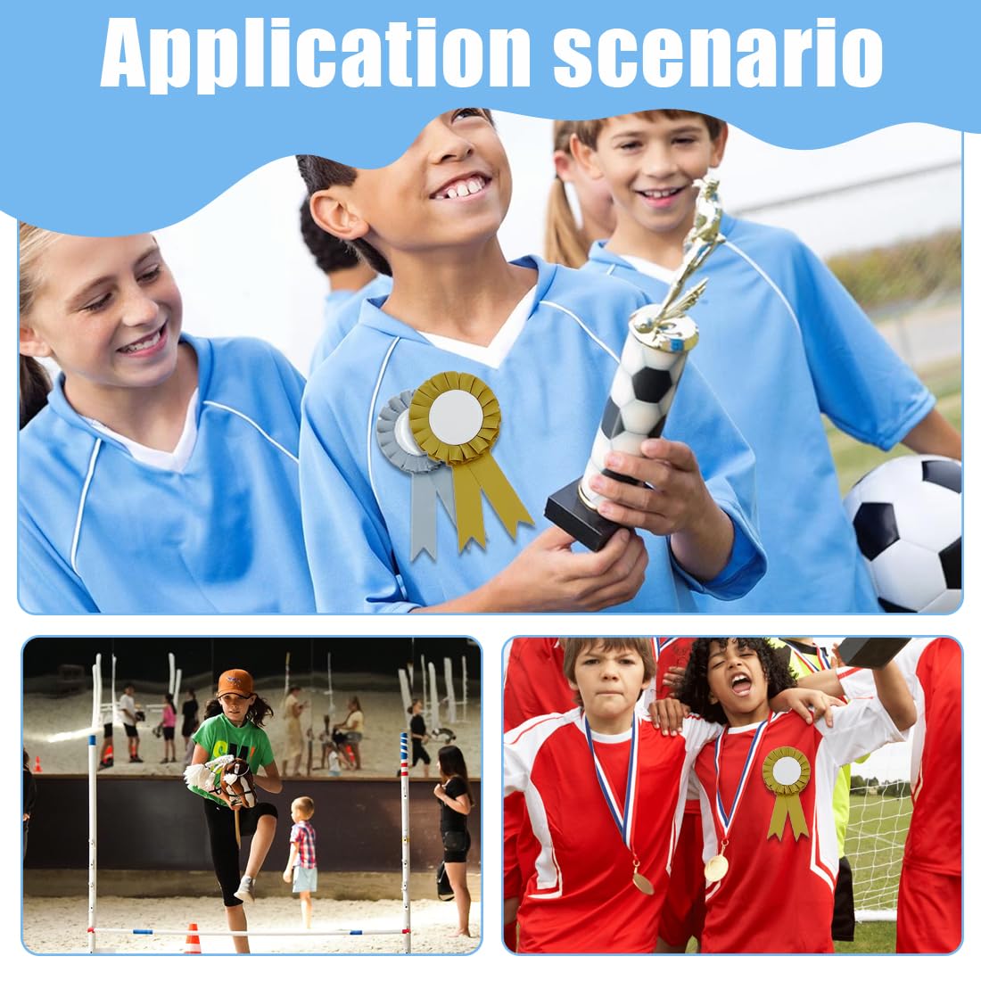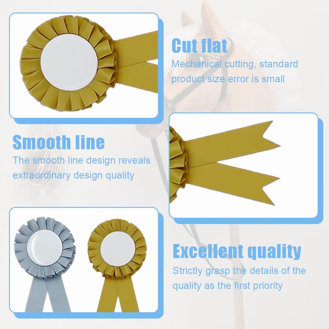Speciale per cavalli da hobby: queste coccarde sono perfette per cavalli da hobby e cavalli giocattolo che i bambini amano utilizzare per arricchire il loro mondo fantasioso. Contenuto della confezione colorata: la confezione contiene 3 fiocchi colorati in oro, argento, rosa, che rendono speciale ogni premio. Design personalizzato: le coccarde possono essere ulteriormente decorate con colori, perline o adesivi per dare ad ogni vincitore un tocco personale. Simbolo di successo: premia i tuoi vincitori con questi simboli di successo. Oro al 1° classificato, argento al 2° classificato e bronzo al 3° classificato. MULTIUSO - Queste coccarde sono ideali per premiare api di spelling, talent show, eventi sportivi, spettacoli di animali, gare di cucina, gite e festival.
