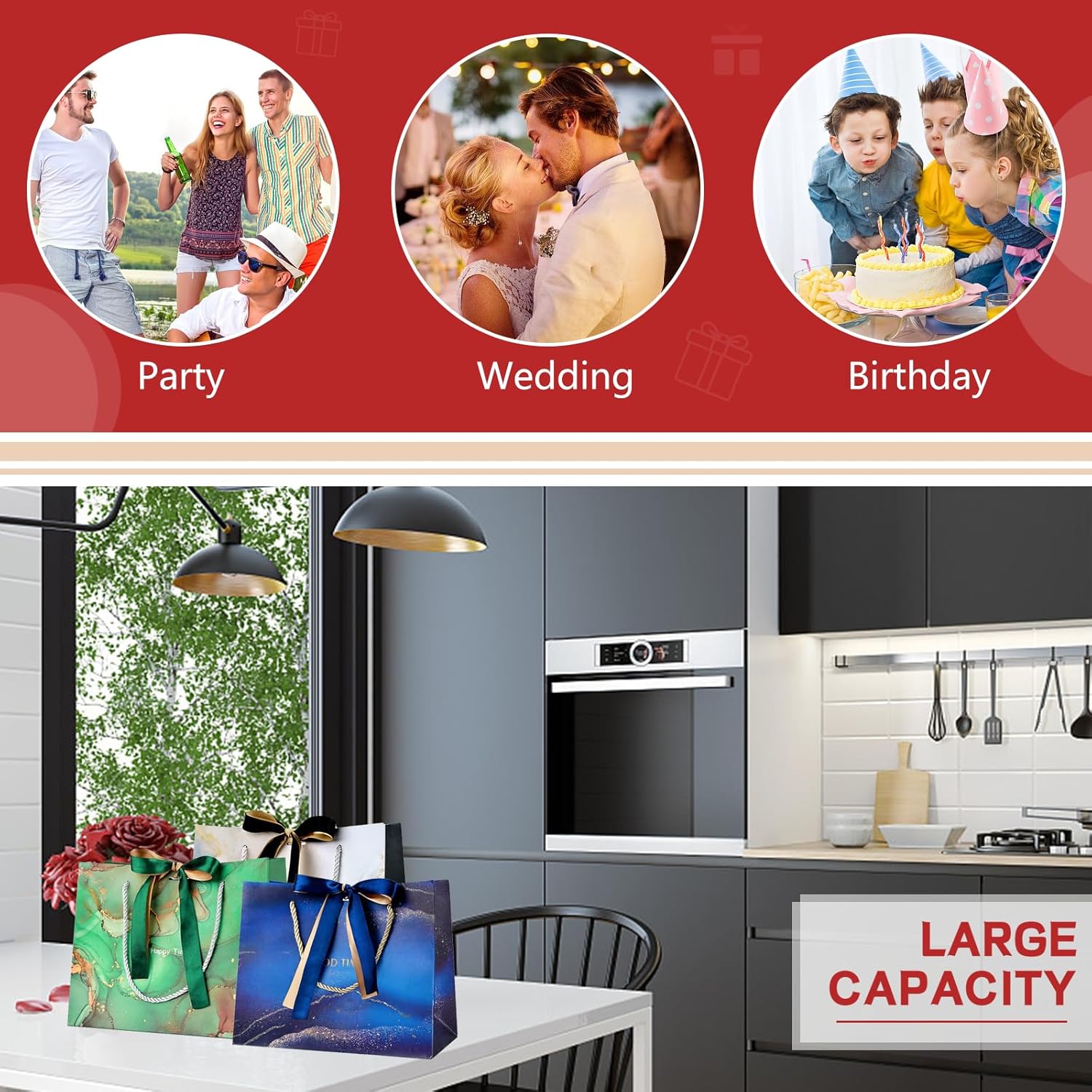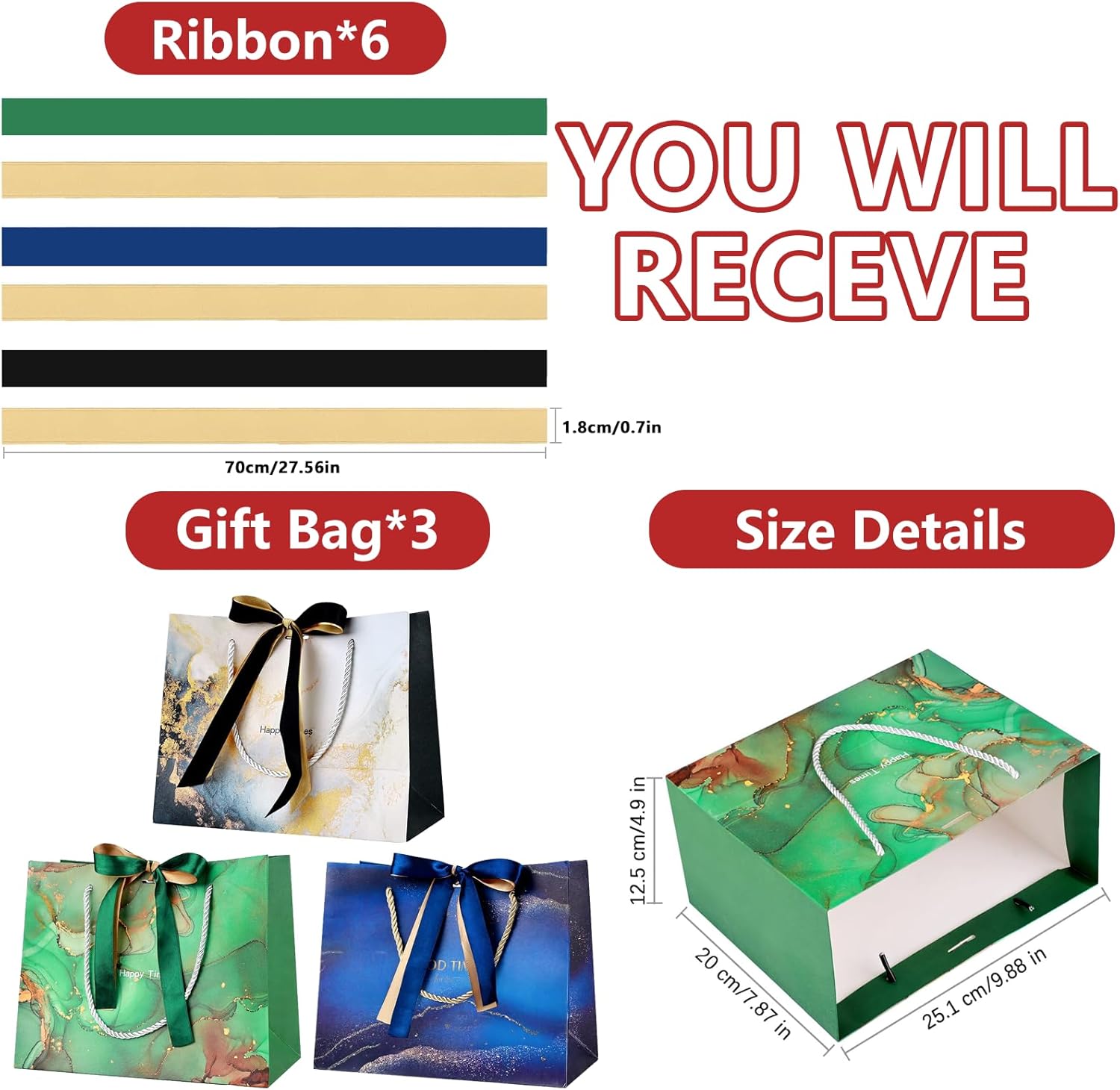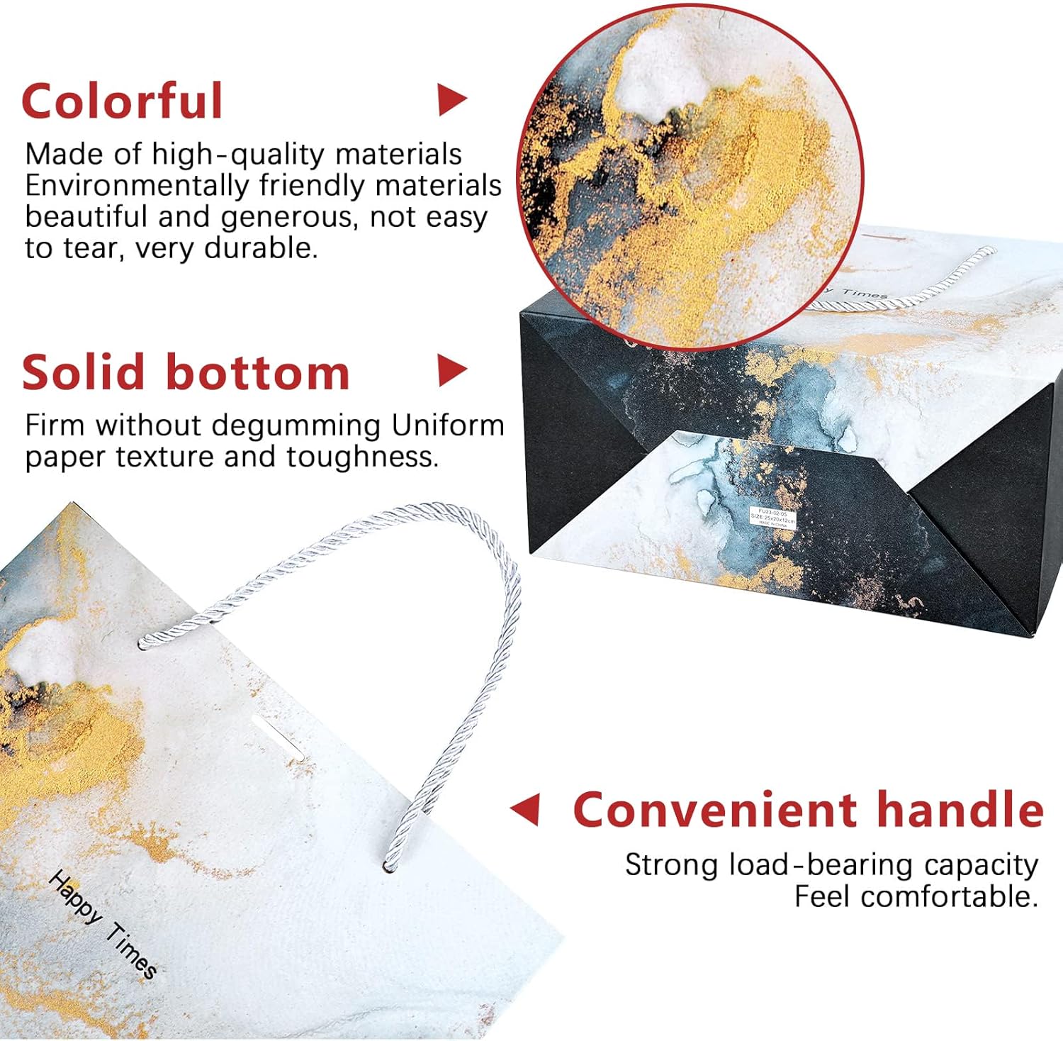 🎁 【Materiale di alta qualità】 I nostri sacchetti regalo con motivo marmorizzato sono realizzati in cartone di alta qualità, spesso, resistente e non facile da deformare o strappare. E sono lisci e resistenti all'acqua e alla polvere. Sono abbastanza spessi da reggere bene e non rompersi facilmente, mentre la maniglia e la base robuste ne facilitano il trasporto. 🎁【Aspetto squisito】Riceverai 3 delicati sacchetti regalo (bianco + blu + verde). I sacchetti regalo in carta di compleanno sono progettati in stile marmo, con manici e fiocco. Ogni borsa è dotata di due cinturini, puoi progettare qualsiasi stile come preferisci da solo. E stampato con testo dorato, elegante ed elegante, adatto alla maggior parte delle occasioni e mostra i tuoi gusti. 🎁【Ecologico e riutilizzabile】La struttura super robusta presenta una base in carta spessa per resistenza e affidabilità ed è facile da riempire, conservare e trasportare. Pregevole fattura, riutilizzabile, durevole e molto rispettoso dell'ambiente. 🎁【Facile da riporre】Questa borsa regalo può essere completamente piegata quando non viene utilizzata, riducendo al minimo lo spazio di archiviazione. Offrono abbastanza spazio per riporre varie cose. Puoi piegarli nei cassetti e negli armadi o appenderli al muro e alla porta. 🎁【Ampi usi】Questi sacchetti regalo colorati sono perfetti per la tua festa, matrimonio, compleanno, Natale, Ringraziamento, ecc. Possono anche essere usati come borsa per riporre piccoli oggetti come cosmetici, orologi, occhiali, cravatte, ecc. Biscotti ecc. O una decorazione per la festa. Sono adatti per decorare i tuoi regali a familiari, amici, colleghi, generosi e rispettabili, trasmettendo felicità e calore.