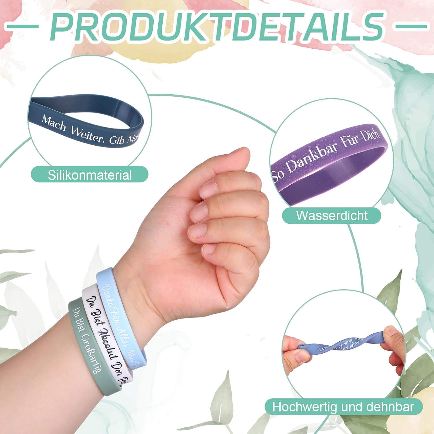 Contenuto della confezione: questo set contiene 30 braccialetti motivazionali in altre 10 citazioni ispiratrici tedesche, puoi condividerli con la tua famiglia e i tuoi amici in modo che possano sentire il potere ispiratore. Misura adatta: il braccialetto elastico e motivazionale in silicone ha una circonferenza di circa 20 cm, diametro: circa 6,5 cm e la larghezza è di circa 1,2 cm; questa dimensione del braccialetto è adatta alle dimensioni del polso della maggior parte delle persone, ti offre un'esperienza di comfort senza precedenti. Durevole e affidabile: i braccialetti in gomma ispirati sono realizzati in silicone di alta qualità, morbido, sicuro e durevole, adatto per un uso a lungo termine; i braccialetti sono elastici, quindi puoi allungarli liberamente e sono facili da indossare e da togliere per garantire un utilizzo senza preoccupazioni, possono essere combinati come desideri per mostrare la tua personalità e il tuo gusto. Citazioni ispiratrici: i braccialetti in silicone sono stampati con parole positive, queste frasi sono concise e potenti che ti ricordano la tua fede e i principi guida della tua vita e ispirano positività, guarigione, speranza e amore. Che tu stia studiando, lavorando o vivendo, questo braccialetto motivazionale può essere il tuo miglior partner e incoraggiarti ad andare avanti. Usi versatili: il colorato braccialetto in silicone è ideale come regalo per studenti, colleghi, appassionati di sport o membri del team e questi braccialetti alla moda mostrano citazioni incoraggianti in colori vivaci che si abbinano bene a diversi outfit. Perfetto per eventi sportivi, feste a tema, lauree, eventi di beneficenza e altre occasioni