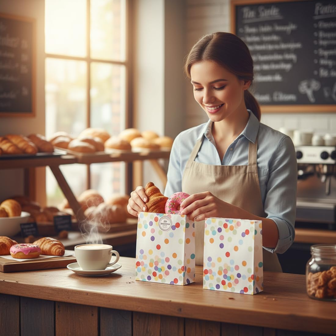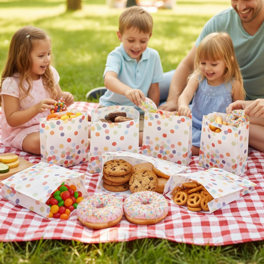 Pratico set di sacchetti regalo: contiene 30 piccoli sacchetti di carta per il compleanno dei bambini e 30 adesivi di ringraziamento. Dimensioni dei sacchetti: 19 x 13 x 3,5 cm, diametro degli adesivi: 3,8 cm. La dimensione e la quantità ideali soddisfano le tue esigenze quotidiane e sono perfette per piccoli regali o bomboniere. Design accattivante a pois: le borse per compleanno sono progettate con un motivo a pois arcobaleno. Il design classico e vivace rende le borse uniche e interessanti, ideali per varie occasioni come compleanni, feste o ricorrenze dei bambini. Robusta carta kraft: i piccoli sacchetti regalo sono realizzati in carta kraft spessa e di alta qualità, stabile e resistente agli strappi. Sono resistenti all'acqua e all'olio e possono entrare in contatto diretto con gli alimenti. Grazie alla struttura di base rinforzata, le borse stanno saldamente sul tavolo. Adesivi adesivi di alta qualità: gli adesivi di ringraziamento offrono una forte adesione e chiudono i sacchetti in modo affidabile. Danno ai piccoli sacchetti regalo un tocco elegante e personale, perfetti per i compleanni dei bambini e altre occasioni speciali. Usi versatili: i piccoli sacchetti regalo sono ideali per confezionare snack, frutta secca, cereali integrali, fast food o altri piccoli oggetti. Perfetto per matrimoni, compleanni, feste, Natale, lauree e tante altre occasioni.