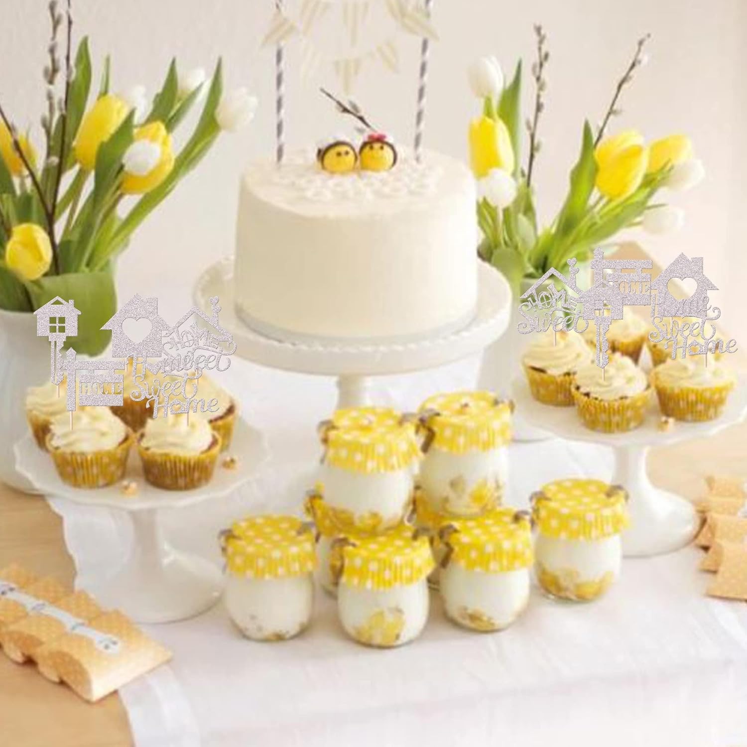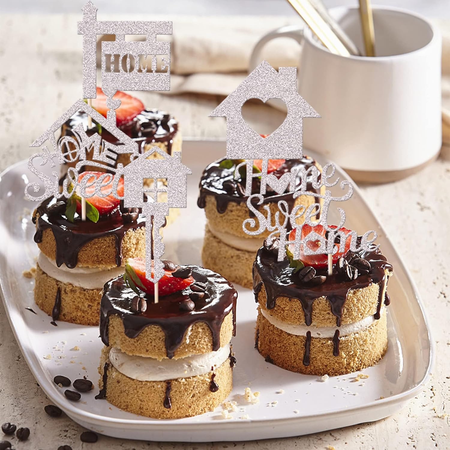 Confezione e dimensioni: include 30 toppers per cupcake Sweet Home. Questi stuzzicadenti innovativi e carini aggiungono più divertimento. La dimensione è 2,8 x 4,8 pollici / 2,2 x 5,1 pollici / 1,7 x 4,4 pollici / 2,1 x 4,6 pollici / 1,4 x 5 pollici (incluso il bastoncino). Ampi usi: questi toppers per cupcake sono così carini e perfetti per la festa a tema Sweet Home, la festa a tema Cute Home, la festa a tema chiave, la festa a tema di inaugurazione della casa, le decorazioni per cupcake per la nuova festa in casa. Sono una buona decorazione e rendono il tuo cupcake più attraente e interessante. Puoi anche usarli per gelati, frutta, biscotti e altri dessert. Materiale premium: questi toppers per cupcake sono realizzati con cartoncino glitterato da 300 g di alta qualità e bastoncini 100% per uso alimentare. Sono molto sicuri per cupcake, biscotti, torte, frutta, biscotti, gelati e altri dessert. Nessun fai da te: questi toppers per cupcake sono preassemblati, quindi puoi inserirli nel tuo cupcake non appena lo ricevi, il che può farti risparmiare tempo. Promemoria: questi toppers per cupcake sono lucidi su un lato, il retro è bianco solido. Solo a scopo decorativo, non commestibile e non utilizzare nel forno o nel microonde. Offriamo un rimborso del 100% non appena riscontri problemi con l'ordine. Tuttavia, devi prima contattarci in modo da poter elaborare il rimborso in tempo.