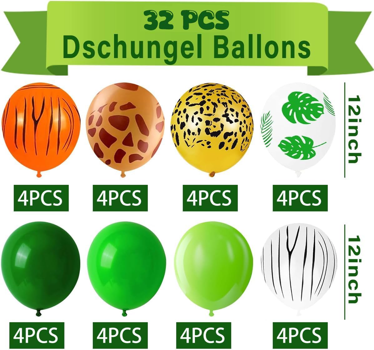 🌴[Varietà colorata]---I nostri palloncini della giungla sono disponibili in vari modelli tra cui modelli tigre, leopardo, zebra e cervo. Con un totale di 32 palloncini nei colori foglia di palma, verde frutta, verde chiaro e verde scuro, creeranno un'atmosfera colorata ed emozionante alla tua prossima festa. 🐯[Versatile]---Con i nostri palloncini giungla da 12 pollici puoi divertirti a qualsiasi festa! Che si tratti di un compleanno per bambini, di un baby shower o di una festa a tema giungla, i nostri palloncini con animali attirano davvero l'attenzione. 🦓[Materiale di alta qualità] --- I nostri palloncini safari sono realizzati in lattice di alta qualità, robusto e durevole. I colori vivaci e i motivi dettagliati degli animali creano un'atmosfera allegra. 🦒[Nota]---I palloncini Safari appaiono scuri prima del gonfiaggio, ma assumono il colore desiderato dopo il gonfiaggio. Fare attenzione a non riempire eccessivamente i palloncini per evitare danni. 🐆[Servizio clienti eccellente]---Prezzo ragionevole e alta qualità! La soddisfazione del cliente è la nostra massima priorità. Se hai altre domande sui nostri palloncini per il compleanno della giungla, contattaci e ti daremo una risposta soddisfacente.^^
