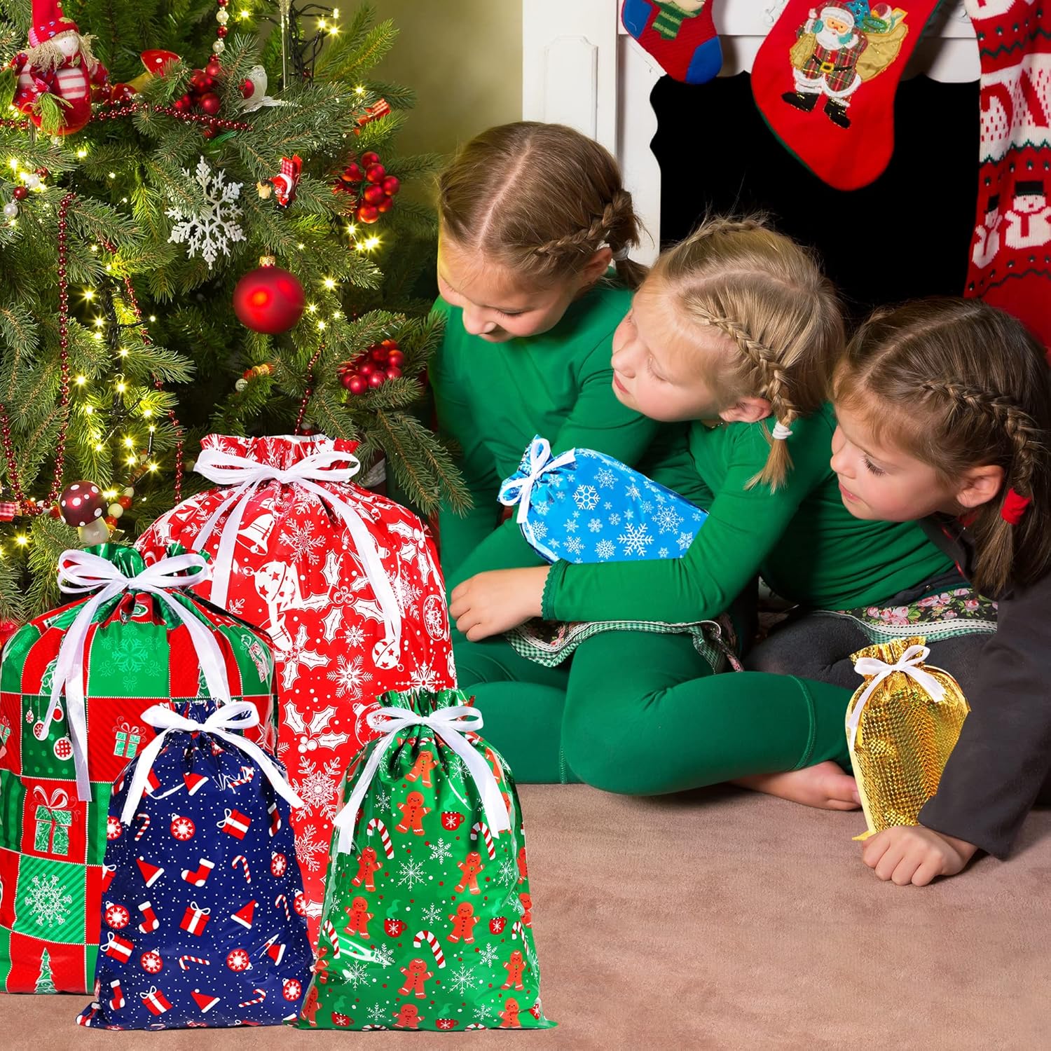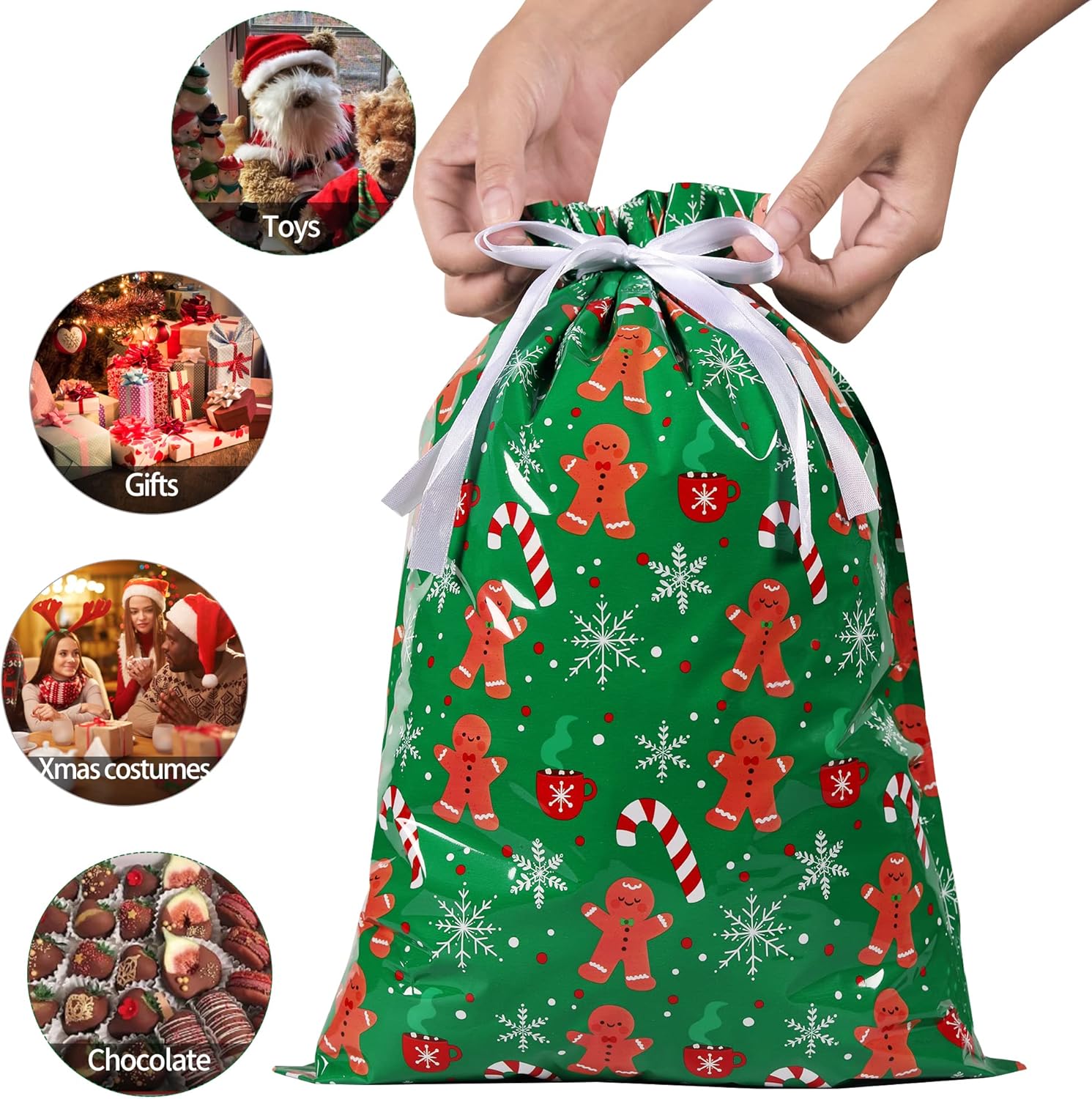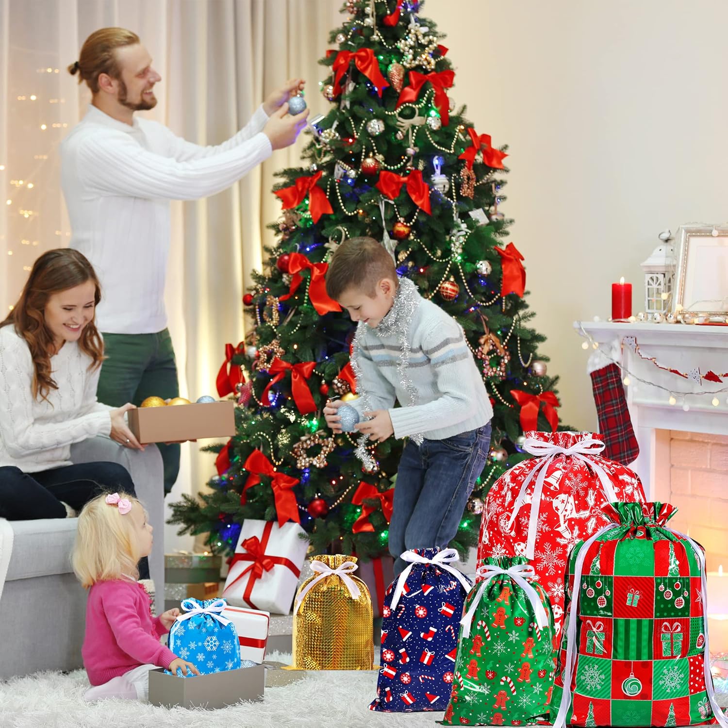 Regalo di Natale: Il set comprende 36 pezzi. sacchetti regalo natalizi assortiti. 6 sacchetti regalo extra-large misurano 58 x 43 cm, 10 sacchetti regalo grandi misurano 51 x 39 cm, 10 sacchetti regalo medi misurano 43 x 29 cm (2 modelli) e 10 sacchetti regalo piccoli misurano 32 x 24 cm (2 modelli). Durevole e riutilizzabile: tutte le borse regalo natalizie con coulisse realizzate in materiale di alluminio premium stampato riutilizzabile, ogni borsa ha due cinturini con coulisse che si inseriscono direttamente nella borsa, basta stringere il cordoncino e avvolgerlo immediatamente. Materiale premium: le borse natalizie con coulisse sono realizzate in polietilene, foglio di alluminio e pellicola di poliestere, costituite da tre strati di materiali, durevoli, non tossici, inodori, resistenti agli strappi e facili da pulire, possono contenere tutti i tipi di regali di Natale, scatole regalo, caramelle, sono durevoli e durevoli e fanno risparmiare denaro. Vari modelli e colori: i sacchetti regalo di Natale riutilizzabili sono stampati con vari motivi natalizi, come Babbo Natale, pupazzo di neve, fiocco di neve, omino di pan di zenzero e albero di Natale che è bello e accattivante, diverse dimensioni aiutano a confezionare regali diversi, pratici e convenienti. Migliora l'atmosfera di festival e armonia: i sacchetti regalo di Natale HCSSZ possono essere utilizzati per conservare regali di Natale di varie dimensioni, giocattoli di stoccaggio, bambole, cappelli di Natale, giocattoli per ragazzi e ragazze, dolci e regali in molte occasioni, come feste del Ringraziamento, feste di Natale, feste di compleanno, Capodanno, ecc.