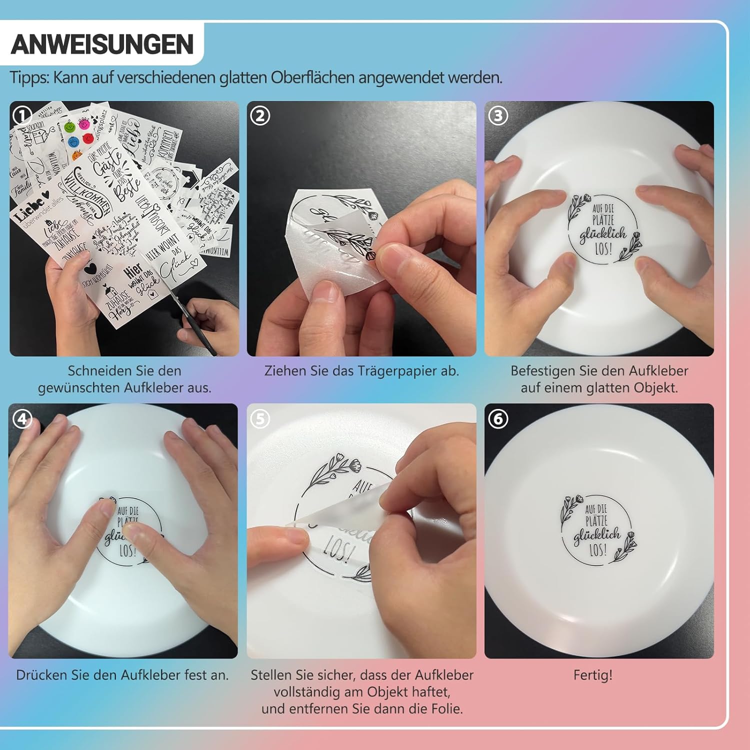 Utilizzo versatile: il set contiene 4 adesivi da 19x14 cm, che possono essere utilizzati su superfici lisce e asciutte come vetro, ceramica, carta, gesso, legno e cemento, ad esempio per lavori di bricolage e fai da te. Nota: non adatto per candele. Resistente e impermeabile: dotato di un forte potere adesivo, una pellicola sottile protegge gli adesivi dall'acqua e dallo scolorimento. Nota: evitare di strofinare vigorosamente i motivi per evitare di comprometterne l'effetto. Diversi design: i motivi sono ricchi e vari: sicuramente c'è un design che ti piace. I temi includono Casa, Belle parole, Natale, Capodanno, Compleanno, Lutto e Pasqua per soddisfare le tue esigenze. Facile da usare: ritaglia semplicemente il disegno che ti serve, rimuovi la pellicola e premi l'adesivo sulla superficie desiderata fino al completo trasferimento. MULTIUSO: Sia nella vita di tutti i giorni che in occasioni speciali come Natale e Capodanno, i nostri prodotti soddisfano le vostre esigenze di decorazioni regalo e progetti fai-da-te e creano un'atmosfera accogliente nella vostra casa.