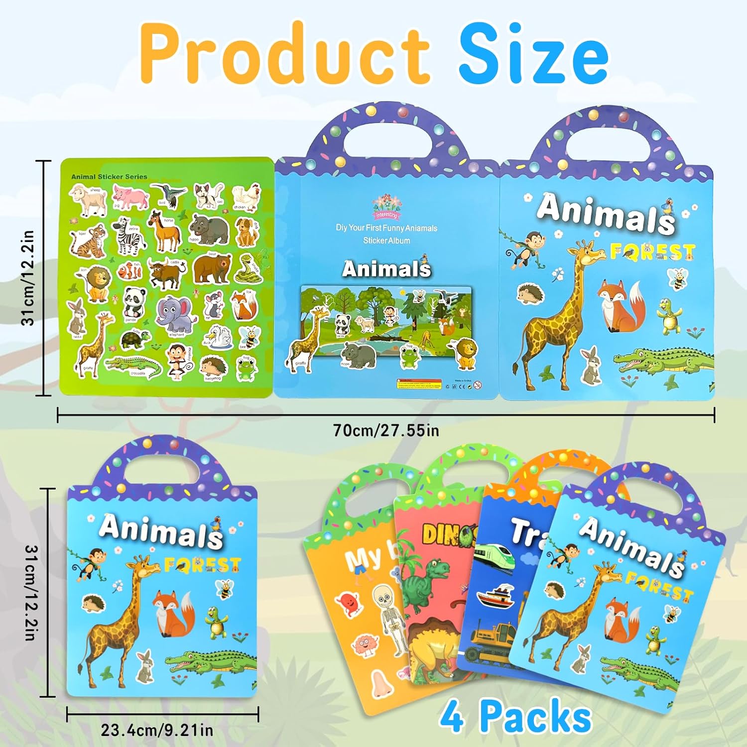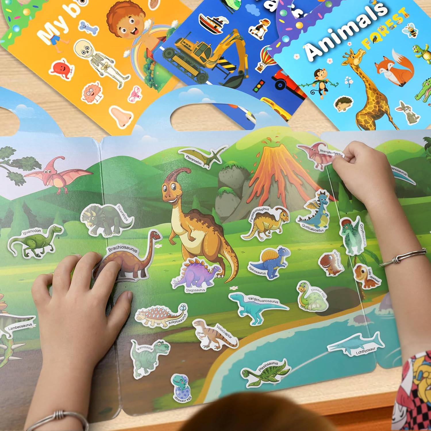 Set di 4 libri di adesivi pieghevoli: i nostri 4 set di libri di adesivi pieghevoli offrono 4 temi diversi: dinosauri, animali, traffico e organi umani. I bambini possono usare la loro immaginazione per inventare storie basate su diversi argomenti e attaccare gli adesivi sulle parti preferite del libro. Adatto a bambini dai 3 anni in su. Design pratico: il libro di adesivi riutilizzabile ha un design pratico e unico con una maniglia, facile da trasportare, perfetto per viaggi e viaggi. I bambini possono attaccarsi, navigare e imparare. Portalo con te in viaggio, in vacanza, in macchina o in aereo, a casa, dai parenti, alle feste o con gli amici. Utile ed educativo: il libro di adesivi riutilizzabile può tenere i bambini lontani dai dispositivi elettronici e proteggerne gli occhi e il collo. Consentono di creare storie diverse in modo divertente come incollare e staccare e apprendere le conoscenze pertinenti nel libro degli adesivi mentre si gioca. Promuove l'immaginazione, la creatività, le abilità pratiche e la concentrazione dei bambini e migliora la loro destrezza e coordinazione occhio-mano. REGALO IDEALE PER BAMBINI: questo set di libri di adesivi gonfi 3D è adatto per ogni occasione a casa, a scuola, negli appuntamenti di gioco e altro ancora. Regalo ideale per ragazzi e ragazze per compleanni, festa dei bambini, Natale, Halloween, Ringraziamento o altre festività. I libri di adesivi regaleranno ai bambini ore di divertimento e permetteranno loro di imparare attraverso il gioco. Adesivi impermeabili riutilizzabili: la dimensione piegata del libro di adesivi è 23,4 cm/9,21 pollici, 31 cm/12,2 pollici e la dimensione aperta è 70 cm/27,55 pollici, 31 cm/12,2 pollici. Il libro di adesivi è realizzato in materiale cartaceo di alta qualità, con stampa chiara, impermeabile, durevole e gli adesivi sono fortemente adesivi, quindi può essere riutilizzato molte volte. I bambini possono attaccarli su libri, specchi, finestre e altre superfici lisce.