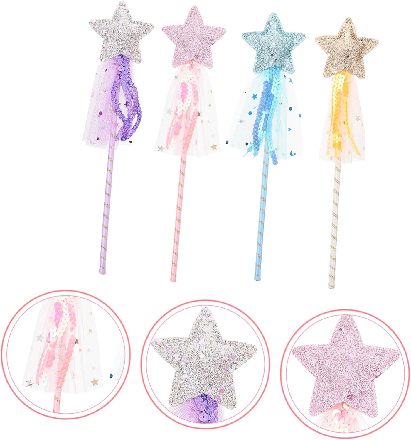 Bacchetta magica: è una bacchetta magica molto comoda e facile da usare. Giocattolo bacchetta magica colorata: la bacchetta magica a stella creativa si abbina bene ai vestiti del tuo bambino e fa sembrare il tuo bambino più bello, giocattolo bacchetta magica Bacchette magiche: bacchetta magica a forma di stella, rendila più affascinante e accattivante, bacchette magiche Bacchette magiche da principessa: cinque design unici, unici e creativi, possono dare a tuo figlio un'atmosfera più fiabesca, bacchetta magica per ragazze. concerti, balli, feste e fotografie, bacchetta magica delle stelle per ragazze
