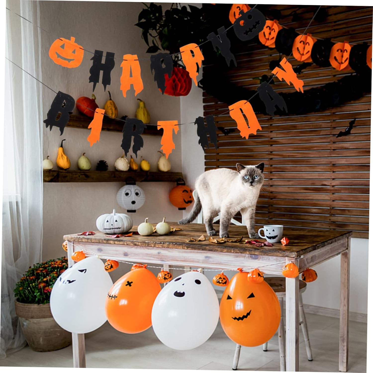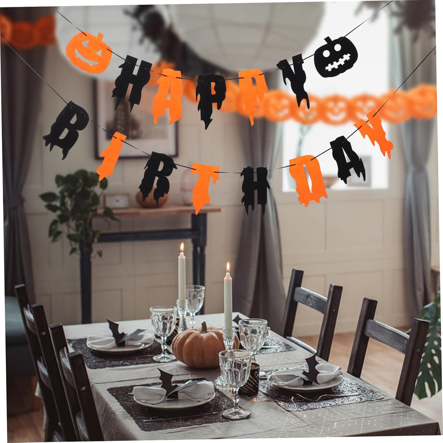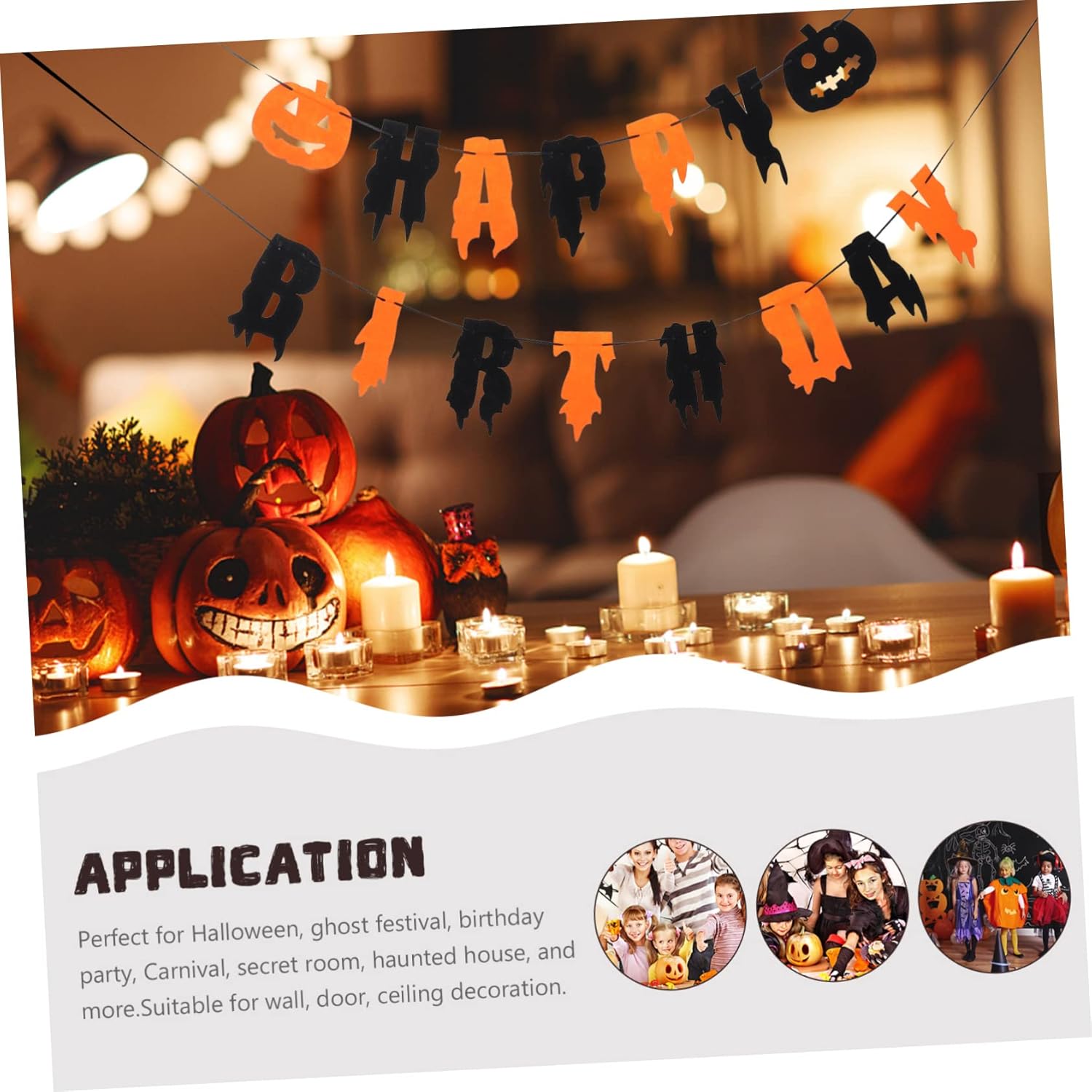 Decorazione banner per la casa: crea più personalità e offre un'atmosfera più allegra per le tue feste, decorazione di ghirlande. Decorazioni per feste di compleanno di Halloween - Banner di Halloween con lettere di buon compleanno che rendono la tua festa più impressionante, banner di Halloween sospeso. Striscioni sospesi per scene di festa - La decorazione piena di elementi di Halloween, porta sicuramente l'atmosfera di Halloween alle tue bandiere sospese per feste di Halloween. Bandiera sospesa di Halloween - Per le forniture per feste di Halloween e rendi la tua festa più interessante e meravigliosa, decorazioni di Halloween. Banner per feste: un ottimo oggetto di scena che può aiutarti a lasciare alcuni ricordi di Halloween con i tuoi amici e familiari, decorazioni sospese di Halloween.