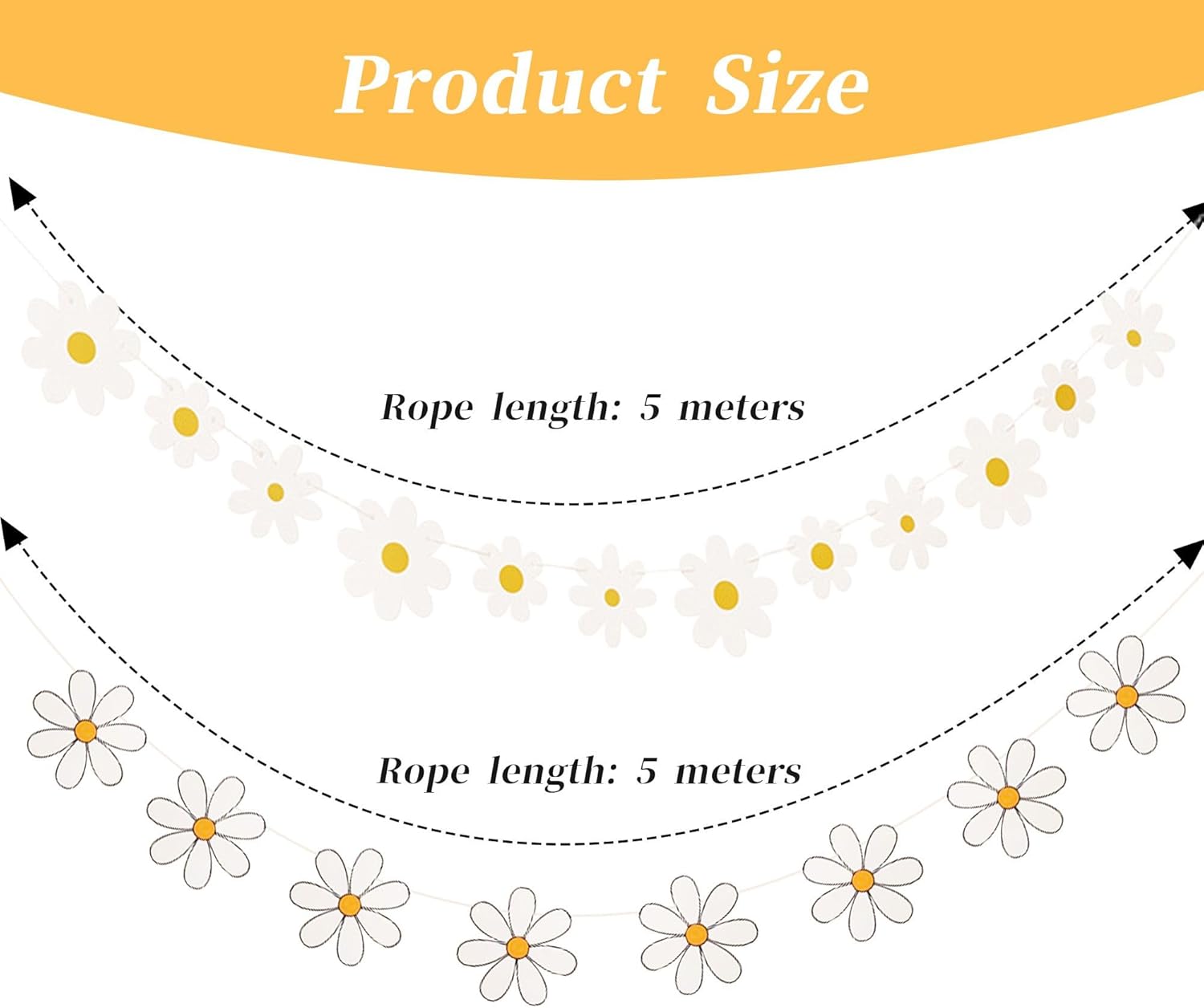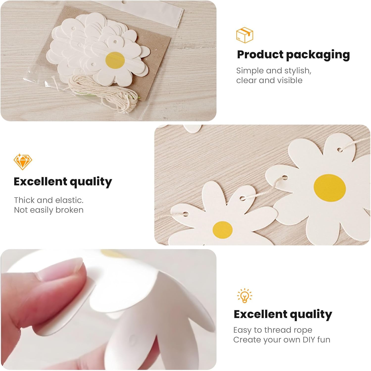 Pratico set da 4 pezzi: include ghirlanda di margherite e striscione di carta da appendere (4 pezzi in totale), soddisfa le principali esigenze di decorazione della festa di compleanno senza ulteriori . Materiale cartaceo ecologico: realizzato con carta di alta qualità, leggero e resistente alla deformazione, nessun odore nocivo, sicuro per le scene domestiche e di festa. 【Stile margherita bianca fresca】 Il classico design a margherita bianca, semplice e versatile, si adatta facilmente a scene calde come il compleanno o il tè e migliora l'atmosfera. Facile da usare: grazie al design sospeso integrato, può essere rapidamente appeso al muro, all'architrave o allo sfondo della festa, senza complicati strumenti di installazione. 【Regolazione multiscena】Oltre alla decorazione del compleanno, può essere utilizzata anche per la decorazione quotidiana della casa o della stanza dei bambini, con forte praticità.