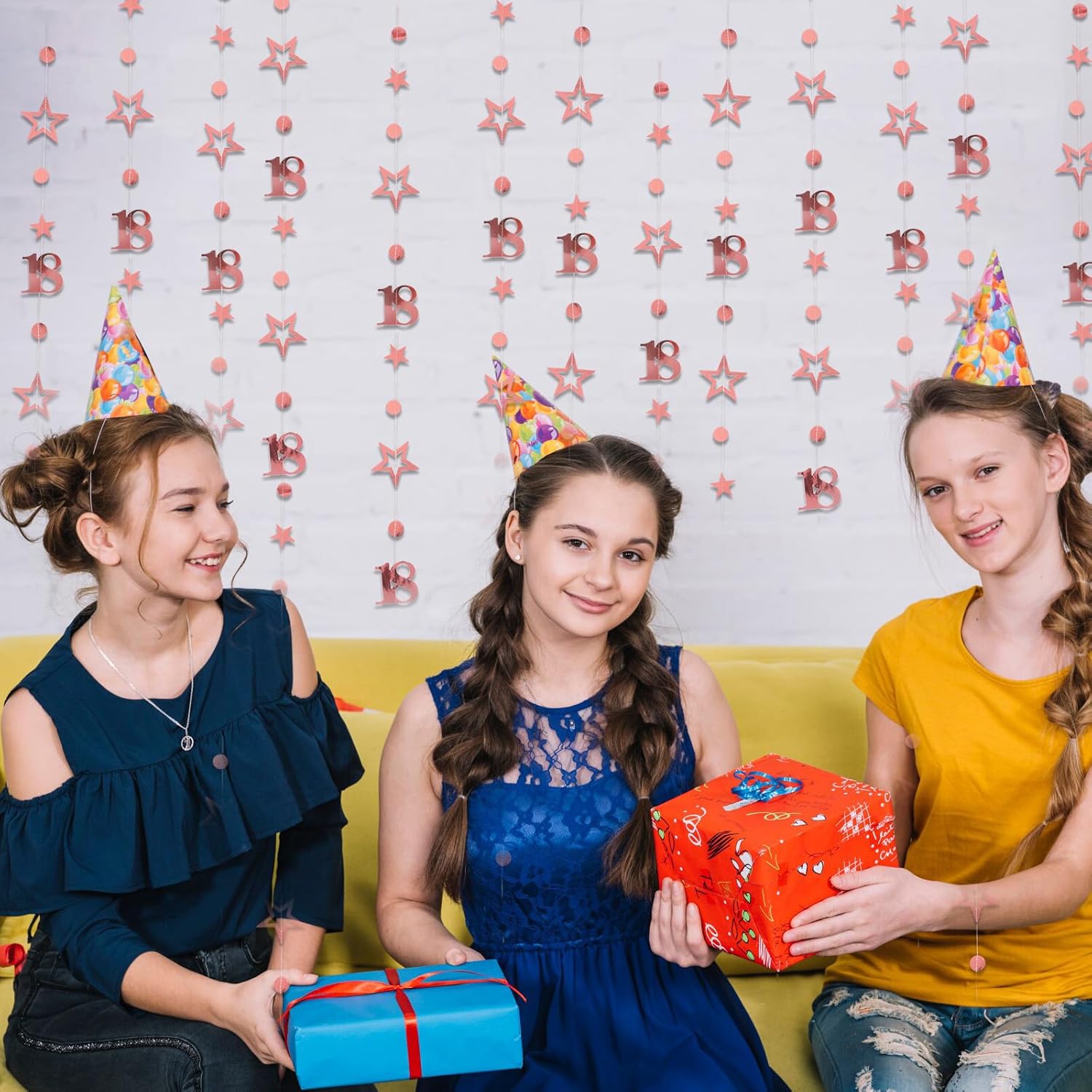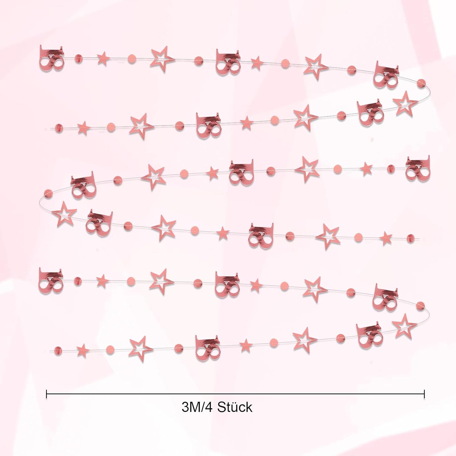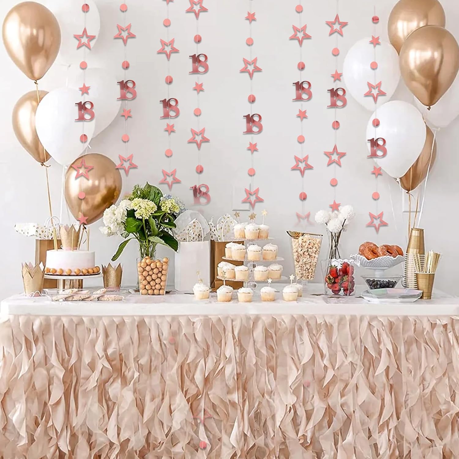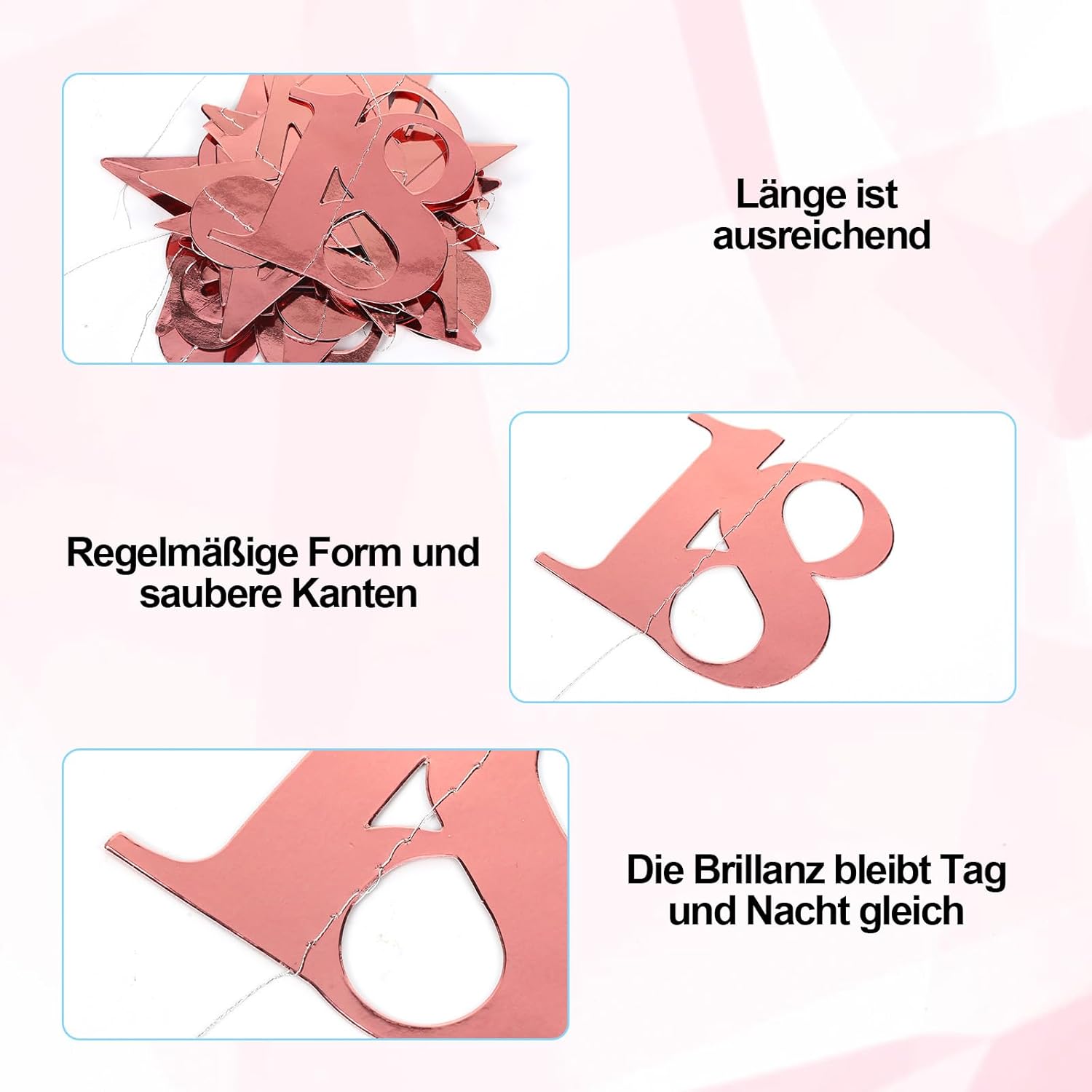 Set di striscioni: la festeggiata 18 glitter contiene 4 striscioni, ciascuno lungo 300 cm, perfetti per decorare feste di compleanno, anniversari e altre occasioni festive. Lavorazione di alta qualità: le 18 ghirlande di buon compleanno sono realizzate in carta metallizzata fronte-retro di alta qualità, che ha un elegante colore oro rosa lucido e crea un'atmosfera lussuosa per il tuo evento. Versatile per le occasioni speciali: 18 decorazioni per feste. Ideale per compleanni, decorazioni di compleanno per ragazze, anniversari o altre celebrazioni significative. Il buon compleanno sarà testimone di ogni momento indimenticabile. Installazione semplice: le decorazioni per il 18° compleanno per ragazze sono facili da appendere: basta posizionarle dove vuoi. I motivi a stella e a pois sono infilati su un filo, ma assicurati di districare attentamente gli striscioni per evitare che si aggroviglino. Design della forma: le decorazioni per il 18° compleanno hanno un design armonioso con motivi a stella e piccoli punti che interrompono la ripetizione dei motivi e conferiscono allo streamer in oro rosa un aspetto attraente ed equilibrato. Perfetto per creare un'atmosfera speciale e valorizzare la tua festa