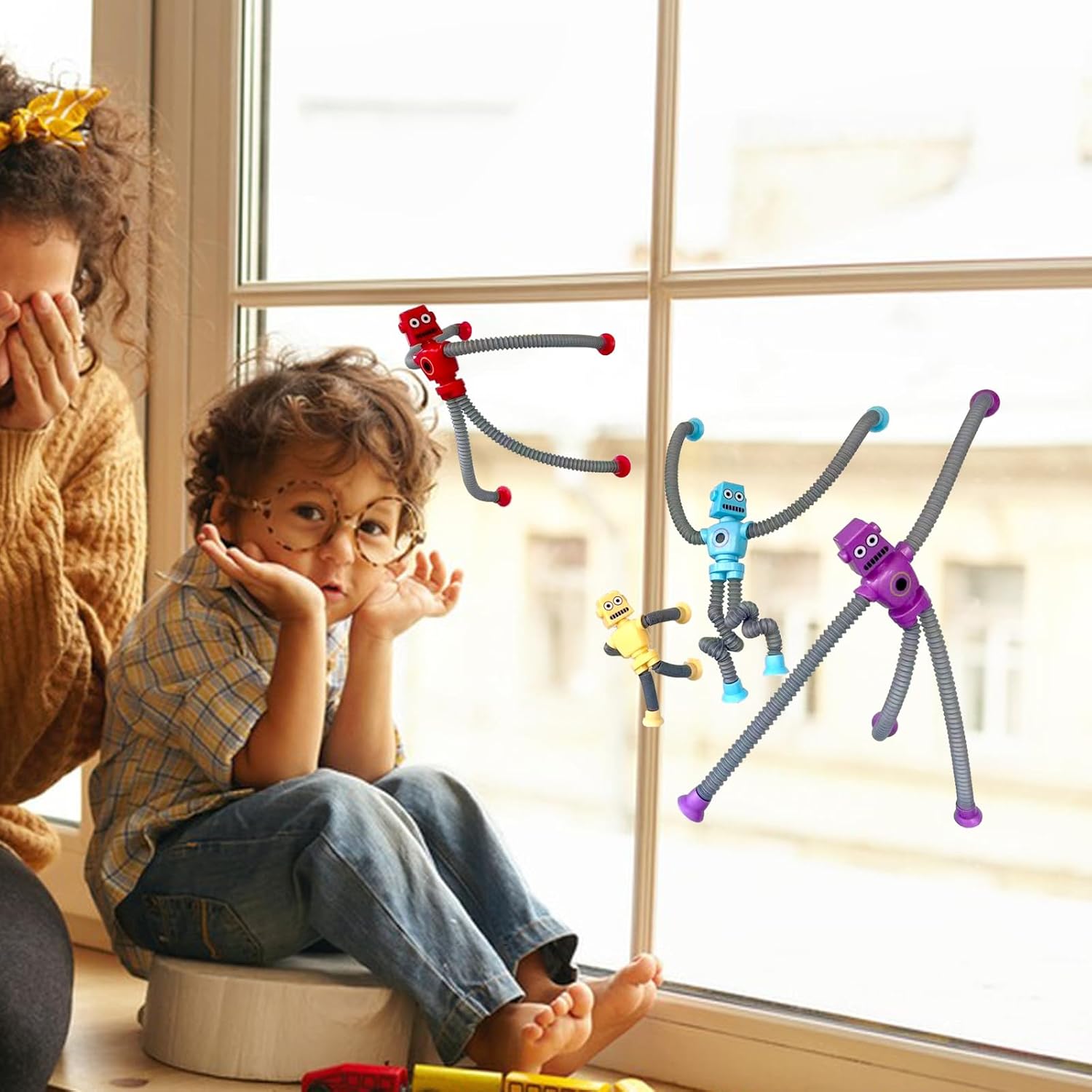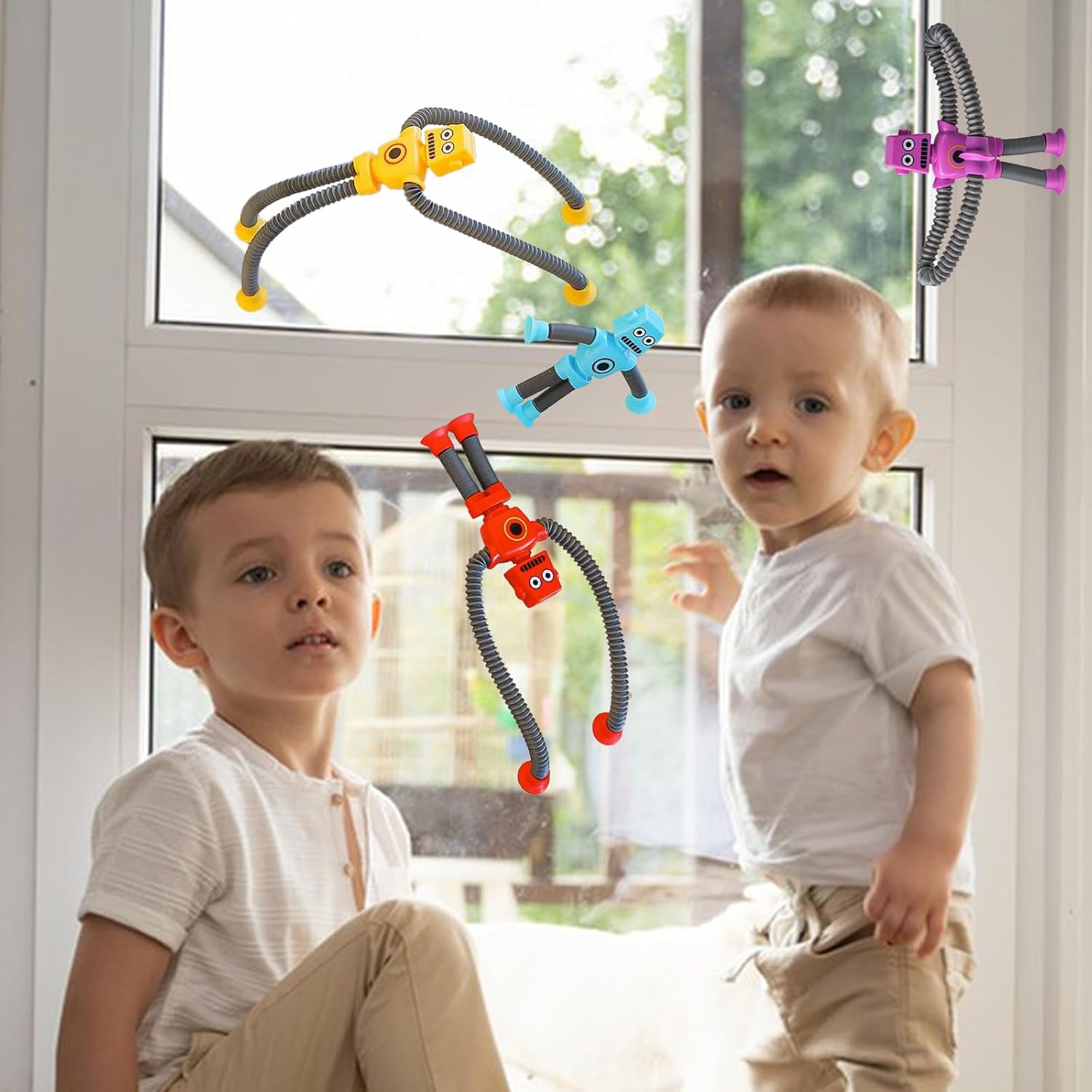 Design creativo: il robot giocattolo con ventosa telescopica è un giocattolo sensoriale divertente e innovativo realizzato con tubi estensibili e rotanti. Un'estremità del tubo è collegata al fantastico corpo del robot e un'estremità ha una ventosa che può essere allungata, ruotata in diverse forme e fissata. Il suo design unico incoraggia i bambini a giocare con fantasia e aiuta a sviluppare le loro capacità motorie. MATERIALE SICURO E DI ALTA QUALITÀ: questi giocattoli sensoriali sono realizzati con materiale di alta qualità adatto ai bambini, privo di BPA e assolutamente sicuro per il tuo bambino. Così il tuo bambino è sempre protetto e tu puoi giocare in tutta tranquillità. E questo giocattolo a ventosa retrattile è spesso e flessibile e può essere ruotato e tirato a piacimento senza rompersi. Base a ventosa: ogni giocattolo a ventosa robot ha una base a ventosa che può aderire saldamente a qualsiasi superficie liscia come specchi, piani di tavoli, finestre e piastrelle, consentendo ai bambini di giocare in una varietà di ambienti. Le ventose possono essere collegate e separate in diversi modi, permettendo loro di usare la loro immaginazione e abilità pratiche per creare ogni sorta di cose nuove. (Piccolo consiglio: la ventosa sarà più solida con un po' d'acqua) Sollievo dallo stress e concentrazione: questi giocattoli sensoriali pop tube sono perfetti per alleviare lo stress e l'ansia. Il suo design e la sua consistenza unici forniscono un'esperienza tattile che aiuta a calmare e alleviare le emozioni agitate. E può anche essere usato come giocattolo per bambini per sviluppare le capacità motorie dei bambini, la coordinazione occhio-mano, il pensiero visivo e la concentrazione. I suoi colori vivaci e le forme carine attireranno sicuramente l'attenzione dei bambini e stimoleranno la loro creatività. Regalo perfetto: questi giocattoli da spremere a tubo pop per bambini sono comodi e facili da usare. La sua struttura leggera lo rende facile da trasportare ovunque. Questi giocattoli antistress sono un'ottima scelta regalo per ragazzi, ragazze, famiglia, colleghi, partner, studenti, compagni di classe, vicini di casa in occasione di compleanni, feste per bambini, Natale, vacanze, ritorno a casa, feste, attività scolastiche, attività didattiche, ecc.