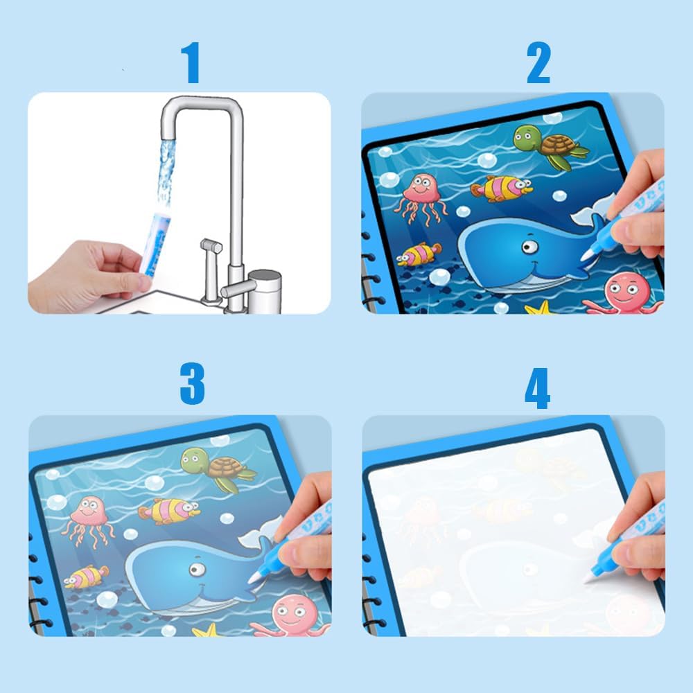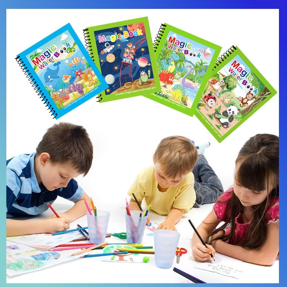 Colorare ad acqua riutilizzabili e senza sporcare: basta riempire la penna con acqua e lasciare che il bambino inizi a colorare: i colori magici appaiono all'istante! Dopo 5-10 minuti, le pagine si asciugano completamente e possono essere riutilizzate più volte. Niente sporcare, niente macchie, perfette per casa o in viaggio. 4 libri + 4 penne ad acqua ricaricabili: questa confezione conveniente include 4 entusiasmanti libri da colorare ad acqua magici a tema e 4 penne ad acqua ricaricabili. Ogni libro contiene pagine riutilizzabili che offrono ore di divertimento creativo ed educativo per i piccoli artisti. Promuove le prime capacità di apprendimento: ideale per sviluppare la motricità fine, la coordinazione occhio-mano e il riconoscimento dei colori. Questo libro da colorare con penna ad acqua aiuta i bambini a esercitarsi a disegnare e scrivere in modo coinvolgente e senza stress. Materiali sicuri e adatti ai bambini: realizzati con materiali di alta qualità, atossici ed ecocompatibili. Questi libri da colorare ad acqua sono completamente sicuri per i bambini e progettati con pagine spesse e resistenti per resistere a un uso ripetuto. Perfetti per il divertimento in viaggio: leggeri e portatili, questi libri magici ad acqua sono perfetti per intrattenere i bambini in viaggio, al ristorante o a casa di amici. Un'alternativa brillante e senza disordine ai tradizionali libri da colorare.