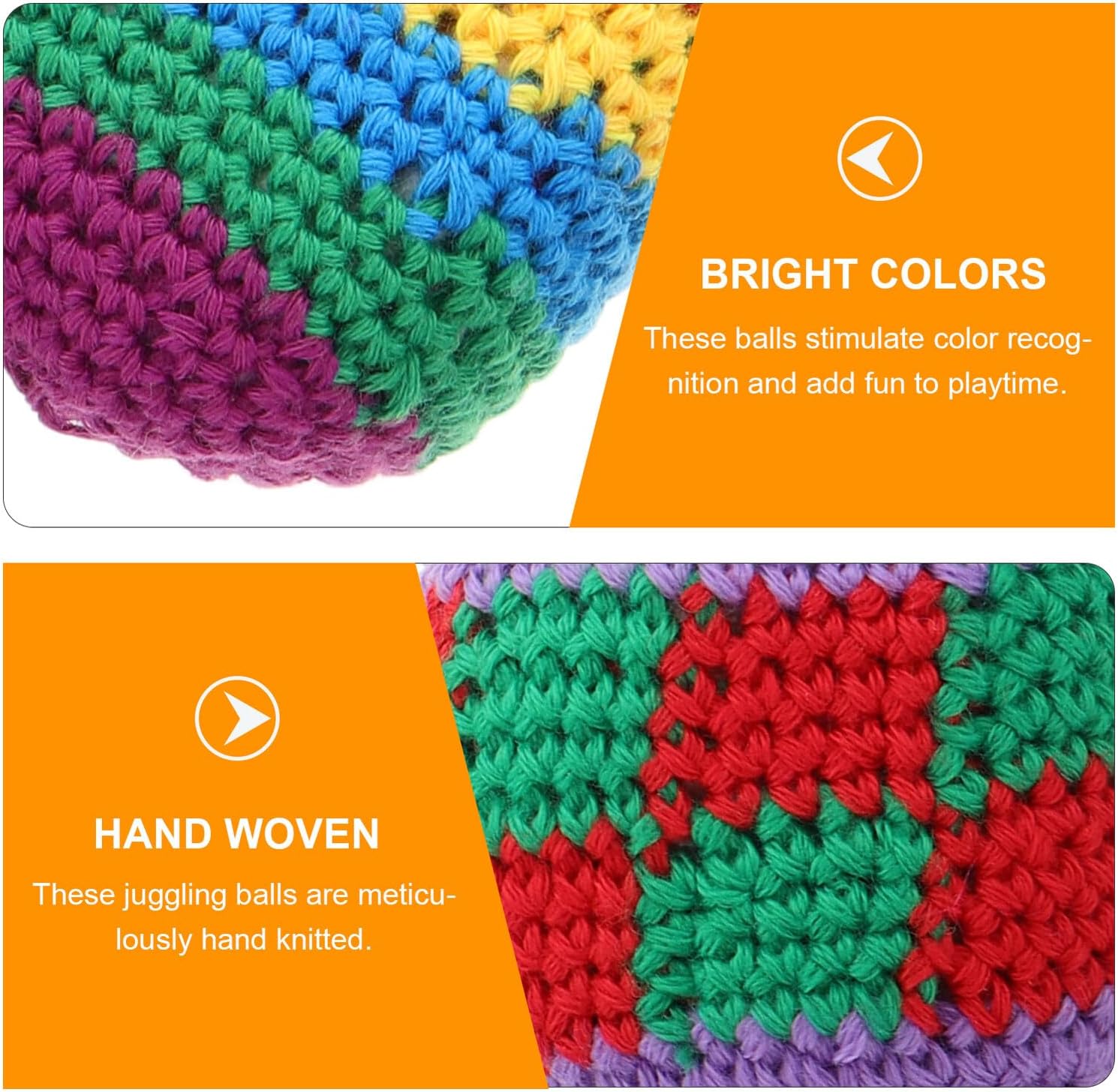 Colori vivaci: realizzate con filato multicolore, queste palline promuovono il riconoscimento dei colori e rendono il gioco più divertente. Sono visivamente accattivanti e sono adatte come palline da giocoliere all'uncinetto e palline morbide. Ideale per le mani piccole: queste palline leggere e facili da impugnare sono adatte ai bambini piccoli e favoriscono lo sviluppo della coordinazione e della destrezza. (palline a sacco lavorate a maglia, palline morbide all'uncinetto) Lavorato a mano: ogni palla è accuratamente lavorata a mano e promuove così le capacità motorie e l'immaginazione dei bambini. Pallone da maglia per gomitoli da lavoro a maglia morbidi Robusto: questi gomitoli sono robusti e resistenti all'usura e offrono un divertimento duraturo. resistono all'uso frequente. (Kickball morbido all'uncinetto, palline morbide all'uncinetto) Lavorazione robusta: queste palline sono durevoli, resistenti e possono resistere a lunghi periodi di divertimento. palline da kicksack lavorate a maglia, palline da giocoliere all'uncinetto