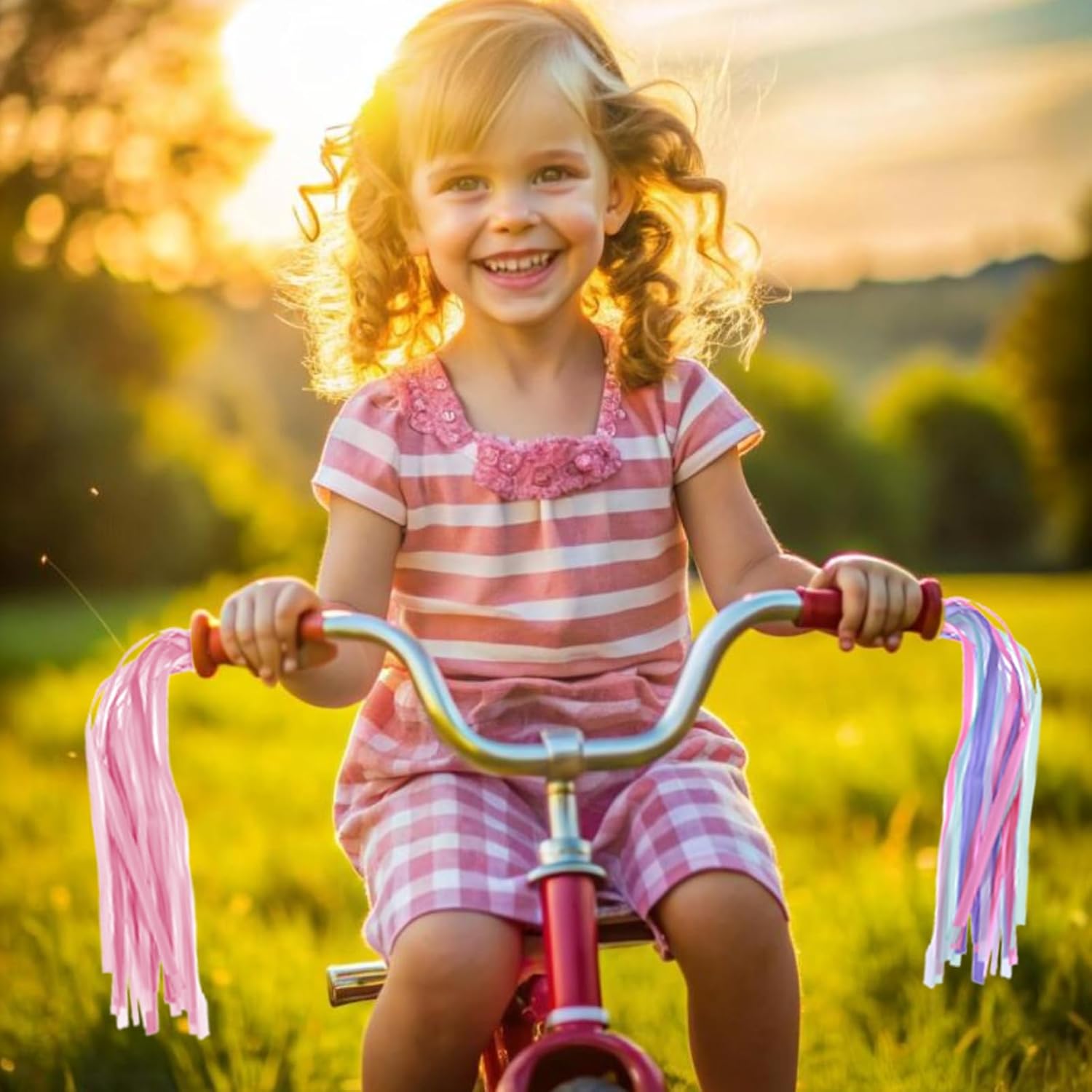 Confezione: riceverai 4 pon pon da bicicletta per ragazze, colore: colorato, dimensioni: nastro da 28 cm, presa da 2,3 cm, quantità sufficiente per soddisfare le tue esigenze di utilizzo e sostituzione. Decorazione squisita e sicura: questi streamer per biciclette di alta qualità sono ottime decorazioni sulle biciclette per bambini. Svolazzano nel vento durante la guida, aggiungendo più divertimento e bellezza alla guida dei bambini. Materiale di alta qualità: lo streamer per bicicletta di questa ragazza è realizzato in robusto poliestere e plastica e svolazzerà e ballerà nel vento durante la guida.,Facile da installare: questi accessori per scooter sono adatti alla maggior parte dei manubri di biciclette e scooter. Possono essere facilmente inseriti nel manubrio e l'installazione è rapida e comoda.,Facile da usare: gli accessori per micro scooter sono colorati e adatti ai bambini che stanno appena iniziando ad andare in bicicletta. Decorazione perfetta per biciclette per bambini, scooter, tricicli, ecc.