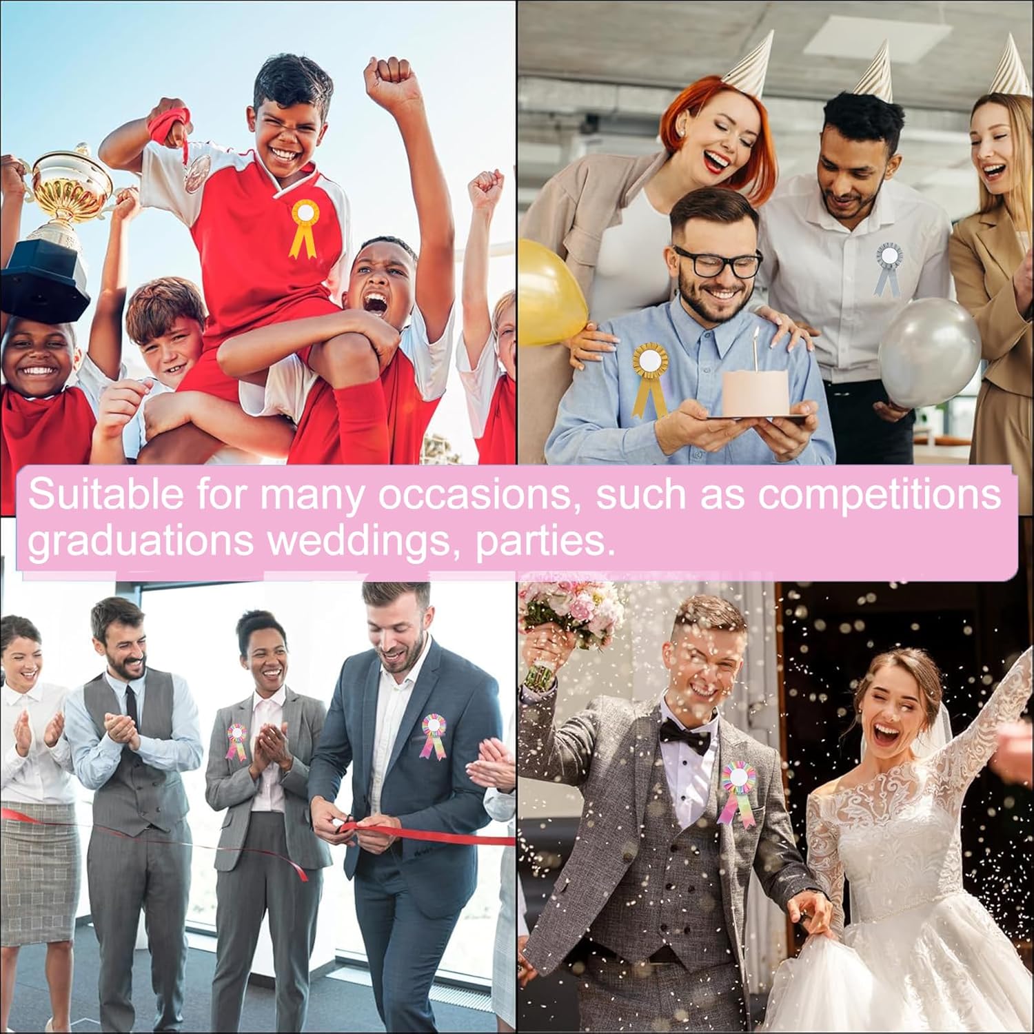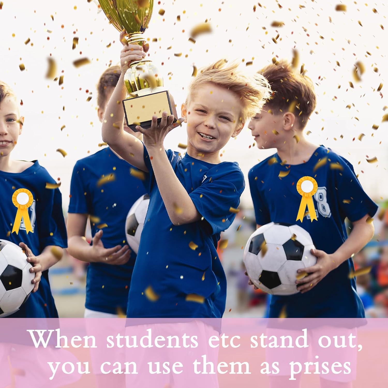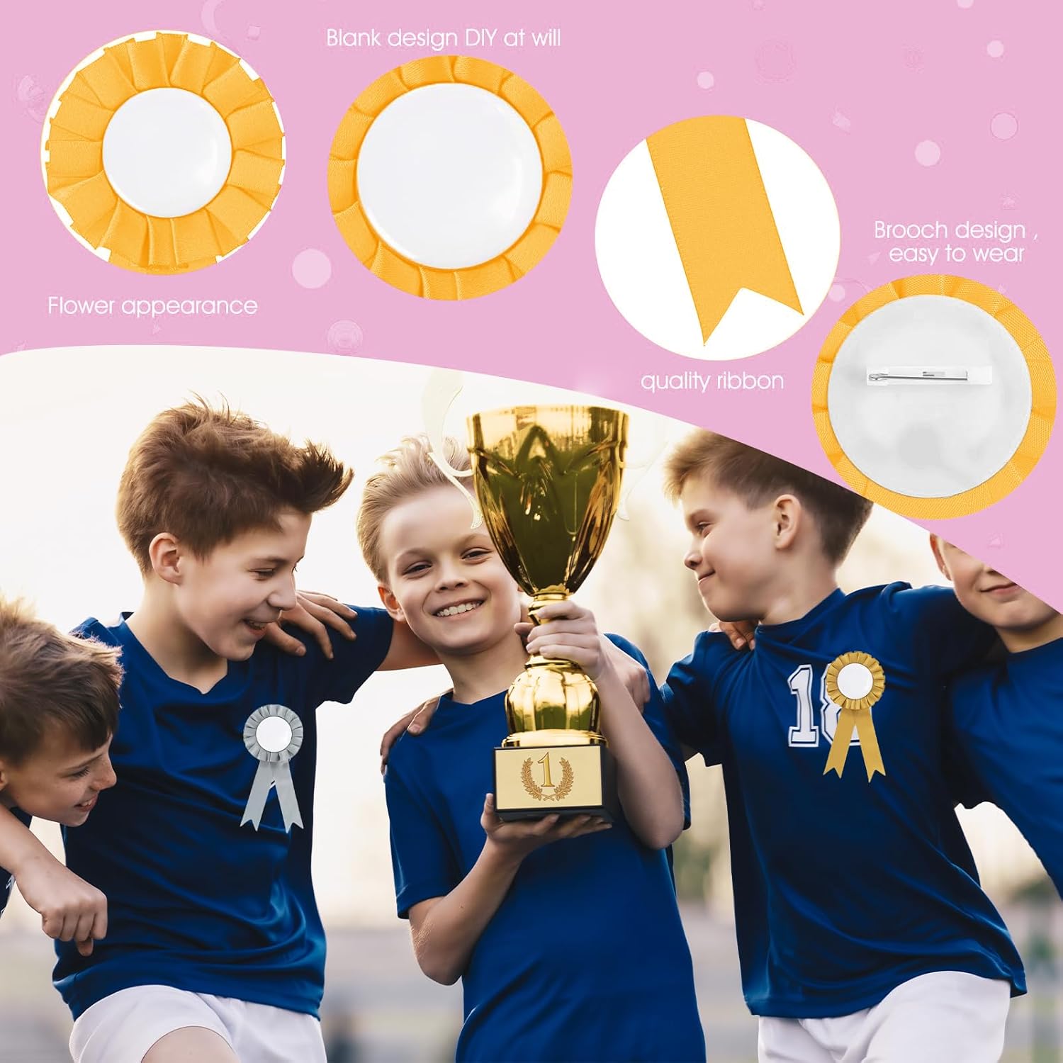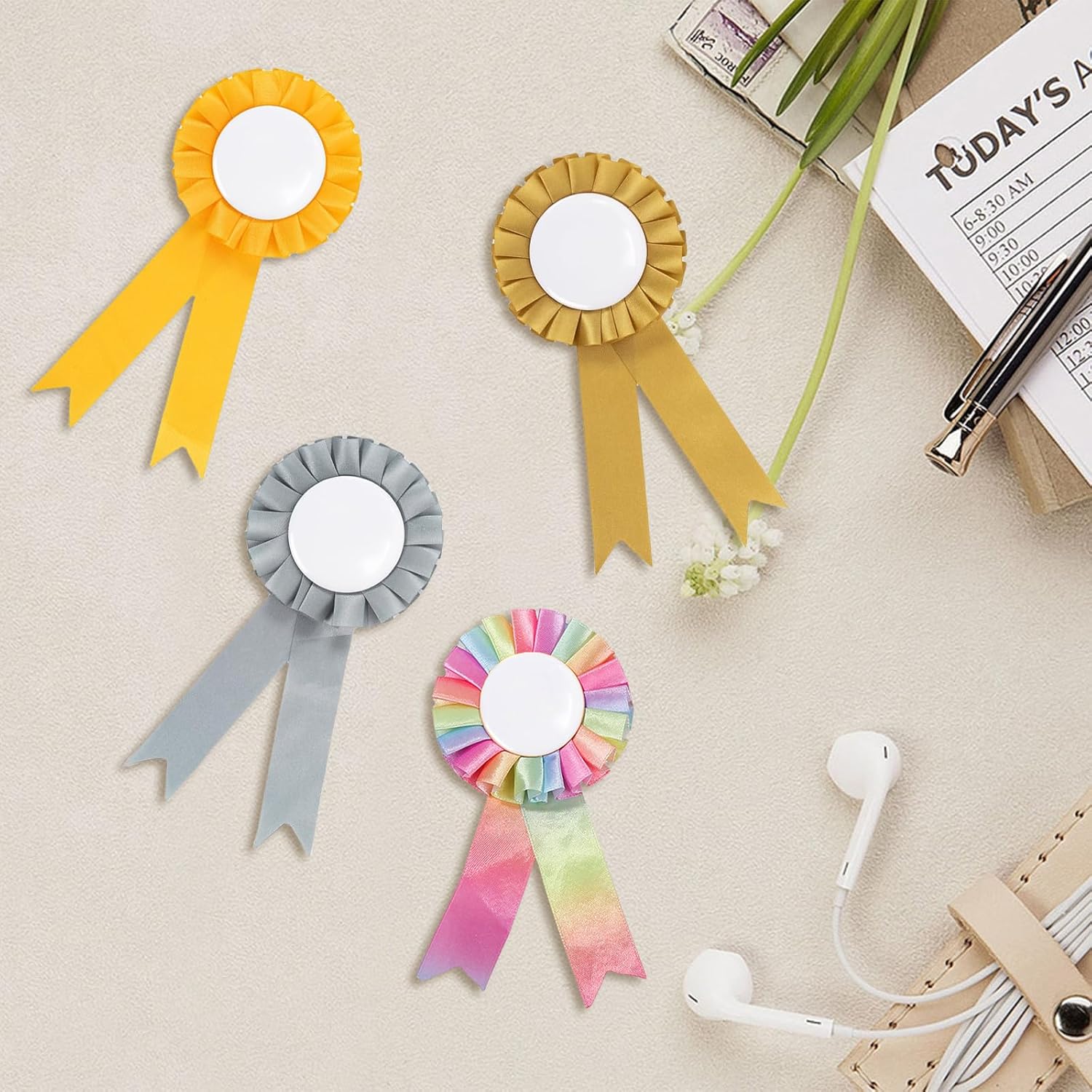 Coccarde per cavalli da hobby: queste coccarde sono probabilmente destinate ai cavalli da hobby, cioè cavalli giocattolo che vengono spesso utilizzati dai bambini. Contenuto della confezione: la confezione contiene sei divertenti fiocchi nei colori oro, argento, rosa e arcobaleno. Opzioni di design creativo: possono essere dipinti e ulteriormente decorati con perline o adesivi per aggiungere un tocco personalizzato. Simbolo di raggiungimento di qualcosa: premia i tuoi vincitori con questi simboli di successo e realizzazione. Oro al 1° classificato, argento al 2° classificato e bronzo al 3° classificato. Ideale per ogni occasione. Premio per api di ortografia, talent show, eventi sportivi, spettacoli di animali, gare di cucina, gite, festival e altro ancora.