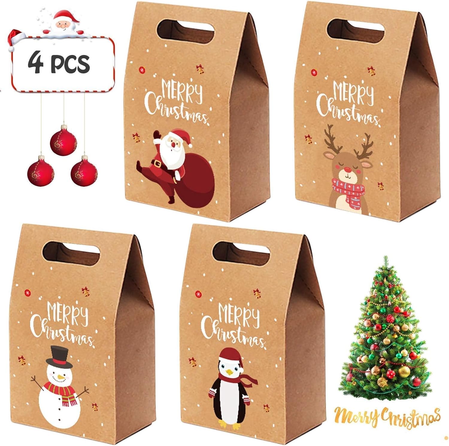 ❤INCLUDE: sacchetto regalo di Natale da 4 pezzi, può soddisfare le tue esigenze nel prossimo Natale, i tuoi bambini e gli ospiti se ne innamoreranno. ❤DIMENSIONE: Ogni sacchetto di carta artigianale misura 10,5*6,5*17,5 cm (L x P x A), abbastanza per riempire i tuoi ospiti con deliziose caramelle natalizie e piccoli regali squisiti. ❤MATERIALE: i nostri sacchetti regalo natalizi kraft con manici sono realizzati in carta kraft di alta qualità, robusti e durevoli, rispettosi dell'ambiente con manici robusti e fondo piatto e solido per un comodo utilizzo. ❤DESIGN: le nostre borse kraft natalizie presentano classici motivi natalizi. Con una varietà di modelli e stili carini e speciali per soddisfare le diverse esigenze in diverse occasioni. ❤APPLICAZIONE: Questi sacchetti natalizi sono ideali per decorazioni per feste di Natale, decorazioni per regali di Natale, dolci, dolcetti, cioccolatini, ecc., Regalando ai bambini un'allegra atmosfera natalizia.
