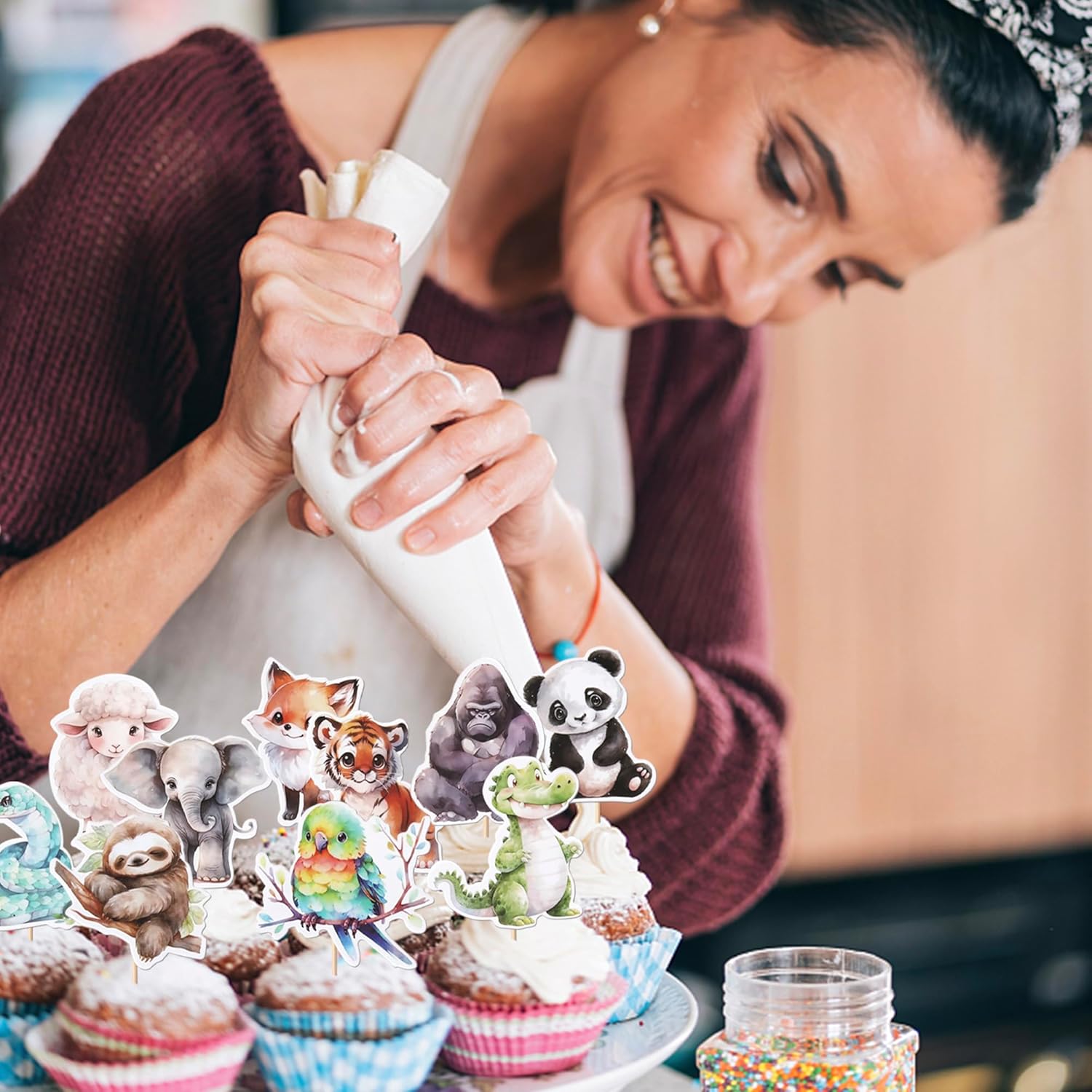 Confezione e dimensioni: include 40 confezioni di toppers per cupcake con animali selvatici. Questi nuovi e graziosi plettri per cupcake aggiungono più divertimento. La dimensione è (compreso il bastone). Ampie applicazioni: questi toppers cupcake sono così carini e perfetti per feste a tema fauna selvatica, feste a tema animali della giungla, feste a tema compleanno, feste a tema anniversario di matrimonio e decorazioni per cupcake. Sono una buona decorazione e rendono il tuo cupcake più attraente e interessante. Puoi anche usarli per gelati, frutta, biscotti e altri dessert. Materiale premium: questi toppers per cupcake sono realizzati in cartoncino glitterato di alta qualità da 300 grammi. Sono molto sicuri per cupcake, biscotti, torte, frutta, biscotti, gelati e altri dessert. NON fai da te: questi toppers per cupcake sono preassemblati, quindi puoi inserirli nel tuo cupcake immediatamente dopo averli ricevuti, il che può farti risparmiare tempo. Memoria! Questi toppers per cupcake sono stampati su entrambi i lati e presentano motivi su ciascun lato. È solo a scopo decorativo, non è commestibile e NON utilizzare nel forno o nel microonde.