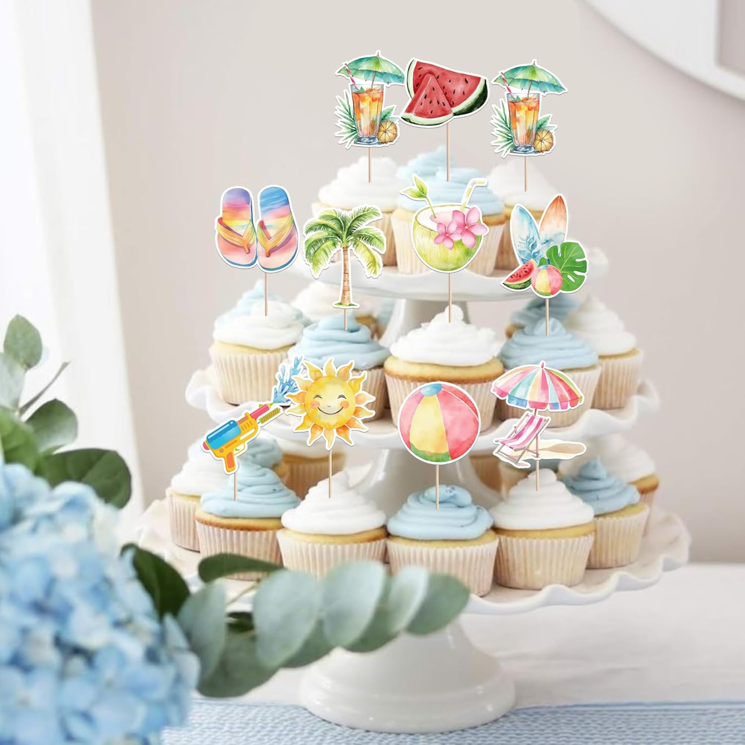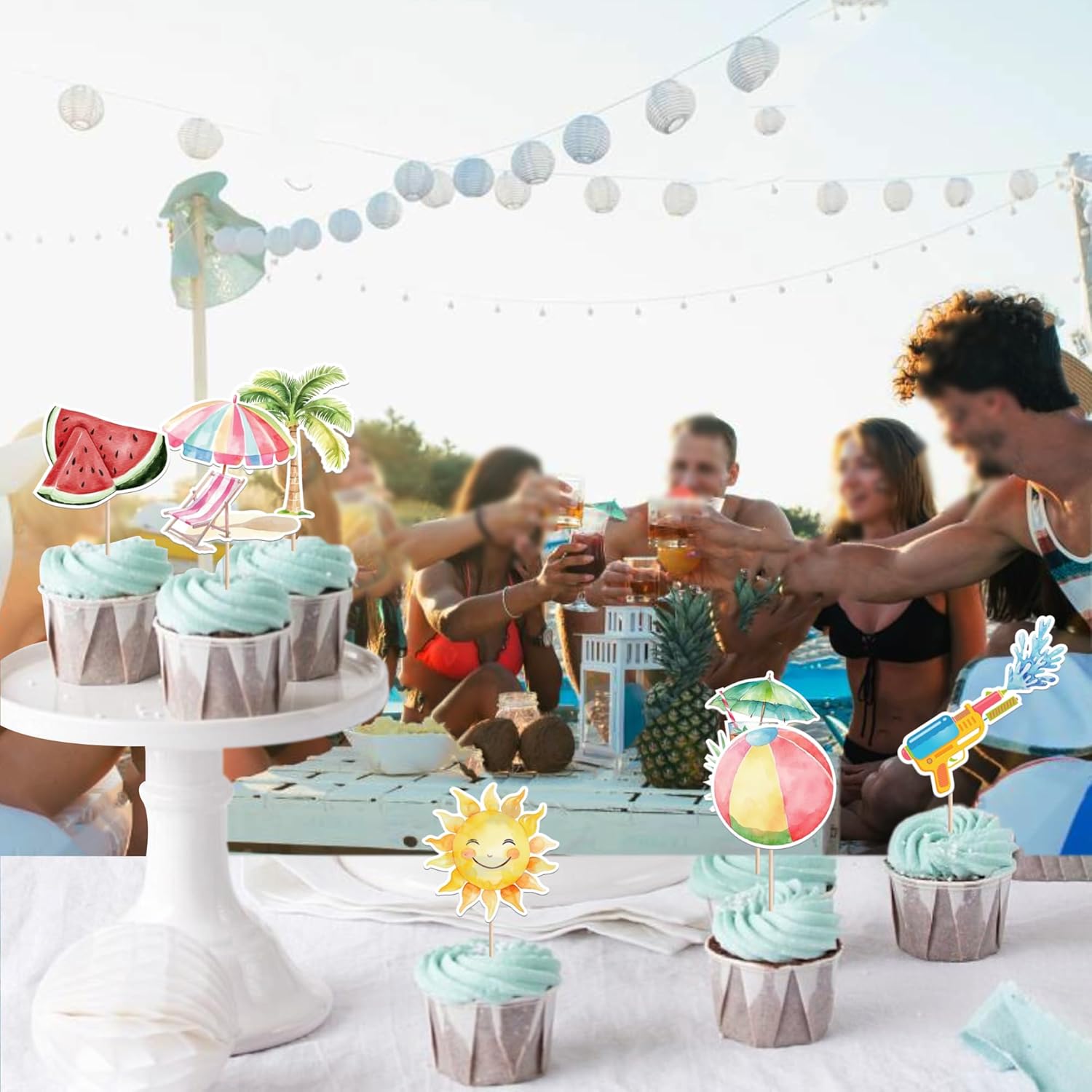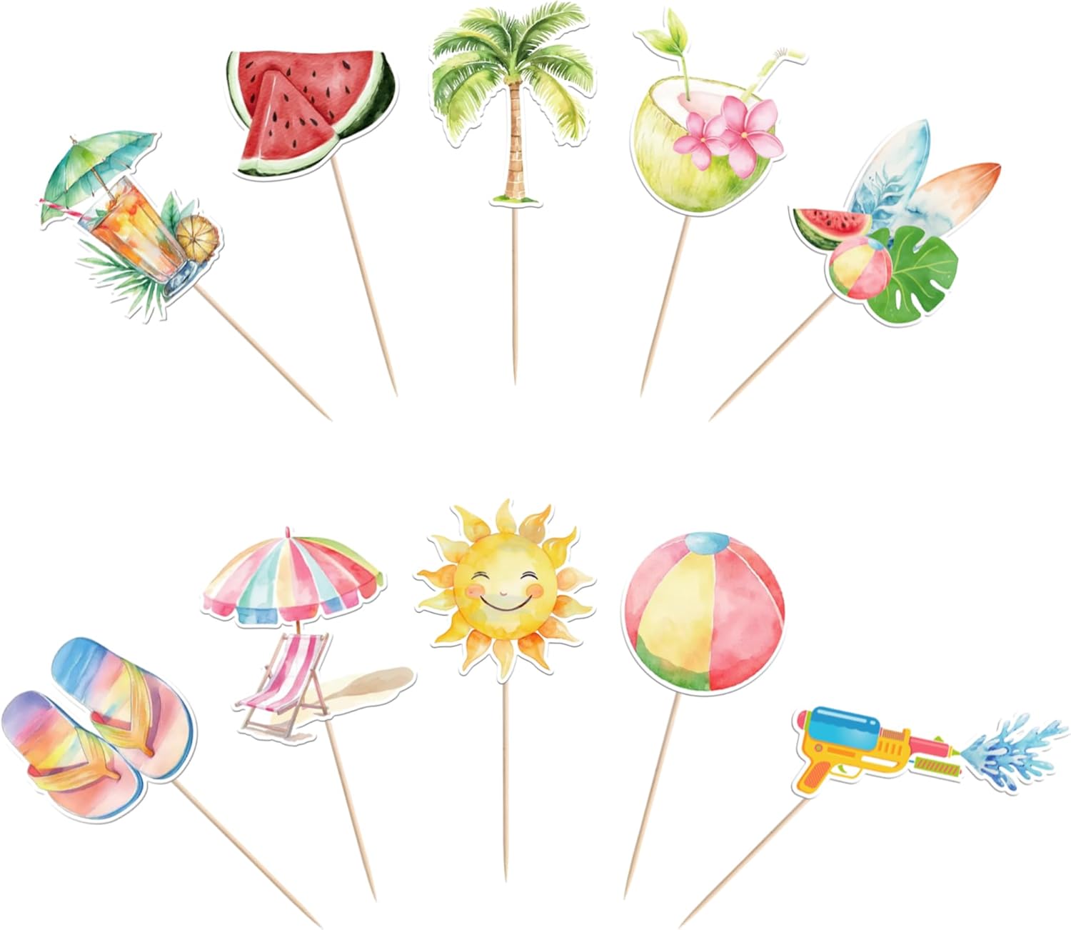 Confezione e dimensioni: include una confezione da 40 toppers cupcake estivi da spiaggia. Questi nuovi e graziosi plettri per cupcake aggiungono più divertimento. La dimensione è (compreso il bastone). Ampie applicazioni: questi toppers per cupcake sono così carini e perfetti per feste a tema estivo sulla spiaggia, feste a tema hawaiano, feste a tema natalizio, feste a tema di compleanno e decorazioni per cupcake. Sono una buona decorazione e rendono il tuo cupcake più attraente e interessante. Puoi anche usarli per gelati, frutta, biscotti e altri dessert. Materiale premium: questi toppers per cupcake sono realizzati in cartoncino glitterato di alta qualità da 300 grammi. Sono molto sicuri per cupcake, biscotti, torte, frutta, biscotti, gelati e altri dessert. NON fai da te: questi toppers per cupcake sono preassemblati, quindi puoi inserirli nel tuo cupcake immediatamente dopo averli ricevuti, il che può farti risparmiare tempo. Memoria! Questi toppers per cupcake sono stampati su entrambi i lati e presentano motivi su ciascun lato. È solo a scopo decorativo, non è commestibile e NON utilizzare nel forno o nel microonde.