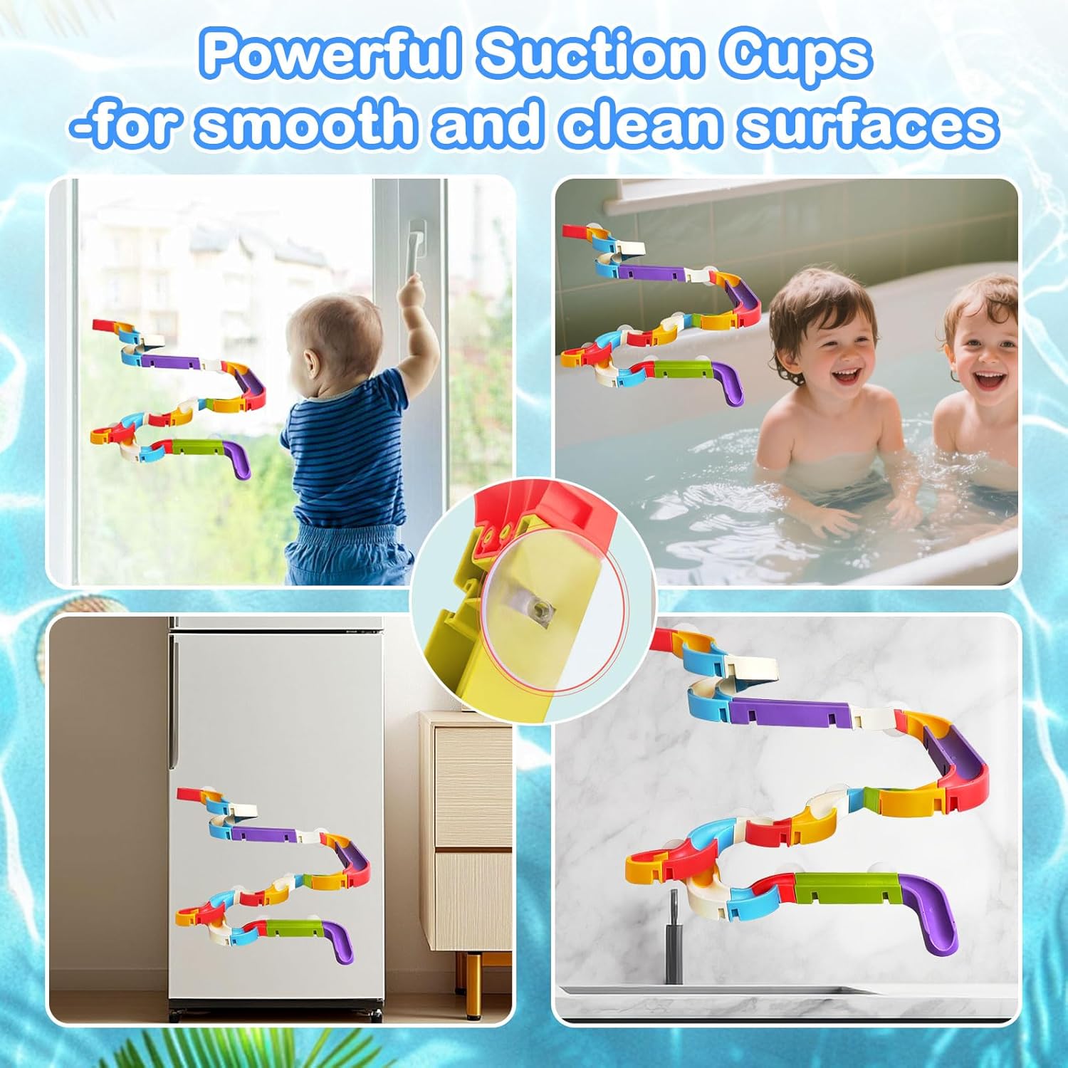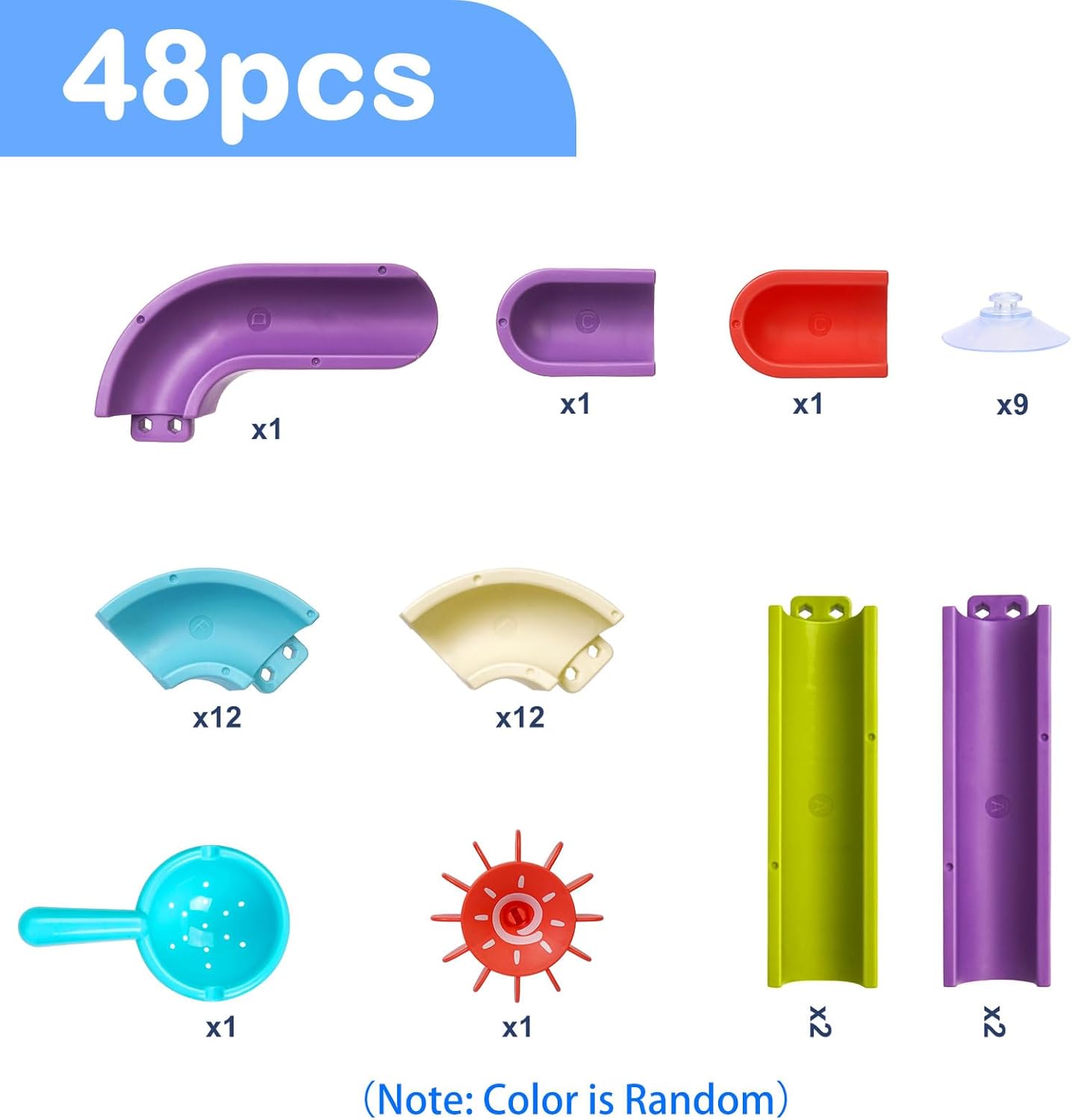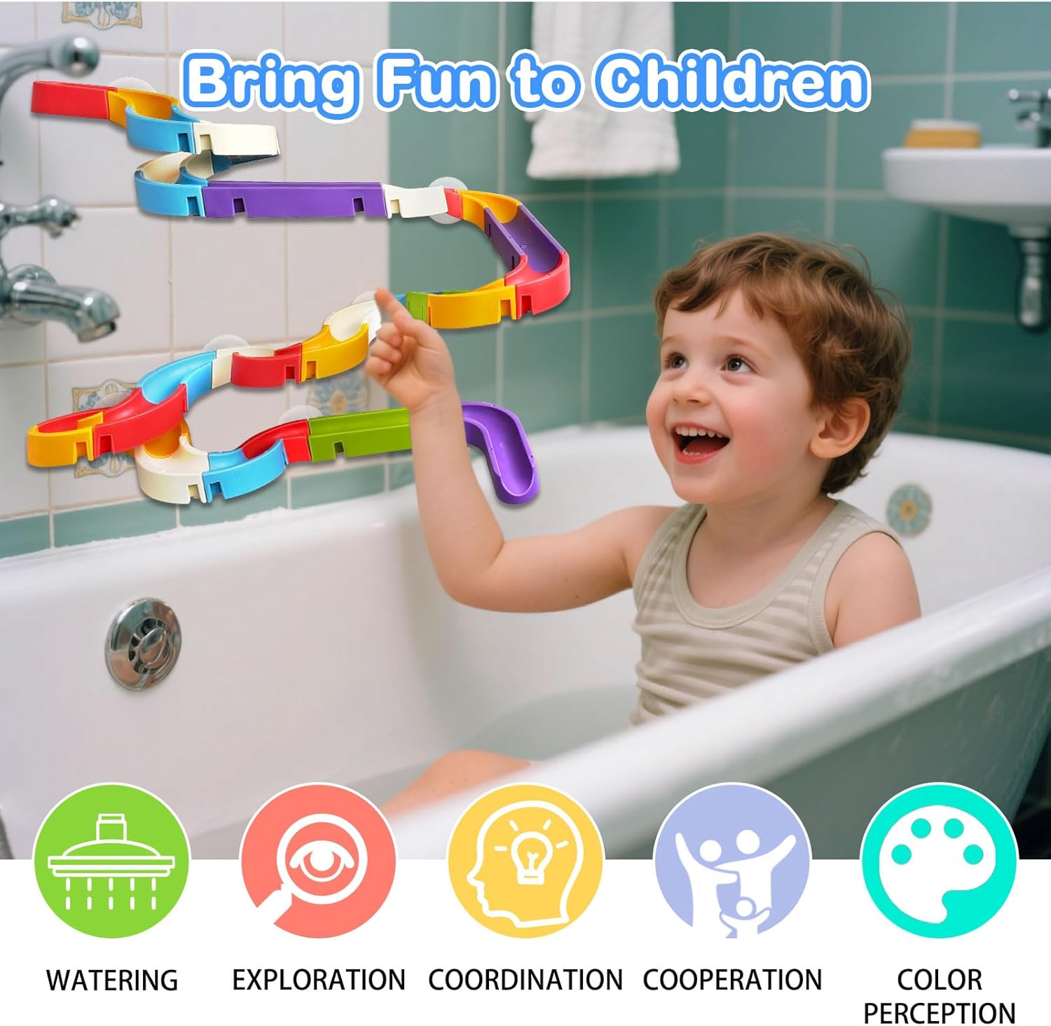 【Progetta te stesso】Ci sono 48 pezzi inclusi in questo set di giocattoli da bagno, inclusi pezzi colorati, ventose e giocattoli scorrevoli, ecc. Tuttavia, puoi progettare i binari come preferisci: con molte curve o diritti, su o giù, sinistra o destra. 【Materiali di alta qualità】: i nostri giocattoli da bagno sono realizzati in materiale ABS di alta qualità, i bordi lisci non danneggiano le mani dei bambini. I giocattoli da vasca orbitali sono più facili da pulire rispetto ai giocattoli da bagno a tubo. 【Giochi da bagno creativi per bambini dai 3 anni in su】 I giocattoli da bagno facili da montare possono essere realizzati in diverse forme e presentano più colpi di scena e una pista attiva che cambia direzione con ogni diapositiva per stimolare l'immaginazione e la creatività. Il design di un binario a muro aiuta i tuoi bambini a concentrarsi. Questo rende il momento del bagno più felice. 【Ambito di applicazione】: giocattoli da bagno sul retro di ogni binario è presente una forte ventosa, è adatta per vasche da bagno, piastrelle del bagno, finestre in vetro, lavagne, lavagne, porte in vetro, specchi, frigoriferi o altre superfici lisce. Nota: le superfici lisce e pulite hanno il miglior effetto di adesione, non utilizzarlo su superfici irregolari. 【Regalo ideale per i bambini】: il giocattolo da bagno è la scelta ideale per regali di compleanno o festivi come il Ringraziamento o Natale ecc., così il tuo bambino può divertirsi ovunque.