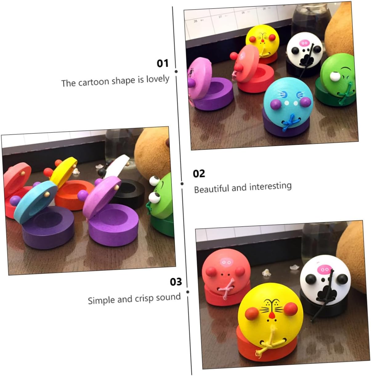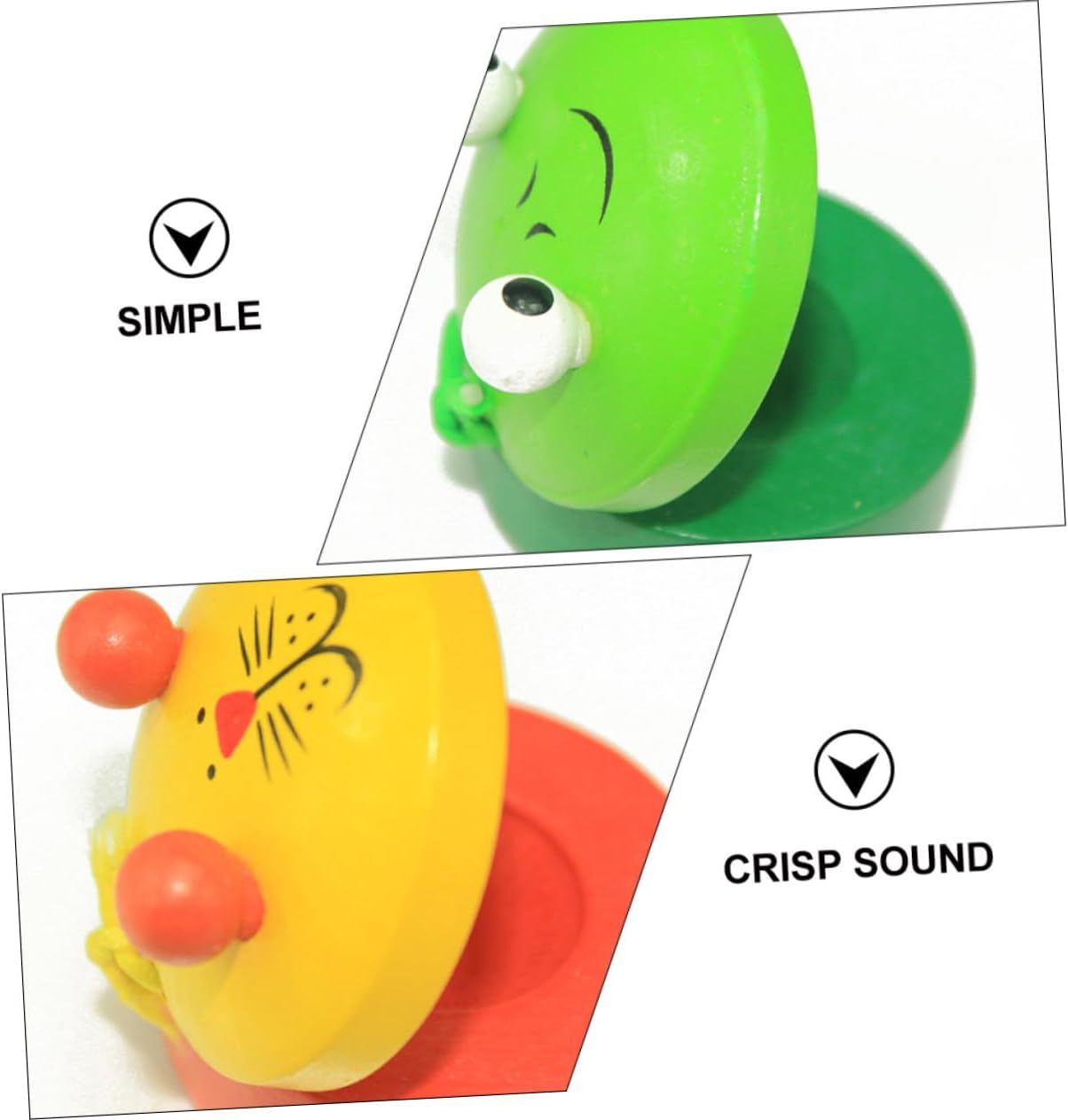 Cartone animato per bambini in età prescolare: la forma del cartone animato è carina, bella e interessante. Giocattolo di nacchere per giocattoli d'impatto: stimola lo sviluppo sensoriale del bambino mentre sviluppa il senso della musica. Giocattoli di nacchere per bambini piccoli Giocattoli di impatto per: colori vivaci promuovono lo sviluppo del cervello dei bambini, strumento musicale Educativo musicale: può allenare la sensibilità del bambino ai suoni, che lo guidano ad ascoltare il ritmo della musica e gli permettono di battere il ritmo durante l'ascolto. Giocattoli musicali per strumenti a percussione per bambini in età prescolare: i colori vivaci possono attirare l'attenzione dei bambini, giocattoli per nacchere