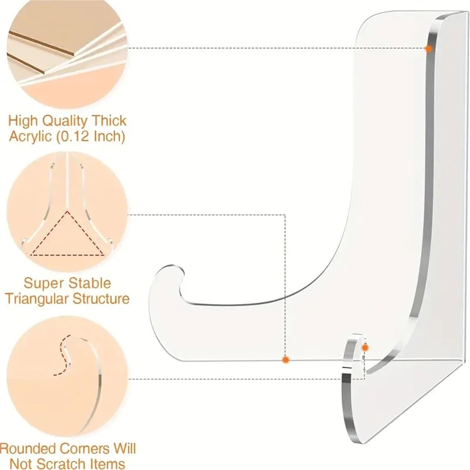 Mostra le tue collezioni con il nostro espositore in acrilico da 5 pezzi, progettato per esporre elegantemente oggetti come libri, riviste e piatti con stabilità e stili. In acrilico spesso, questi supporti presentano un design triangolare per migliorare la durata e la stabilità, assicurando che i tuoi oggetti siano esposti in modo sicuro. Ideale per rivenditori, espositori e utenti domestici, questi supporti multifunzionali soddisfano le esigenze di esposizione, ideali per mostrare oggetti da collezione o merce. Perfettamente adatti per vetrine, esposizioni e decorazioni per la casa, questi cavalletti trasparenti migliorano la visibilità e l'attrattiva dei tuoi oggetti in qualsiasi ambiente. Ogni supporto è tagliato con precisione con bordi lisci e angoli arrotondati, graffi sulla tua collezione mantenendo un aspetto professionale.