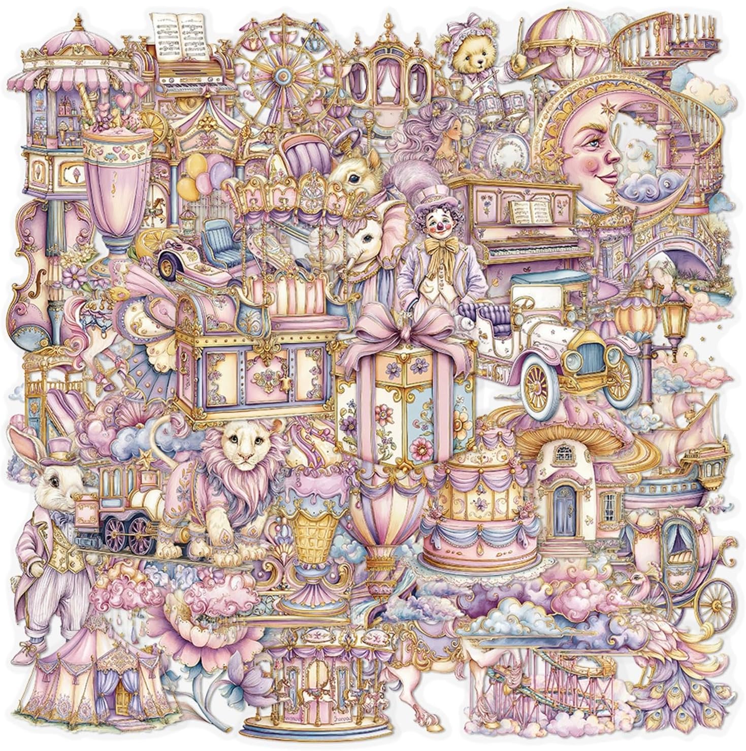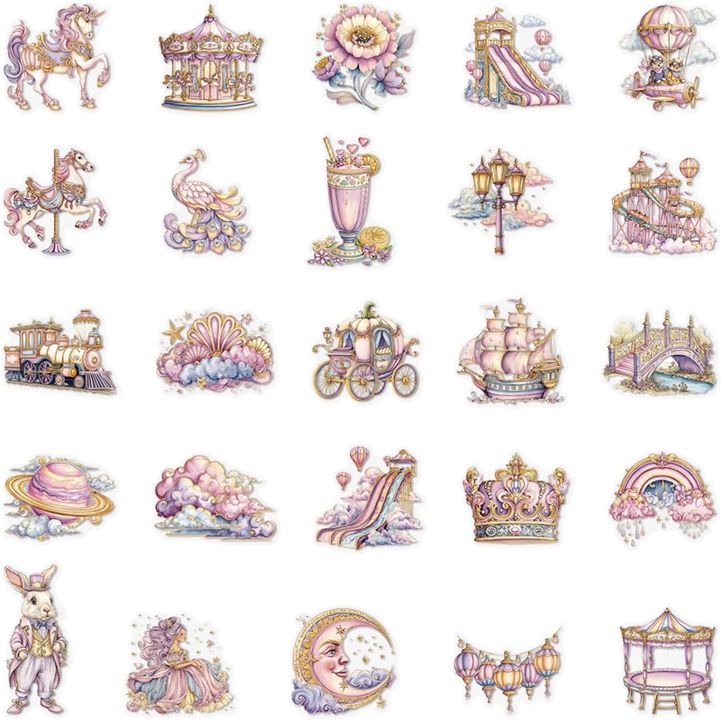 Confezione da 50 adesivi in vinile per parco divertimenti da sogno, carini cartoni animati, graffiti, decalcomanie impermeabili per laptop, valigie, bottiglia d'acqua per bambini e ragazze