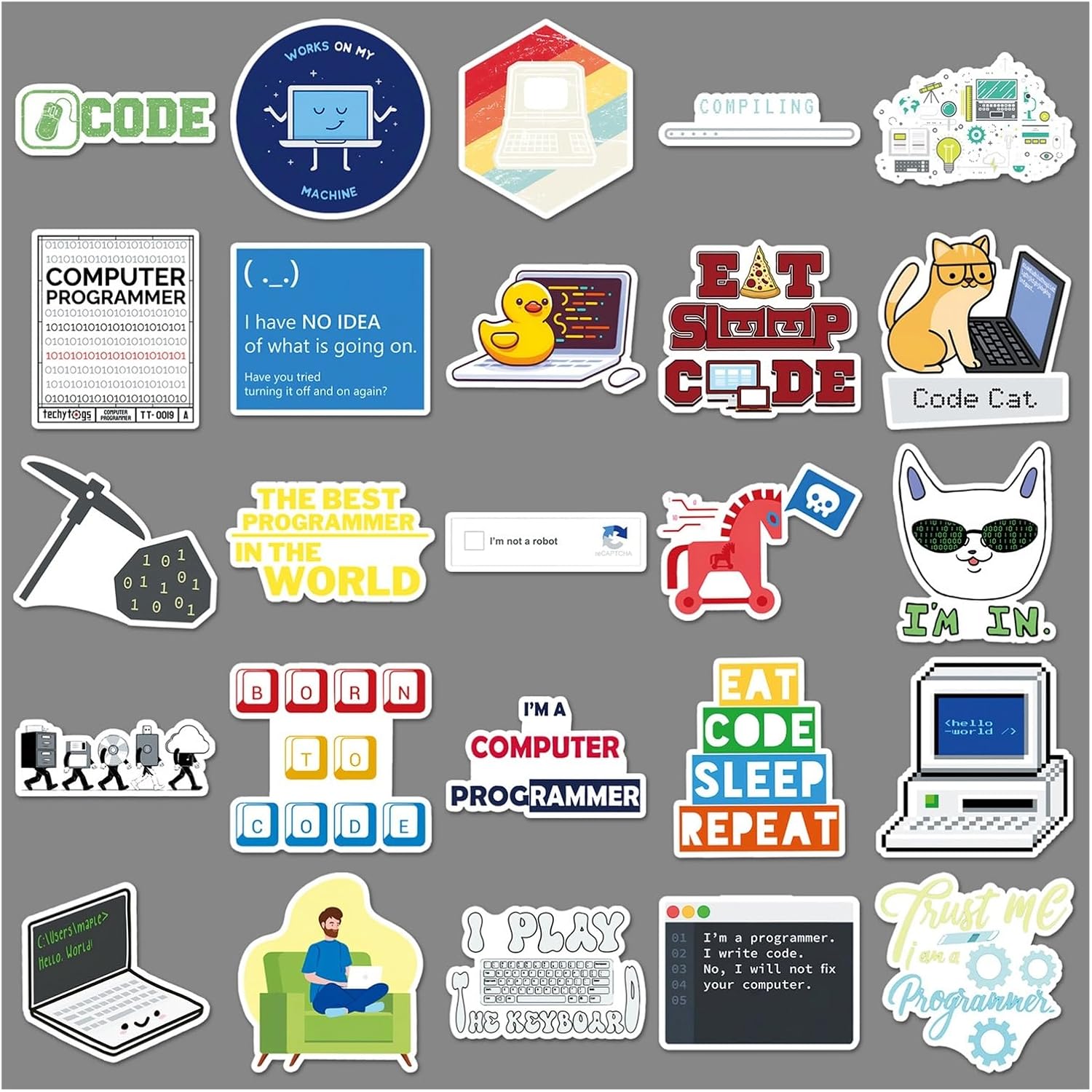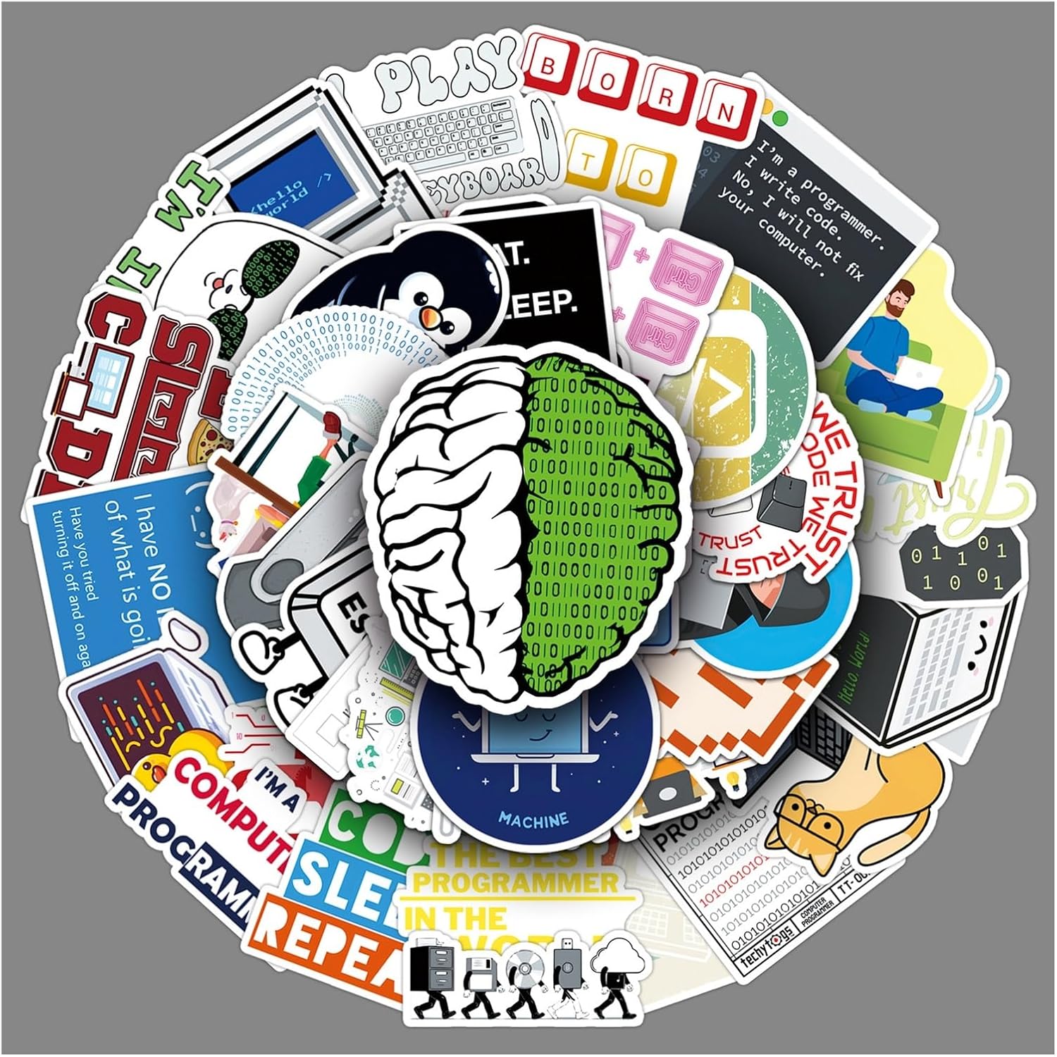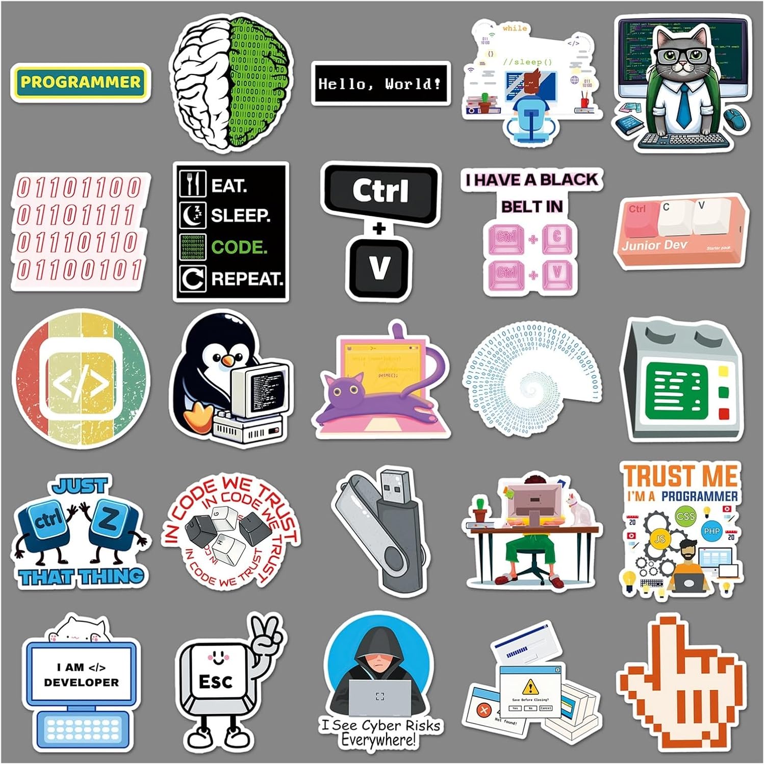 Confezione da 50 adesivi in vinile per programmazione e computer, decalcomanie a tema per laptop, bottiglia d'acqua, valigie, skateboard, diari, ideali per programmatori, codificatori e appassionati