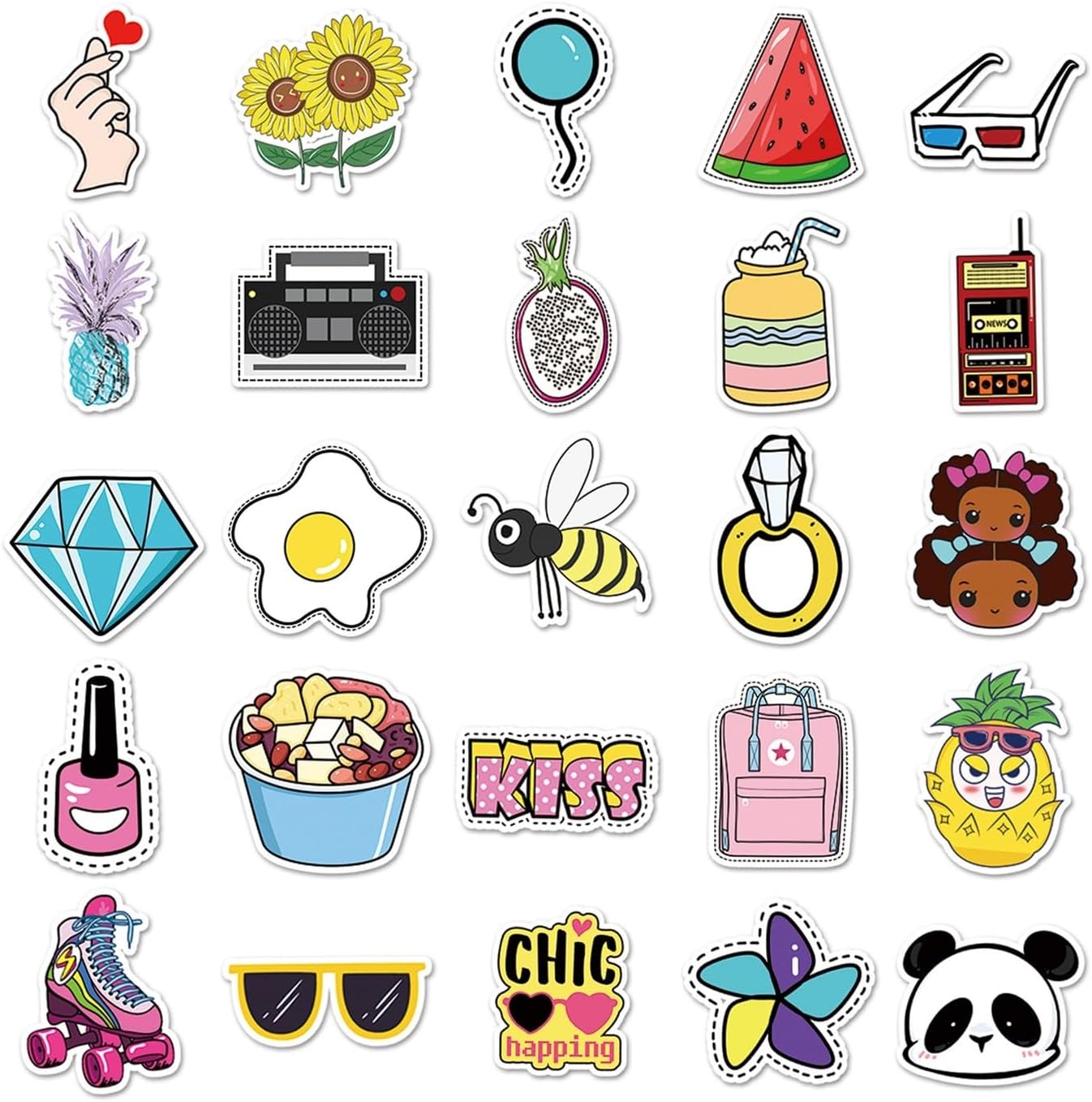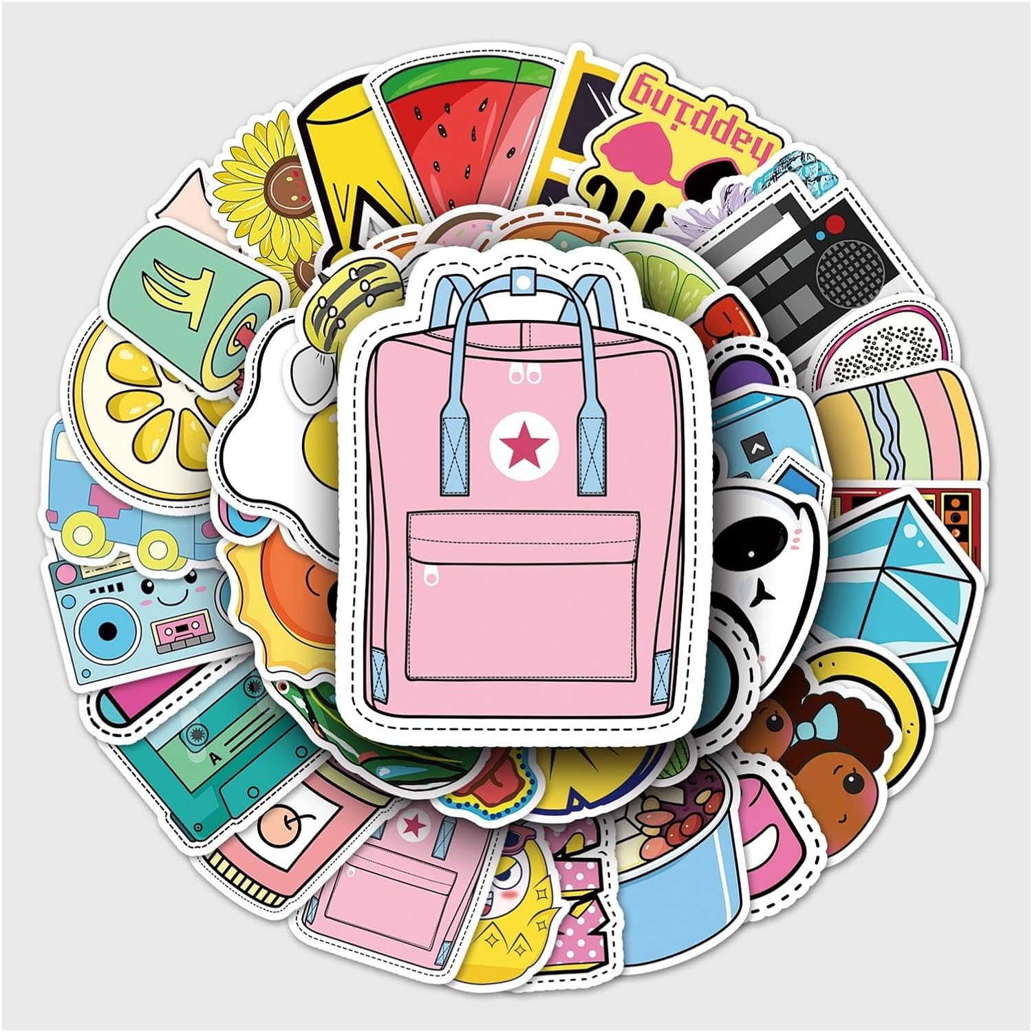 1. Vinile impermeabile di alta qualità Realizzati in materiale PVC impermeabile di alta qualità, questi adesivi sono durevoli, resistenti allo sbiadimento e facili da applicare. Aderiscono saldamente alle superfici pulite e possono essere rimossi facilmente e senza lasciare residui. 2. Design unico e alla moda Ogni set contiene una varietà di modelli non ripetibili, dai simpatici cartoni animati ai temi estetici, motivazionali e di viaggio, che ti consentono di esprimere la tua personalità e creatività. 3. Decorazione versatile Perfetta per decorare laptop, bottiglie d'acqua, valigie, skateboard, riviste, telefoni, chitarre e altri progetti fai-da-te. Porta divertimento e colore ai tuoi oggetti di tutti i giorni. 4. Facile da installare e riutilizzabile