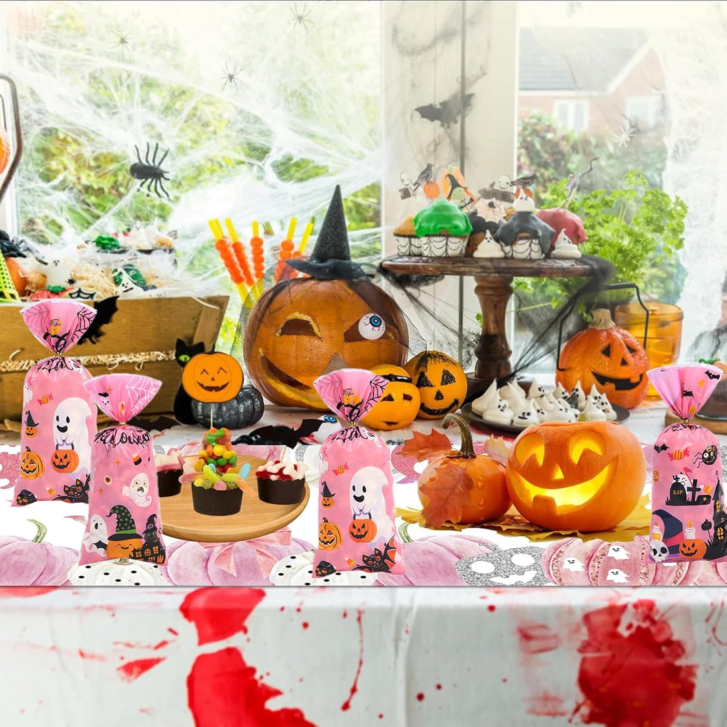 Materiali di alta qualità: le nostre borse Halloween sono realizzate con materiali plastici OPP, sicuri e atossici, durevoli e impermeabili, con torsione e sigillatura, possono essere utilizzati con fiducia e possono essere utilizzati per conservare la torta grassa in casa, caramello. Dimensioni: la dimensione della busta di Halloween è 12,5 x 27,5 cm, la lunghezza del giro è 12 cm, la dimensione è grande, perfetta per la confezione di Halloween con caramelle, cioccolatini, biscotti. Design di Halloween: i nostri sacchetti di caramello di Halloween hanno un design trasparente, stampato con vari motivi di elementi di Halloween, tra cui viola, zucche, alberia del diavolo e altri elementi, che possono essere utilizzati anche nel contenuto, nella creatività e nella vivacità degli occhi dei bambini. Esempi di utilizzo: nei sacchetti di cellophane di Halloween, perfetti per decorazioni per feste di Halloween e snack o torte. Contiene caramelle, biscotti, pane, cioccolato e altri piccoli oggetti, perfetti per qualificarsi per un festival di Halloween, un festival notturno speciale o un festival a tema horror. Puoi usarlo anche per preparare il caramello di Halloween e i dolcetti per dolci o scherzi. Contenuto della confezione: riceverai 50 sacchetti di caramelle di Halloween e 50 colpi di scena. (4 stili, 12-13 pezzi ciascuno.)