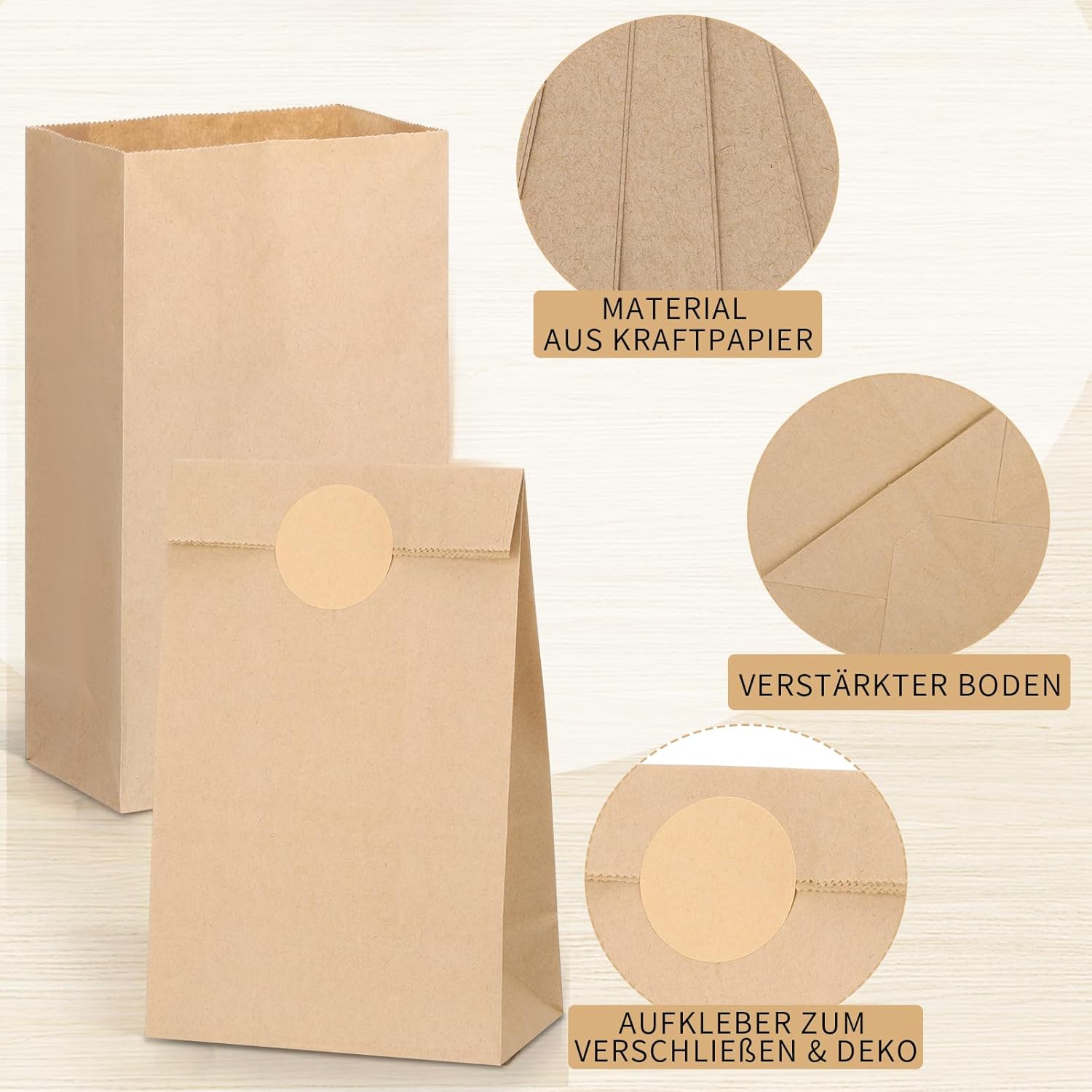 CONTENUTO DELLA CONSEGNA - 50 sacchetti di carta marrone. Dimensioni: 22 x 12 x 7 cm/8,66 x 4,72 x 2,76 pollici, con tanto spazio per caramelle, biscotti, popcorn, piccoli regali e piccole sorprese. SACCHETTI DI CARTA KRAFT - Il sacchetto di carta è realizzato in carta kraft certificata FSC, stabile e resistente agli strappi, inodore, sicuro e affidabile, può essere utilizzato per riempire gli alimenti. OPZIONI DI DESIGN INDIVIDUALI - La superficie del sacchetto di carta è vuota ed è ideale per progetti fai-da-te o di artigianato creativo. Puoi dipingere, scrivere, timbrare, ecc. ed essere creativo. VERSATILI - I piccoli sacchetti di carta sono perfetti come calendari dell'Avvento fai-da-te, sacchetti per caramelle per matrimoni, sacchetti per feste di compleanno per bambini, ecc. FORNITO CON ADESIVI - 3 fogli con 24 adesivi ciascuno per un totale di 72 adesivi rotondi vuoti. Diametro adesivo: 4 cm, può essere utilizzato per sigillare sacchetti di carta o come decorazione.