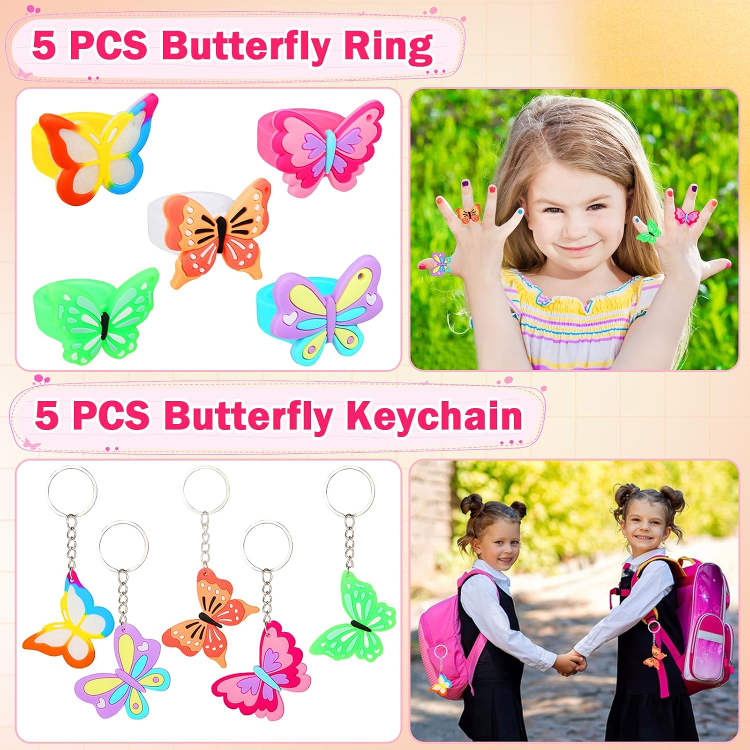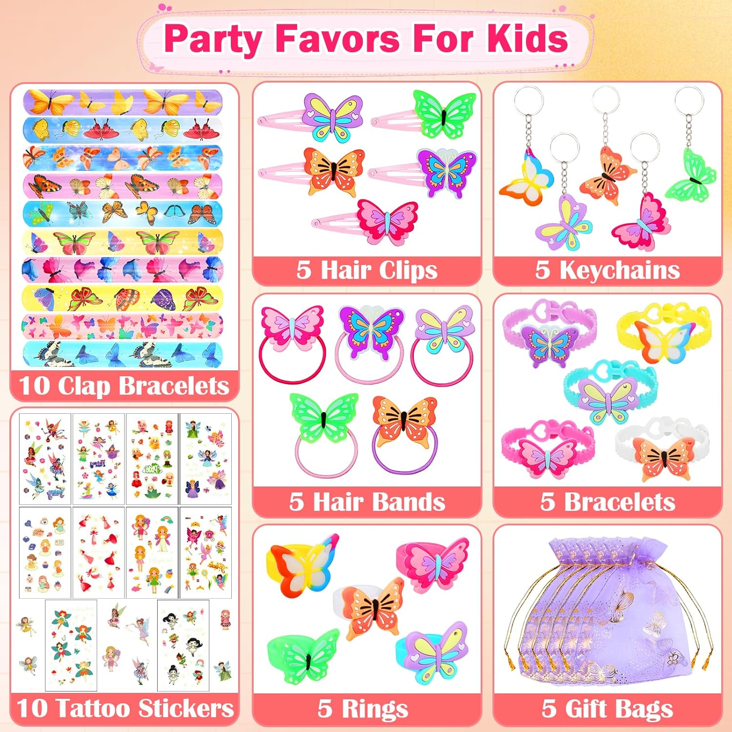 🦋 【Set da 50 sacchetti per feste a farfalla】 Il sacchetto per feste a farfalla per i compleanni dei bambini contiene 10 braccialetti a farfalla con chiusura a scatto, 10 tatuaggi a farfalla, 5 braccialetti a farfalla, 5 portachiavi a farfalla, 5 anelli a farfalla, 5 elastici per capelli a farfalla, 5 fermagli per capelli a farfalla, 5 sacchetti regalo a farfalla. I diversi numeri e stili offrono abbastanza divertimento per il tuo bambino alla festa con gli amici. (Suggerimenti: stile e colore sono casuali) 🦋【Design carino e flessibile】Il set di borse da festa a farfalla presenta graziosi motivi a farfalla e disegni dai colori vivaci. Dal design unico e accattivante, garantisce un divertimento senza fine per i bambini. Perfetto per feste di compleanno, feste a tema farfalle, feste in giardino per ragazze, feste per bambini con fate, feste principesse, feste in costume da fata, matrimoni e feste di benvenuto. 🦋 【Regali di compleanno perfetti per ragazze】 Il regalo di compleanno per bambini con farfalla è il regalo perfetto per ragazze di età compresa tra 3 e 12 anni. Accessori fata ideali per ragazze. Con graziosi portachiavi a farfalla, possono essere utilizzati come decorazioni per zaini, portagioielli e astucci, portando tanto divertimento ed eccitazione a qualsiasi festa per bambini. 🦋【Materiale sicuro di alta qualità】Tutte le borse per feste di compleanno con farfalle sono realizzate in materiale PVC di alta qualità, sono solide, durevoli, comode e riutilizzabili. I tatuaggi temporanei a farfalla sono facili da usare e rimuovere, sicuri per i bambini, possono essere rimossi con alcool o acqua tiepida. Gli elastici per capelli a farfalla sono morbidi ed elastici, non facili da aggrovigliare, impigliare o danneggiare i capelli. 🦋【Borse da festa multifunzionali per bambini】Dotata di 5 bellissime borse da festa, è più conveniente. Ideale per bomboniere per feste di compleanno per bambini, decorazioni per compleanno di ragazze, sacchetti regalo, eventi scolastici, riempitivi di pinata, premi in classe, cestini pasquali, carnevali, matrimoni, attività familiari, Halloween, calendari dell'Avvento e regali di Natale.