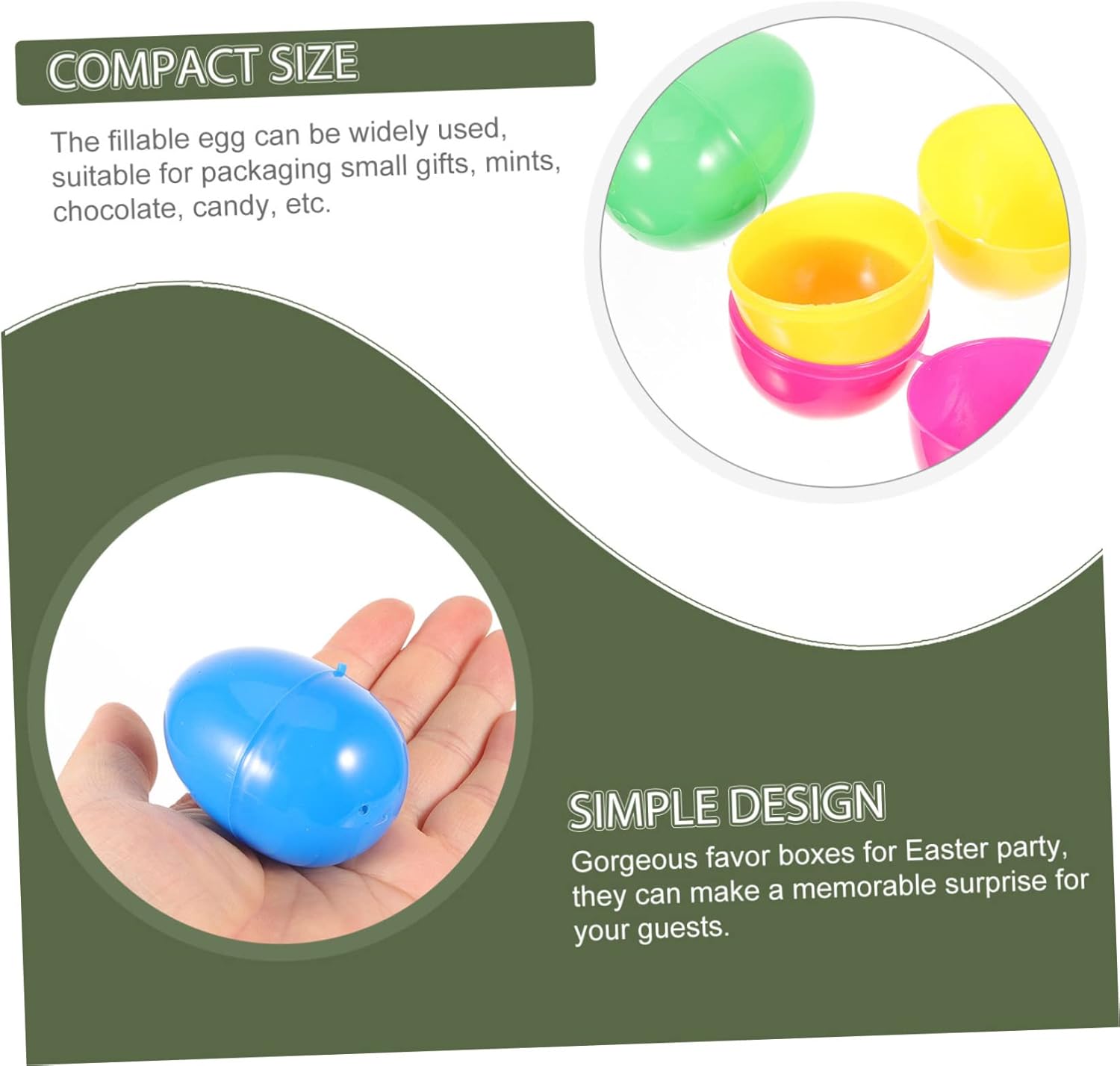 Uova di Pasqua - e queste uova di Pasqua ricaricabili possono anche essere usate come scatole di caramelle o piccole scatole da regalo, ornamenti a forma di uovo di Pasqua Scatole per uova di Pasqua - queste uova di Pasqua di plastica possono essere usate per decorare la tua tavola o il tuo giardino per aggiungere atmosfera alla festa di Pasqua, decorazioni per feste di Pasqua Decorazioni di Pasqua - perfette per qualsiasi tavola di Pasqua, caccia alle uova di Pasqua o per chi ama le uova da decorare con tutti Opportunità di divertimento, decorazioni pasquali Uova di Pasqua di plastica riempibili - ci sono abbastanza uova di Pasqua di plastica che possono soddisfare le tue diverse esigenze, uova di Pasqua decorative Uova di Pasqua riempibili - Realizzate in plastica di alta qualità, queste uova di Pasqua non sono facili da rompere o deformare, scatole di caramelle per uova di Pasqua