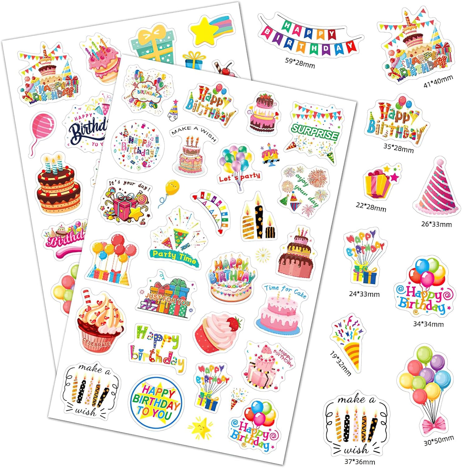 Set di adesivi per compleanno: goditi tutti i divertenti temi di compleanno in miniatura con i nostri delicati gioielli artigianali in tutte le più belle tonalità pastello. REGALI PERFETTI: I nostri graziosi album di figurine sono un'ottima scelta come regalo di compleanno per bambini, adolescenti e ragazze. Può anche essere regalato a familiari o amici per adulti. È così divertente mettere questi bellissimi adesivi su buste, cartoline e sacchetti di caramelle! Decorazioni di compleanno: questi adesivi sono facili da rimuovere dalla carta di supporto e non lasciano segni dopo l'uso. Adatto a tutte le superfici piane e lisce. Puoi decorare libri, manuali, tazze, computer, cellulari, specchi, finestre e altro. Ampiamente usato: gli adesivi di compleanno possono essere aggiunti su molte superfici, come laptop, telefoni cellulari, libri di classe, diari, scrapbooking, tavoli, automobili, motociclette, biciclette, porte di frigoriferi, mobili, ecc. per decorare. Cosa ottieni: 6 grandi fogli di adesivi lucidi (dimensioni: 23x15 cm) con adesivi di compleanno in diversi design. Usa questi attraenti adesivi per decorare gli oggetti di tuo figlio! Oppure puoi decorare biglietti d'invito, libri fotografici, regali e molto altro ancora.