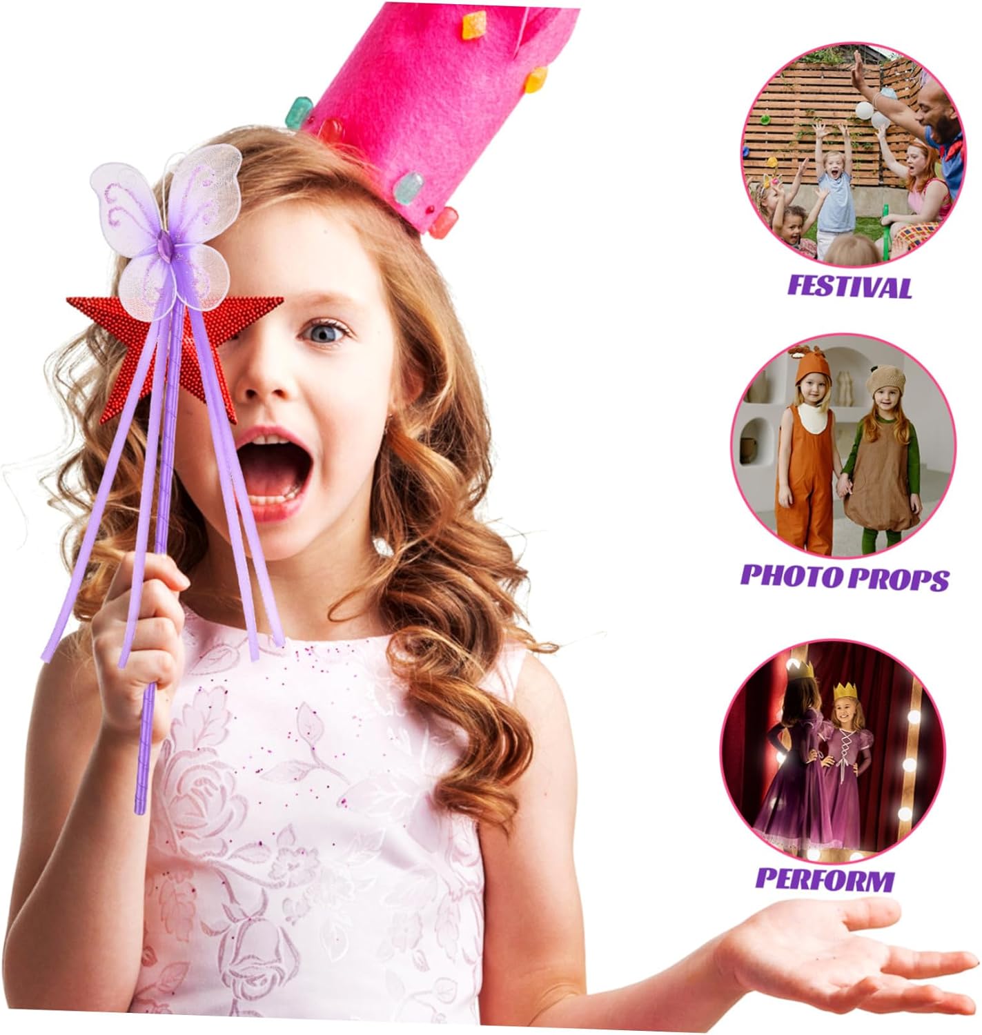Bacchetta magica: ben fatta, bella e funzionale. È stato progettato per creare un'atmosfera speciale che piacerà ai tuoi bambini. Bacchetta magica per ragazze: la fata è pensata per contribuire a creare un'atmosfera calda in cui divertirsi. Bacchette magiche per spettacoli teatrali. Giocattoli bacchetta magica per spettacoli teatrali: perfetti come regalo di compleanno per ragazze. Sarà felice con questa bacchetta magica per bambini da favola. Bacchette fatate per feste: questa bacchetta magica è molto adatta per feste di Halloween o altre fate, fate o elfi del festival. Bacchette per costumi per bambini: bacchetta magica: la bacchetta magica creativa si abbina bene ai vestiti di tuo figlio e rende il bambino più bello, bacchetta magica per