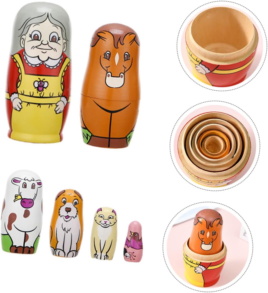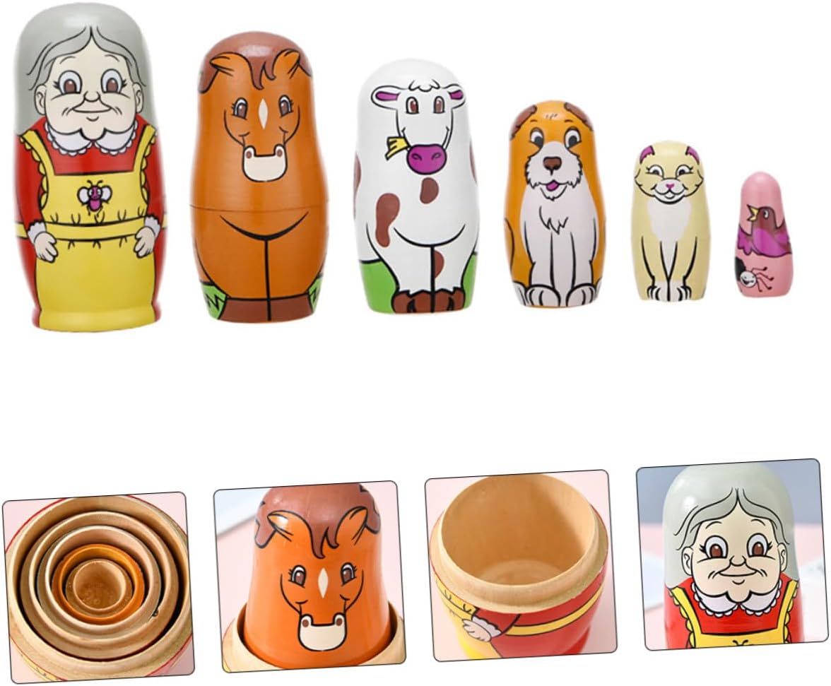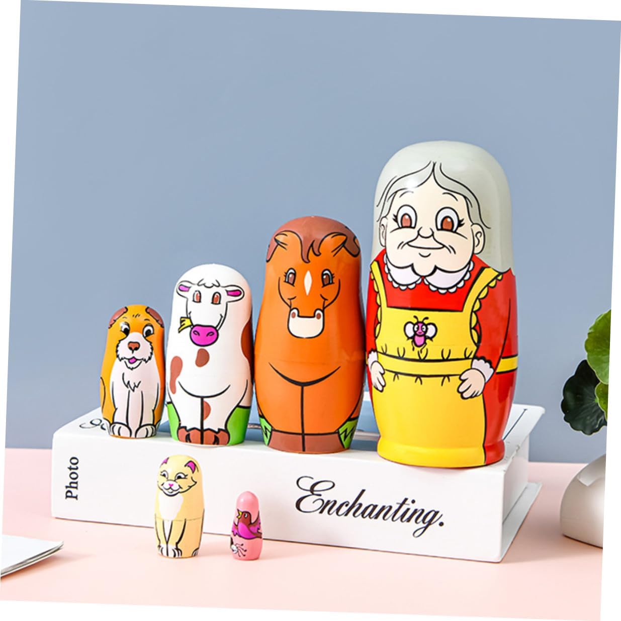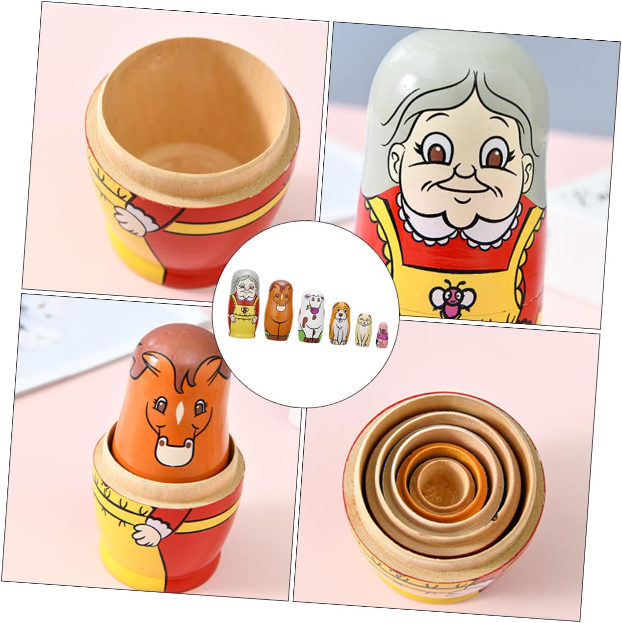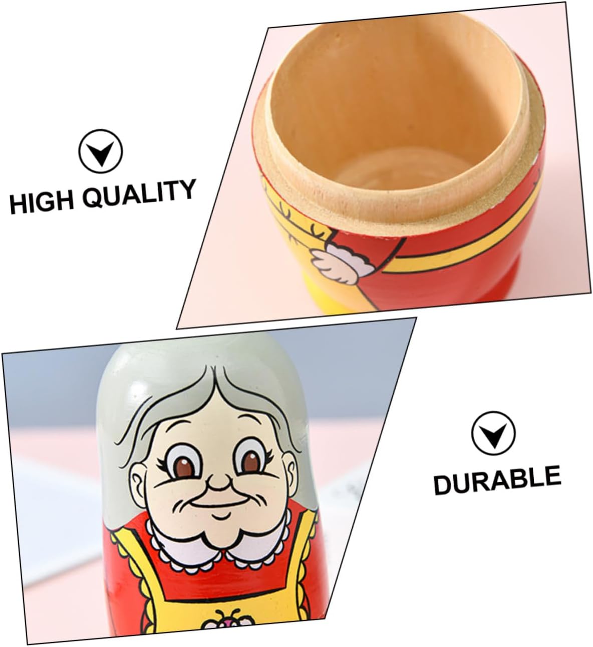 Matrioska di legno - 6 bambole matrioska di diverse dimensioni, modello adorabile, una fantastica decorazione per la tua casa, Matrioska con motivo della nonna Matrioska di legno - Matrioska con motivo cartoon, adorabile e bellissima, in 6 diverse dimensioni, divertente con cui giocare, decorazioni per bambole in legno Bambole matrioska - realizzate in materiale di legno, solido e durevole, non facile da spostare, si deforma e si rompe, giocattolo impilabile artigianale in legno - materiale selezionato, non si deforma né si rompe facilmente, bambola da incastrare bambola russa impilabile - colore dipinto che è attraente per te e sta benissimo anche ai tuoi amici, matrioska- per
