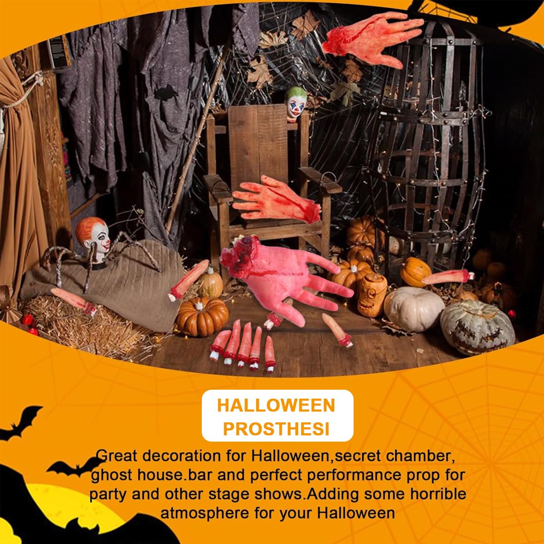 Questo set comprende: dita + palmi a quattro dita. Queste parti realistiche del corpo in lattice garantiranno momenti horror indimenticabili ai tuoi ospiti e sono perfette per le feste di Halloween e le scene di case stregate. Realizzati in lattice di alta qualità con dettagli realistici, questi organi intrisi di sangue creano un centrotavola davvero inquietante, perfetto anche per altre occasioni a tema. MULTIUSO: Adatto non solo per Halloween, ma anche per Natale, Pasqua, Carnevale, feste in maschera e varie altre occasioni. Usa i modelli con palmo e dita per decorare le scene della tua casa stregata o cospargine un po' sopra per un effetto inquietante. Adatto per uso interno ed esterno. Immergi te stesso e i tuoi cari nello spirito di Halloween con questi modelli di corpi che offrono sia sorpresa che terrore.