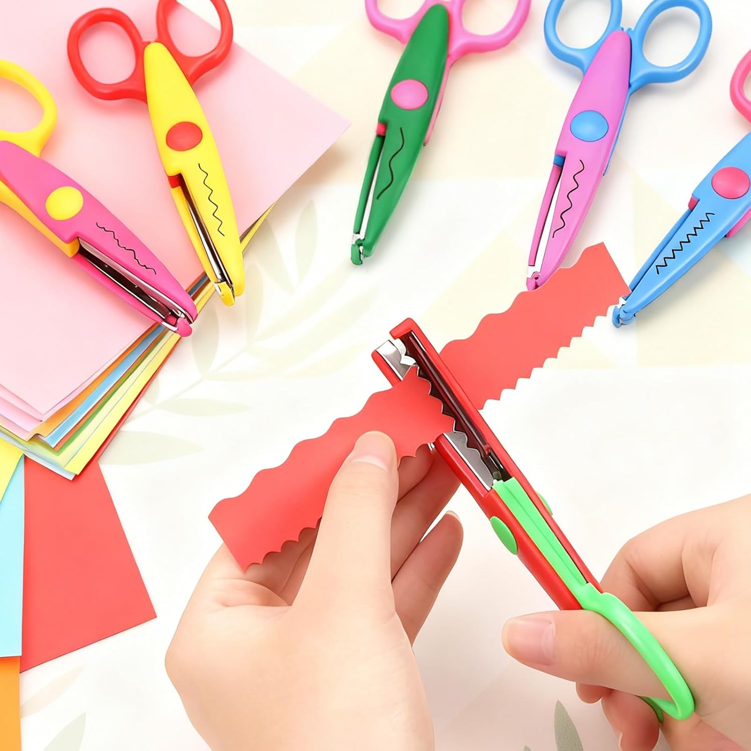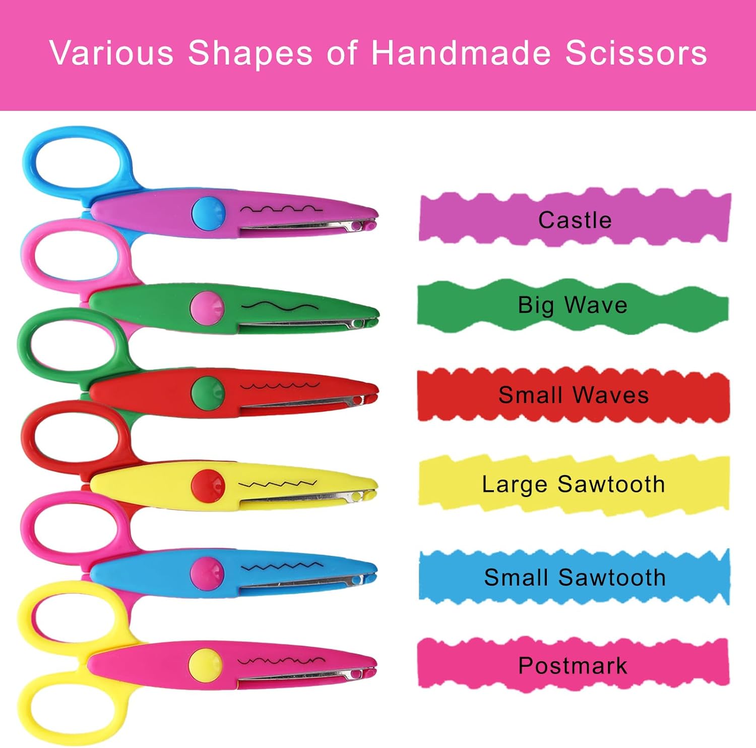 Forme varie: il nostro set di forbici contiene sei forbici colorate a zigzag, ciascuna progettata per modelli diversi per incoraggiare la creatività del tuo bambino e offrire un'emozionante esperienza di creazione. Sicuro da usare: i manici delle forbici sono progettati ergonomicamente e si adattano perfettamente alle mani dei bambini piccoli, facilitandone la presa e consentendo un taglio sicuro. Incoraggia la creatività: questo set di forbici artigianali stimola l'immaginazione e aiuta i bambini a creare una varietà di disegni e progetti creativi, ad esempio quando lavorano con la carta artigianale, scrapbooking o creazione di biglietti. Materiali di alta qualità: realizzate in resistente acciaio inossidabile con una copertura in plastica sicura, queste forbici sono durevoli e sicure da usare, offrendo ai genitori tranquillità mentre i loro figli lavorano in modo creativo. Regalo perfetto: sia come materiale scolastico di prima elementare, per l'istruzione tecnica o semplicemente come giocattolo creativo, questo set è il regalo ideale per i bambini che amano l'artigianato e vogliono sviluppare le proprie capacità artistiche.