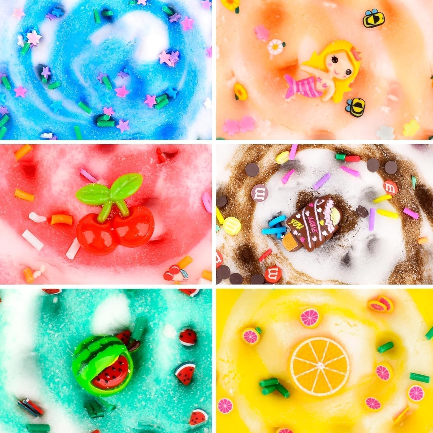 Set di slime di grande valore: 6 colori di slime inclusi, blu, marrone, verde, giallo, arancione e rosso, con gelato, limone, ciliegia, anguria, ciondolo sirena Regalo di soddisfazione: slime per regali di compleanno, bomboniere, premi scolastici o di carnevale, San Valentino, Pasqua, Halloween, Natale, ottimo regalo per sacchetti regalo Morbido e antiaderente: slime morbido, non appiccicoso, profumato, elastico, con simpatici pezzetti, educativo e non si strappa quando allungato, carino roba Goodie Bag Stuffers Slime fai da te: il kit per la creazione di slime può coltivare le abilità pratiche e l'immaginazione dei bambini, i bambini possono creare diverse forme di slime di Poopsie, divertimento senza fine Suggerimenti: non utilizzarlo sul tappeto (non può mangiare) quando non viene utilizzato, si prega di rimetterlo nel contenitore e si può essere certi che l'acquisto, se ci sono problemi, si prega di contattarci