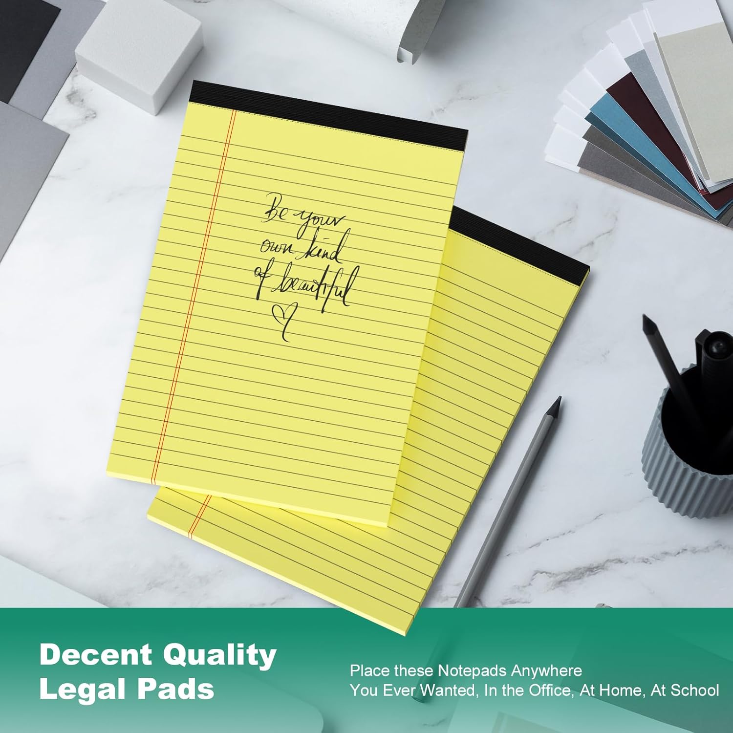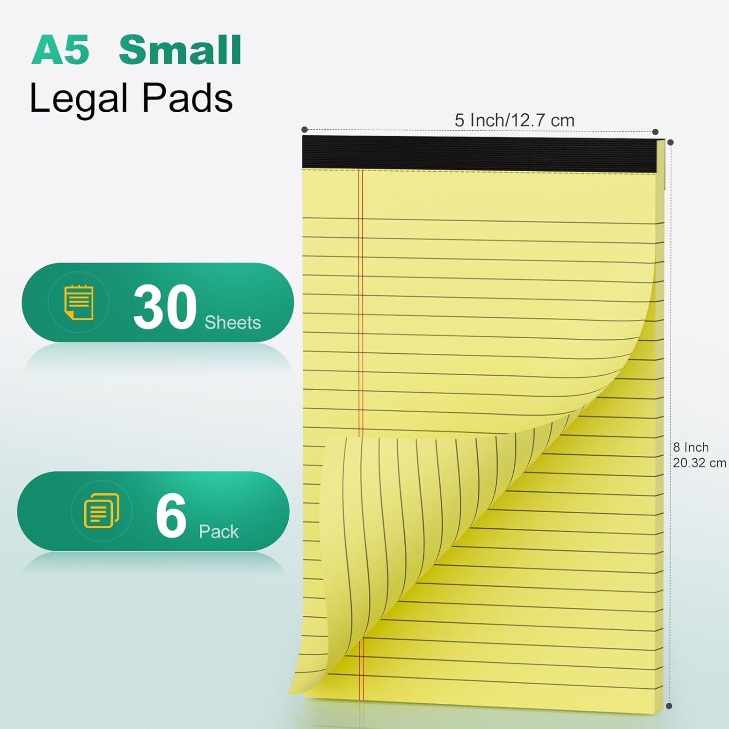 Carta premium: i taccuini gialli A5 sono realizzati con carta di alta qualità che impedisce all'inchiostro di filtrare tra le pagine, facile da scrivere o disegnare, le penne neutre e a sfera scrivono in modo fluido e senza sforzo sul taccuino. I blocchi legali A5 sono dotati di un retro in cartone per un ulteriore supporto quando si scrive o si prendono appunti, il blocco note da 5 x 8 pollici è perfetto per scrivere in movimento. Blocco note perforati: questi blocchi note A5 a righe gialle presentano una perforazione chiara nella parte superiore, che li rende molto facili da rimuovere dal blocco note se necessario, senza strappi irregolari. Per poter conservare facilmente gli appunti che desideri e separare quelli che non vuoi, sia per lavoro, scuola o uso personale, questi piccoli taccuini ti semplificheranno la vita. Dimensioni e quantità: i mini quaderni A5 sono compatti ed efficienti, i quaderni legali a righe con interlinea di 7 mm sono facili da scrivere su ogni foglio, si adattano a zaini e borse, facili da trasportare. Confezione da 6 blocchi legali gialli da 30 fogli, per un totale di 180 fogli per soddisfare l'uso quotidiano e la sostituzione, senza preoccuparsi di rimanere senza carta. Questi quaderni A5 sono perfetti per scrivere appunti, lettere, pensieri ed elenchi. Scrittura e lettura più facili: questo piccolo blocco note A5 è ideale per elenchi, appunti scolastici e di lavoro. La cancelleria gialla può essere meno stancante per i tuoi occhi. È comodo da usare e non abbagliante. Questi taccuini gialli sono ottimi strumenti per studenti, anziani, acquirenti e dirigenti per annotare una nota, aiutando a registrare pensieri senza stress e momenti speciali, non devi preoccuparti dell'ispirazione dimenticata. Ampia applicazione: i quaderni A5 sono pagine a righe, ideali per affari, conferenze, riunioni, ufficio e viaggi. Le loro dimensioni ridotte ne consentono un facile trasporto e utilizzo. Le ricariche gialle per blocchi legali possono essere utilizzate per diversi tipi di attività come lavoro, studio, raccolta dati, liste della spesa e dei lavori domestici e altro ancora. Si adatterà perfettamente a persone diverse con diverse professioni, attività e lavori per gestire il lavoro quotidiano. Nota: questi cuscinetti non sono appiccicosi.