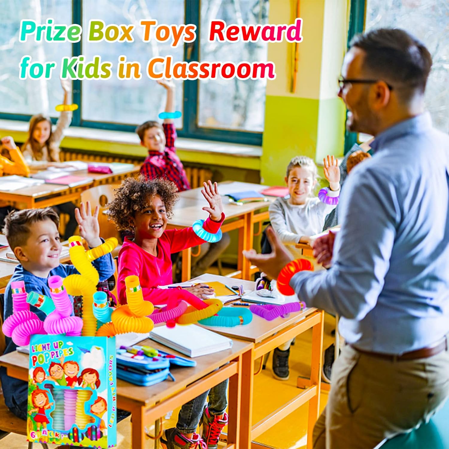 Pop Tubes Luminous Fidget Nuovi giocattoli: il nuovo giocattolo aggiornato per bambini del 2023 sta arrivando! Combinando i tradizionali tubi pop e le luci LED multicolori, i grandi bastoncini luminosi non sono più esclusivi giocattoli sensoriali/educativi per bambini, che ora possono illuminare e decorare la tua festa. Mikulala La confezione di giocattoli pop fidget a LED viene fornita con tubi popper a 6 colori, una confezione opzionale da 6/12/24 e una scatola blu, un regalo ideale per bambini, amici, famiglie. Giocattolo per abilità motorie sensoriali: tubi, giocattoli irrequieti fai-da-te che possono esplodere, allungarsi, ruotare, connettersi, illuminarsi! Tanti giochi con tubo pop antistress a forma di lettera/numero/cintura/corona/manette/braccialetto. Tubi LED per dita attive che forniscono stimolazione tattile, capacità motorie e feedback audiovisivo. Il bastoncino luminoso è un giocattolo sensoriale che consente ai bambini di esplorare e sviluppare destrezza e creatività. Buon strumento educativo per autismo/problemi sensoriali/deficit visivi. Illumina la tua festa: i tubi popper Mikulala per bambini, i giocattoli da festa per ragazze e ragazzi hanno 3 modalità di illuminazione, premi il pulsante On/Off per cambiare la modalità lampeggiante. Giocando con questi giocattoli sensoriali a tubo lampeggiante ed essendo al centro dell'attenzione alla festa, tuo figlio avrà un aspetto diverso e attirerà facilmente l'attenzione tra la folla. Gli accessori per feste che si illuminano al buio creeranno un'atmosfera allegra per una serata divertente. Eccellente qualità di sicurezza: pipe pop colorate illuminanti per feste realizzate in plastica di buona qualità senza BPA e senza piombo, soddisfa i più elevati standard di sicurezza e qualità ed è in grado di resistere a molti allungamenti, torsioni e svolte grazie a materiali durevoli, spessi e resistenti. Confezione di tubi sensoriali per garantire la sicurezza dei bambini e accompagnarli a trascorrere momenti piacevoli e indimenticabili. Regalo ideale per bambini e adolescenti: stai ancora lottando con cosa regalare per Pasqua, Natale, compleanno? I nostri giocattoli da dito con tubo elastico a LED sarebbero una scelta eccellente. Diffondi gioia e condividi la noia con i tuoi cari e i tuoi amici con questo kit di giocattoli sensoriali irrequieti, rendi la giornata di qualcuno con giocattoli antistress! Popper a tubo lampeggiante sfuso, perfetto per bomboniere/sacchetto regalo/regalo di ritorno/natale/capodanno/scatola premio/ricompensa in classe.